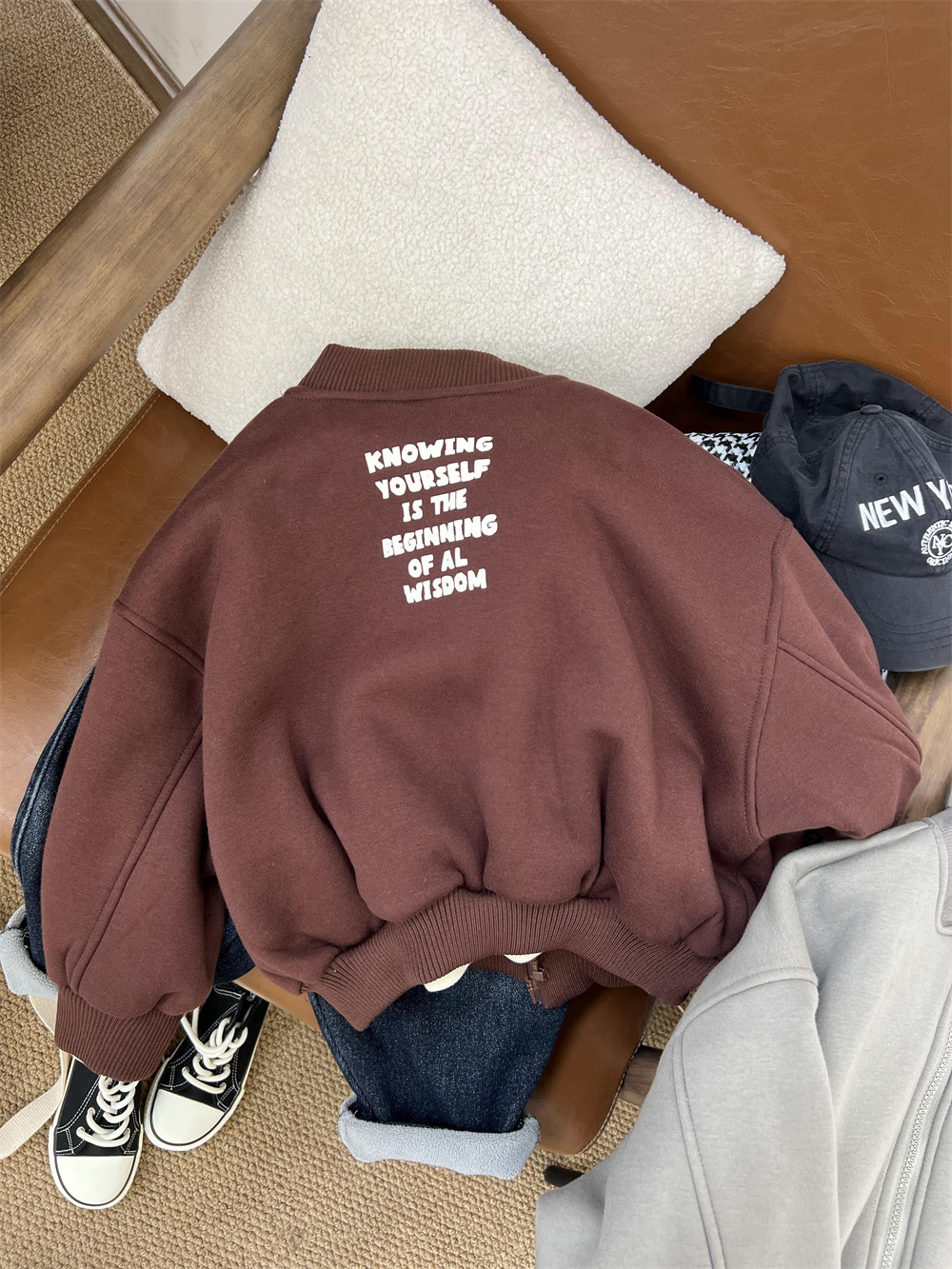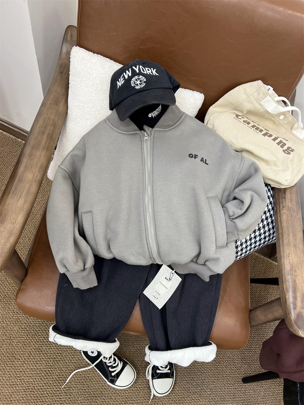 한국 아동 의류 겨울 소년과 소녀 기모 야구 세트 코트 미드 아이 두꺼운 편지 지퍼 셔츠 스웨터 재킷