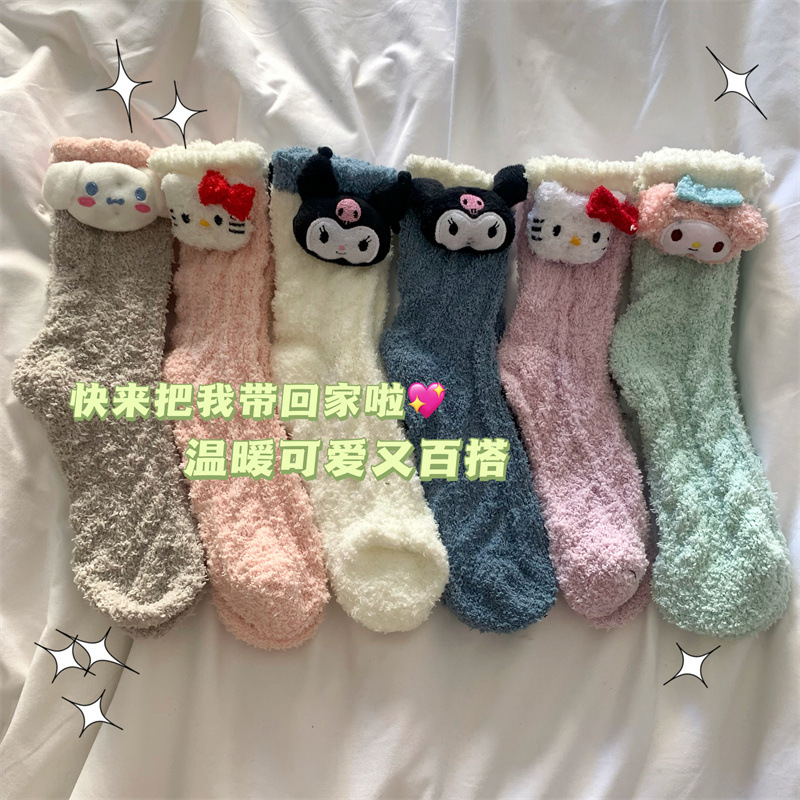 산리오 산호 양털 양말 화이트 로리타 만화 kt 고양이 수면 양말 가을과 겨울 유구이 개 홈 따뜻한 양말스토어 가기