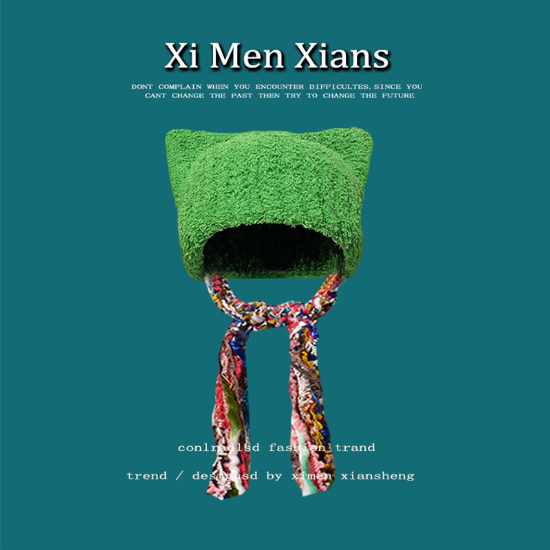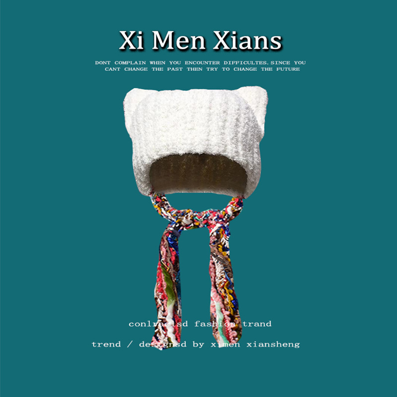 한국 스타일 귀여운 고양이 귀 니트 모자 여자의 다채로운 술 브레이드 울 모자 귀 보호 따뜻한 Baotou 차가운 모자 유행