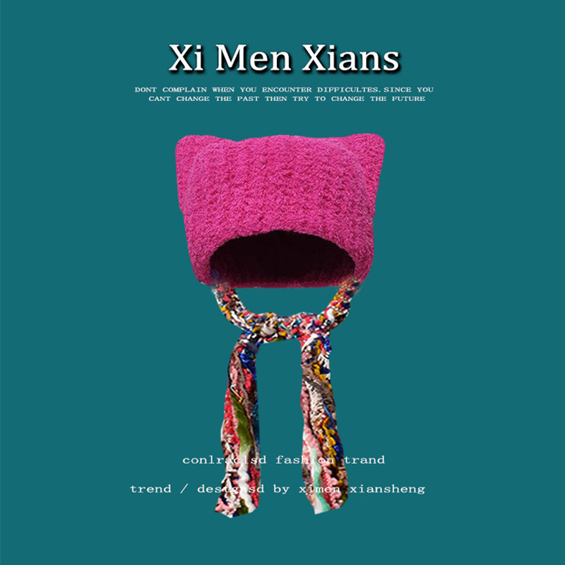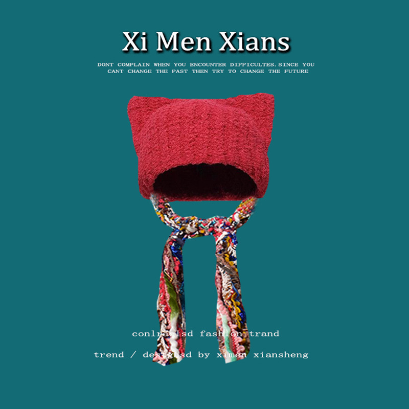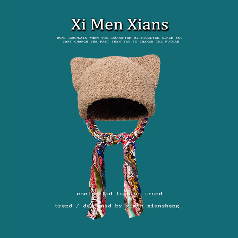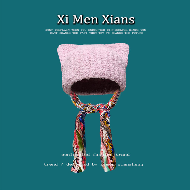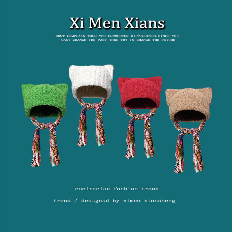 한국 스타일 귀여운 고양이 귀 니트 모자 여자의 다채로운 술 브레이드 울 모자 귀 보호 따뜻한 Baotou 차가운 모자 유행스토어 가기