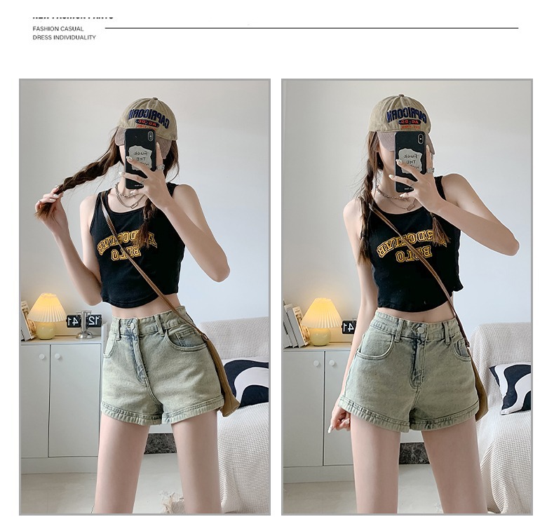 아메리칸 스타일 하이 스트리트 데님 반바지 여자의 봄과 가을 디자인 감각 틈새 하이 웨이스트 슬리밍 스파이스 소녀 올드 빈티지 A 형 핫 팬츠스토어 가기