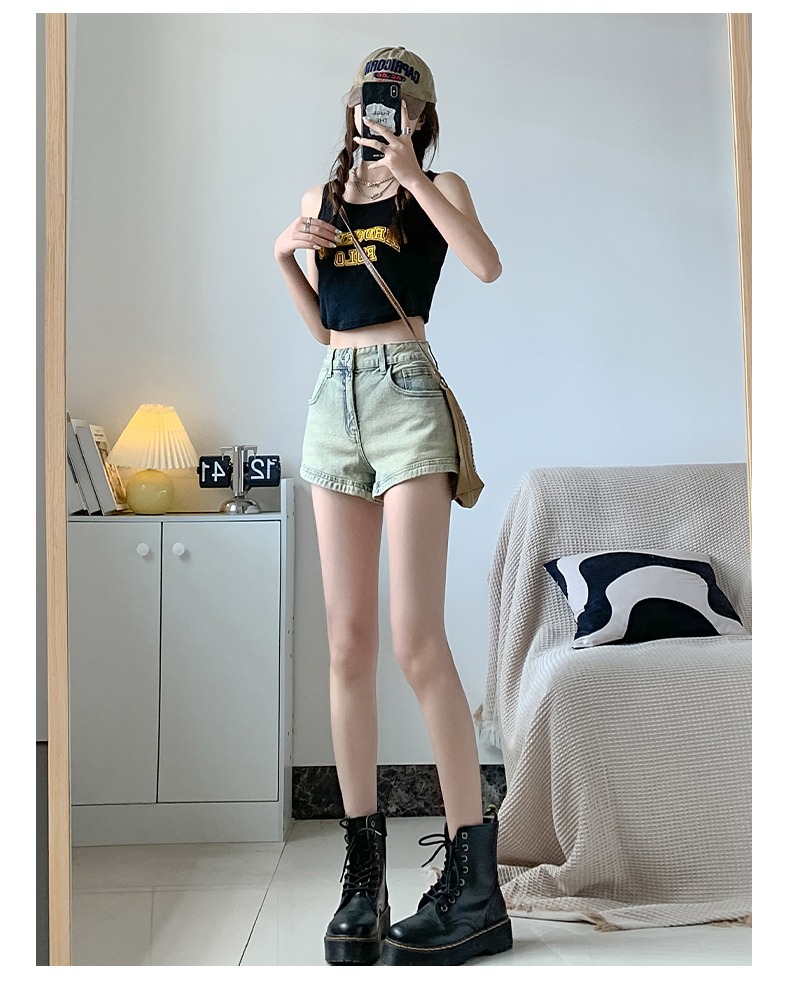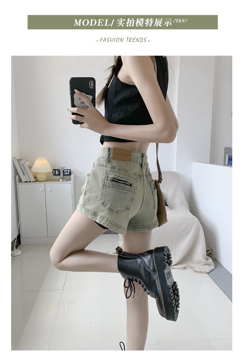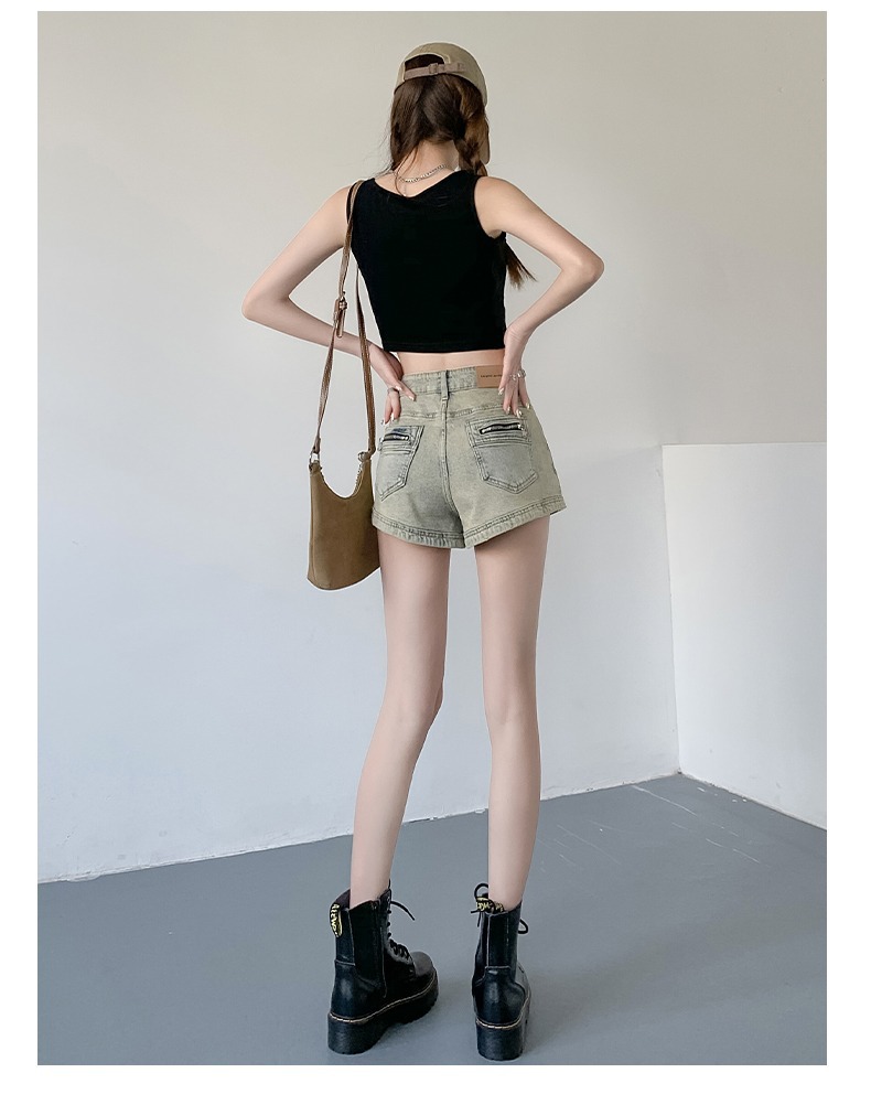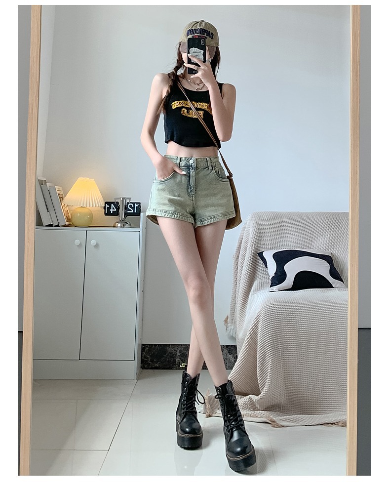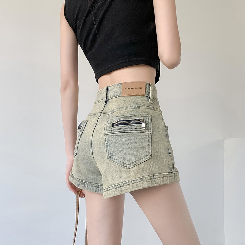 아메리칸 스타일 하이 스트리트 데님 반바지 여자의 봄과 가을 디자인 감각 틈새 하이 웨이스트 슬리밍 스파이스 소녀 올드 빈티지 A 형 핫 팬츠