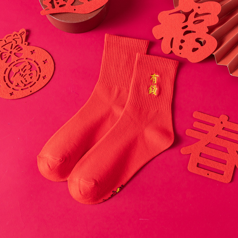 빨간 양말 웨딩 커플의 수 놓은 중간 길이 양말 웨딩 큰 빨강 용의 해를위한 중간 길이 양말스토어 가기