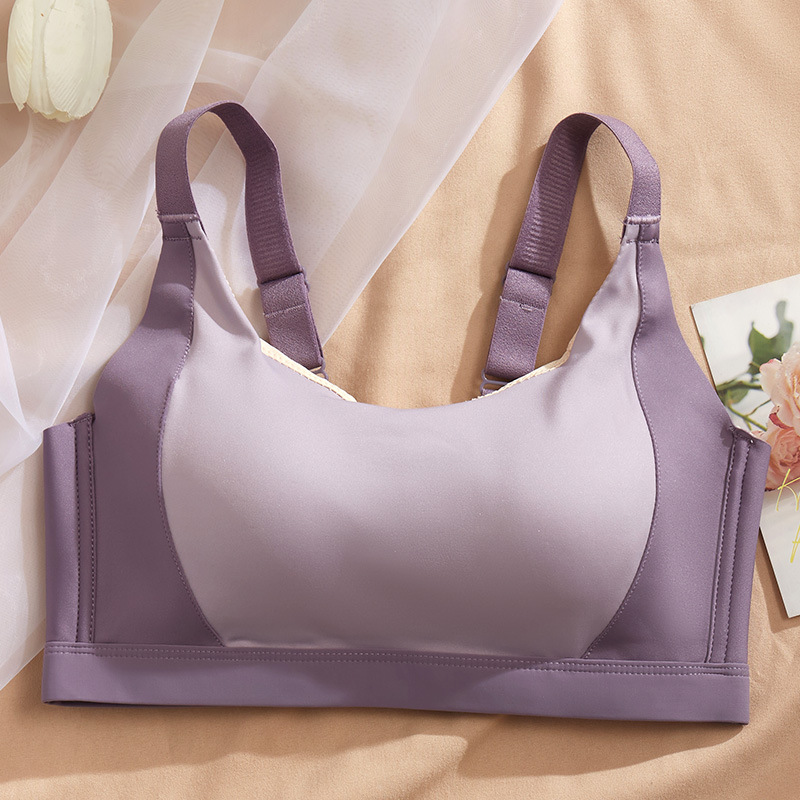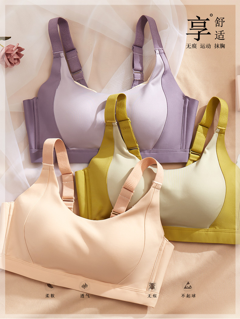 대외 무역 편안한 심리스 스포츠 속옷 여성용 얇은 스틸 링 편안한 경량 가슴 표시 작은 브래지어 대조 풀 컵