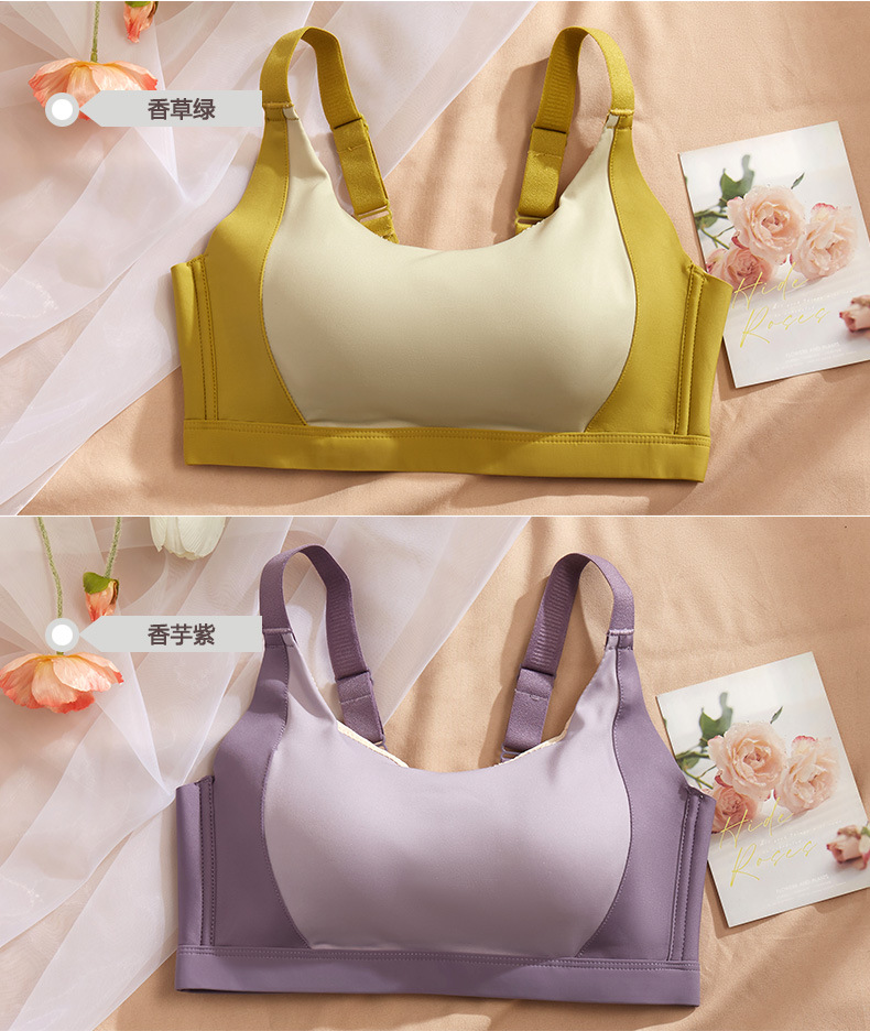 대외 무역 편안한 심리스 스포츠 속옷 여성용 얇은 스틸 링 편안한 경량 가슴 표시 작은 브래지어 대조 풀 컵스토어 가기