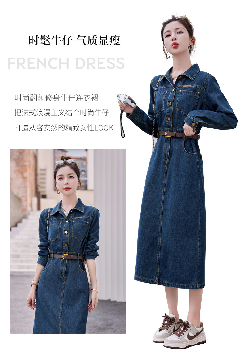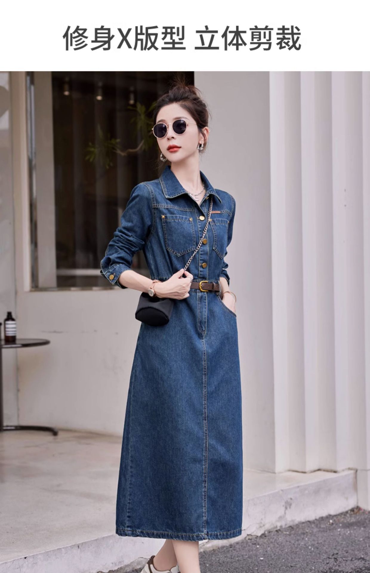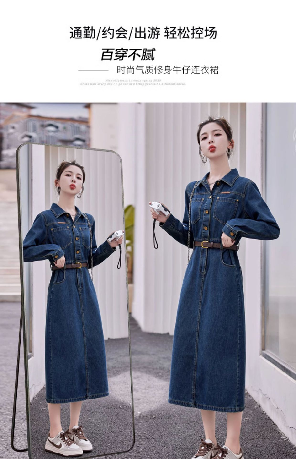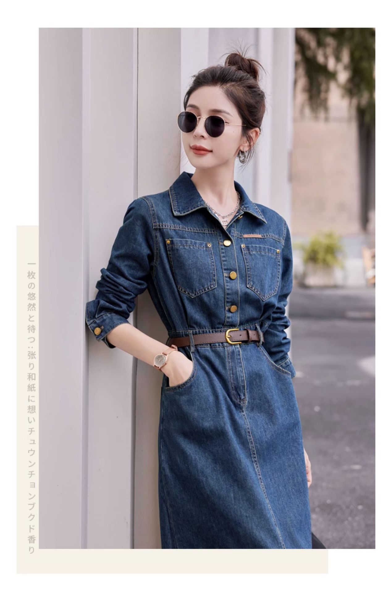 데님 원피스 여성의 봄과 가을 2024 새로운 하이 엔드 절묘한 서양식 연령 감소 캐주얼 슬리밍 긴팔 셔츠와 스커트스토어 가기