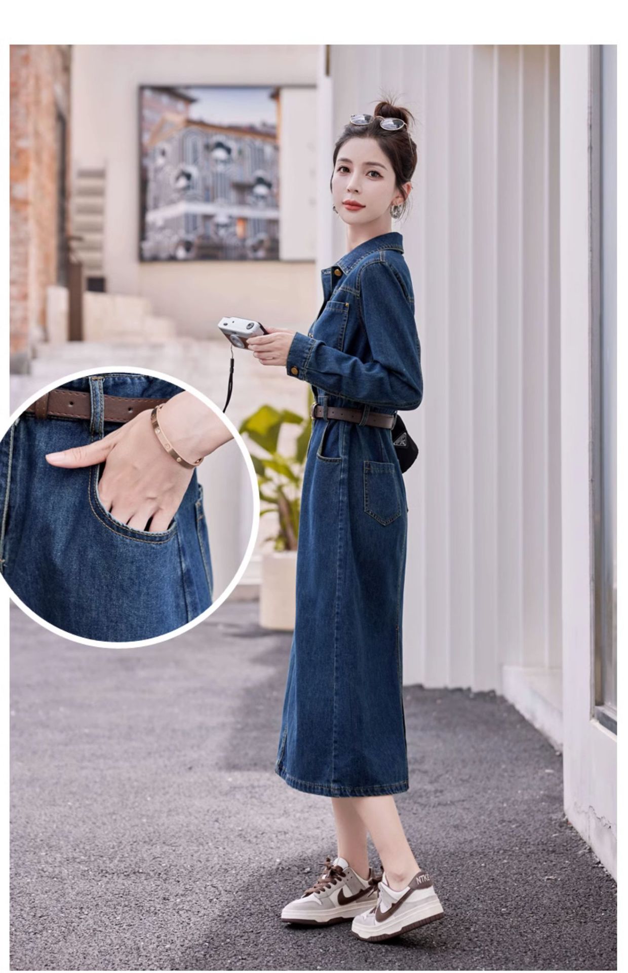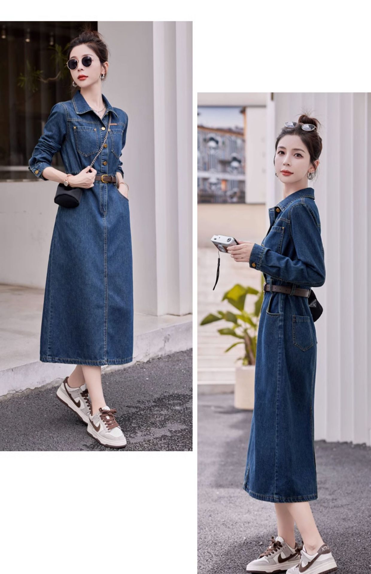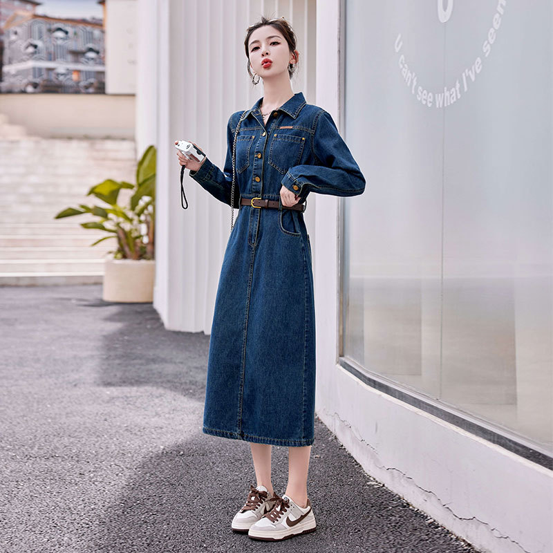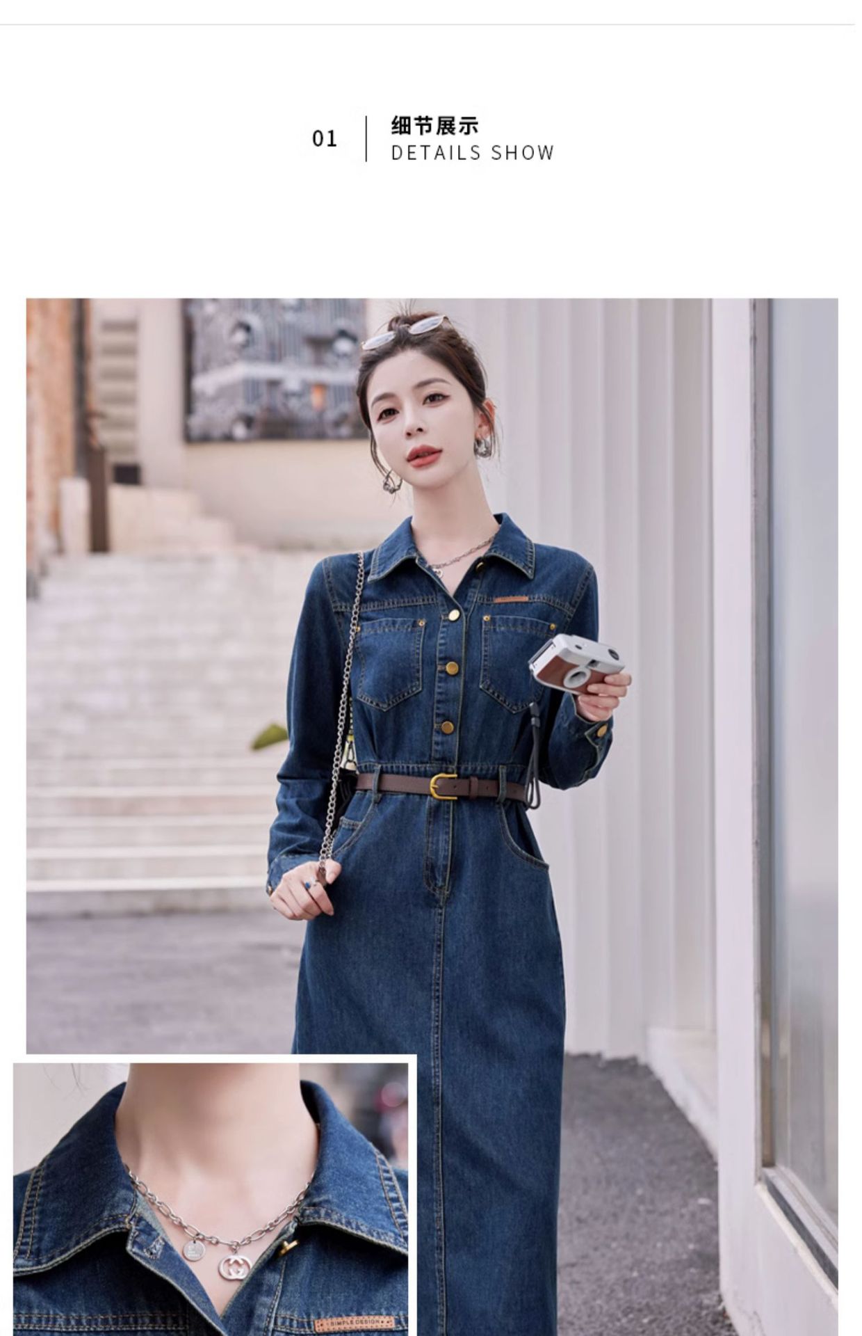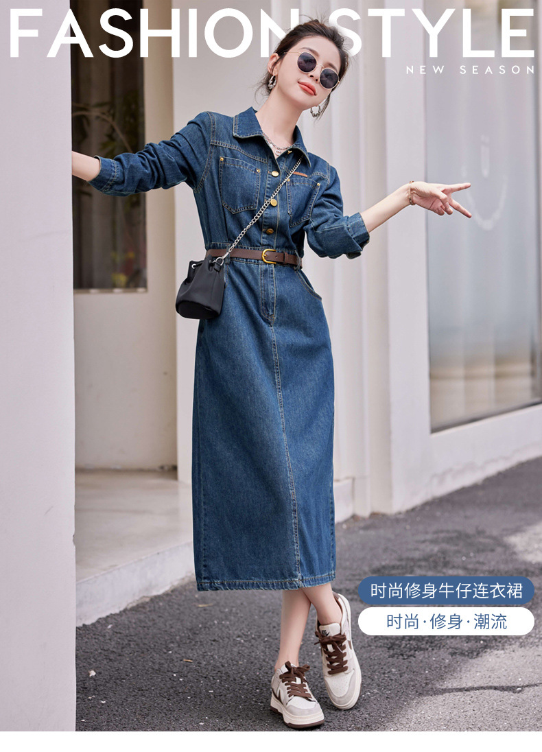 데님 원피스 여성의 봄과 가을 2024 새로운 하이 엔드 절묘한 서양식 연령 감소 캐주얼 슬리밍 긴팔 셔츠와 스커트스토어 가기