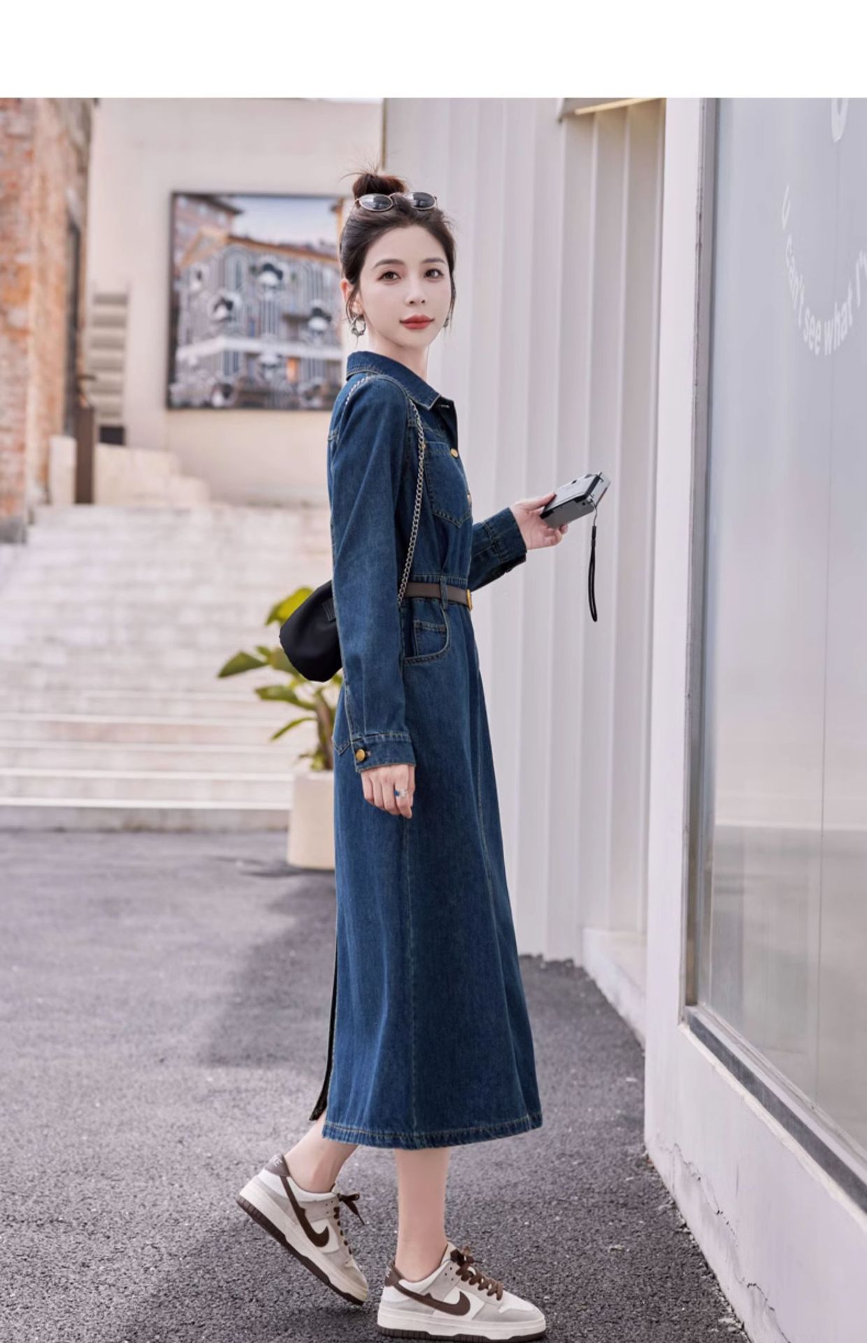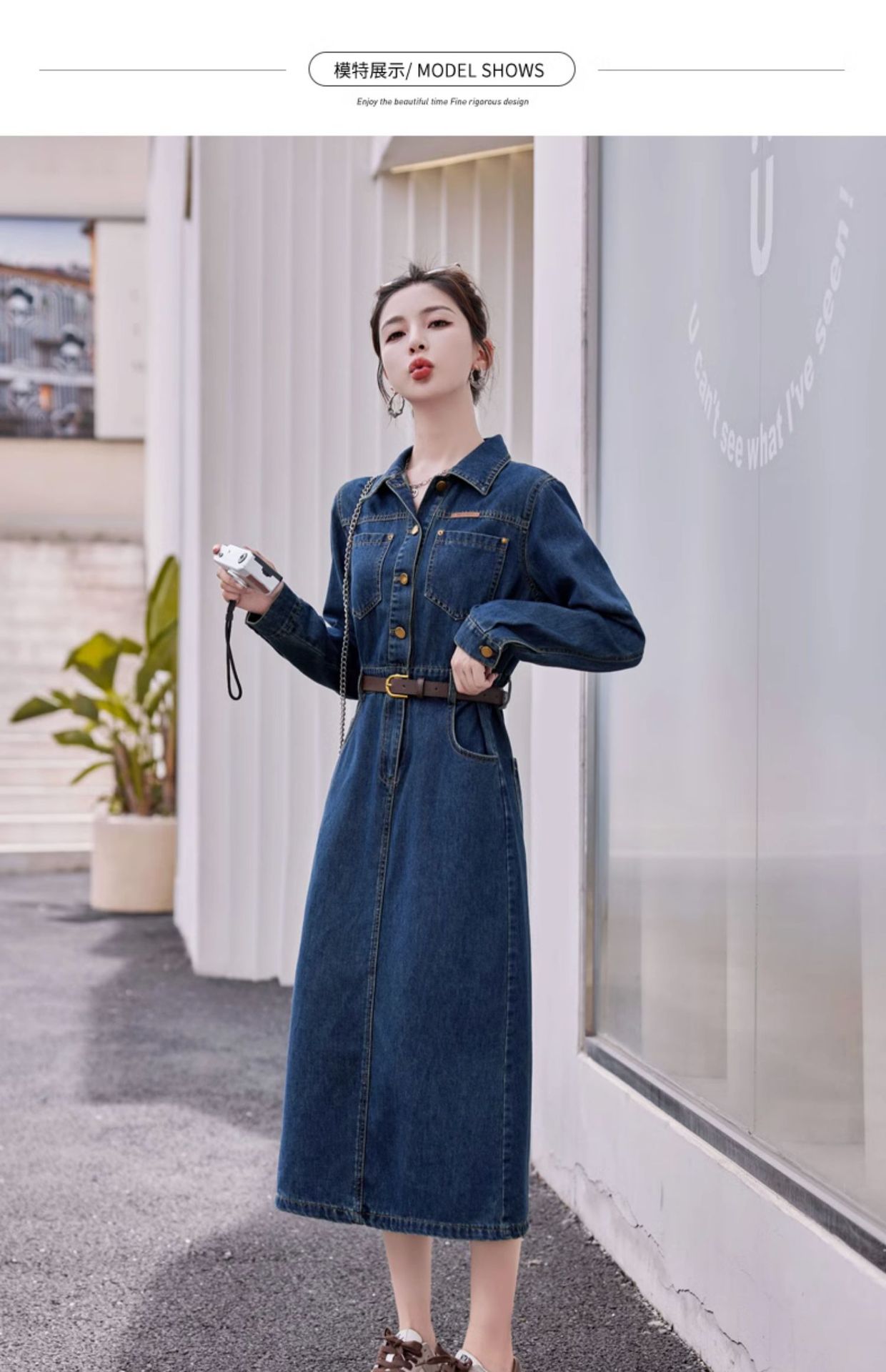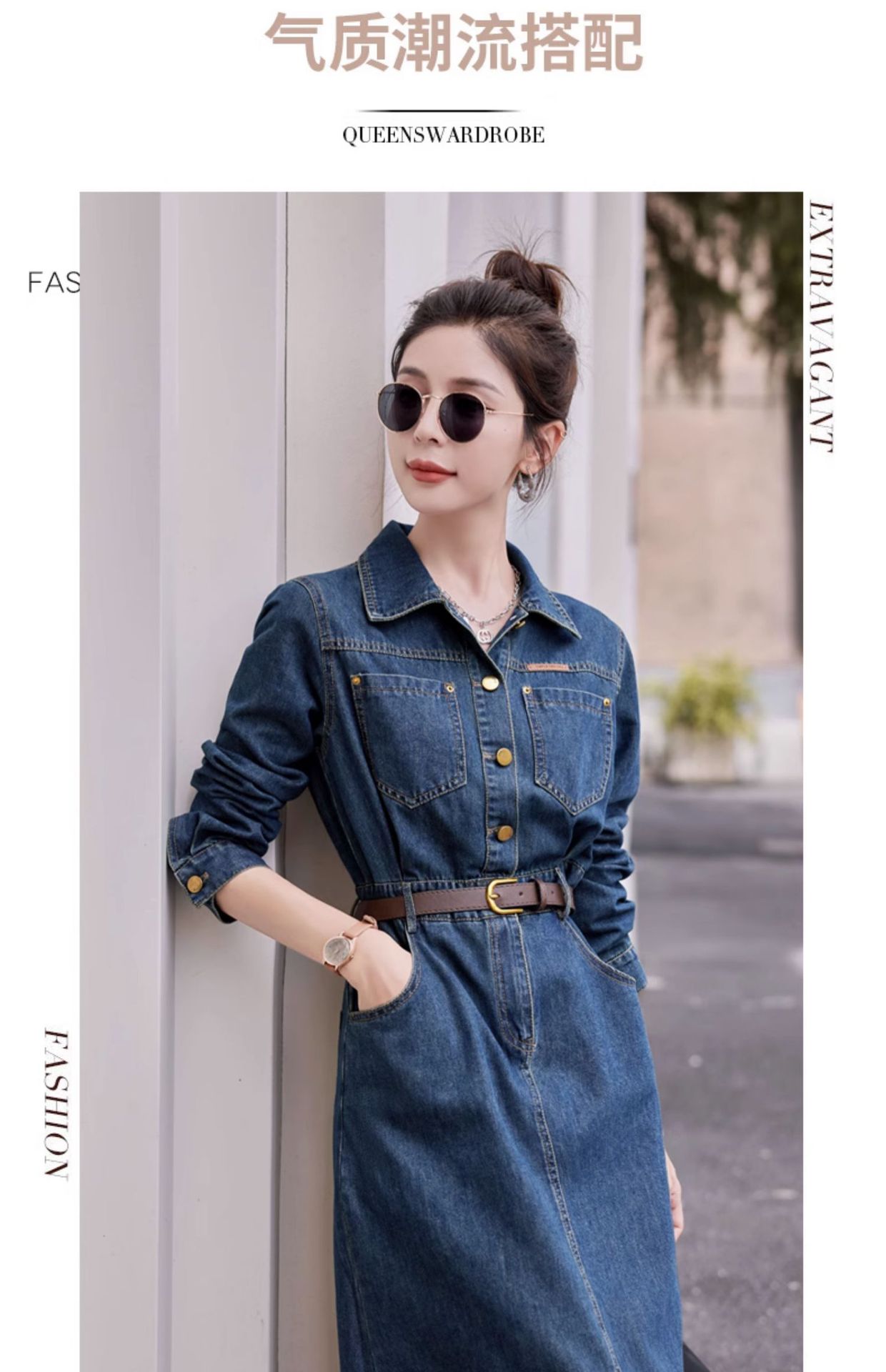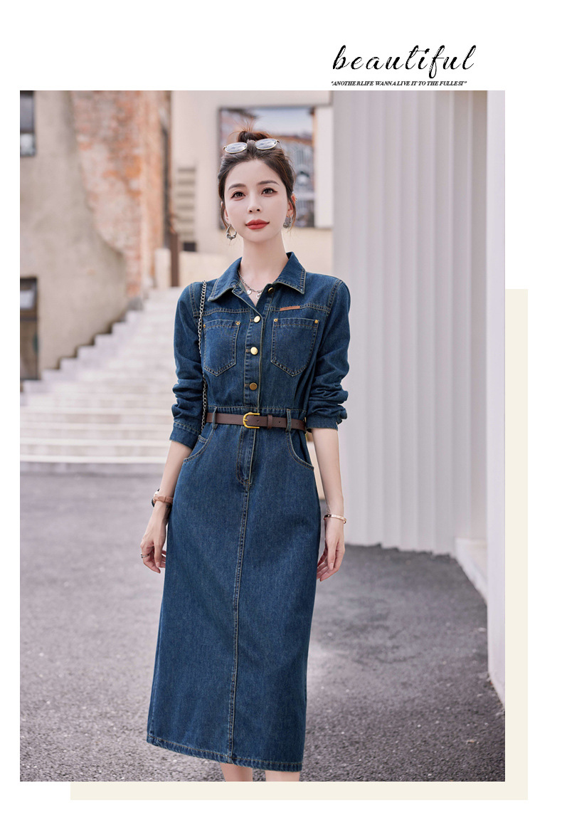 데님 원피스 여성의 봄과 가을 2024 새로운 하이 엔드 절묘한 서양식 연령 감소 캐주얼 슬리밍 긴팔 셔츠와 스커트스토어 가기