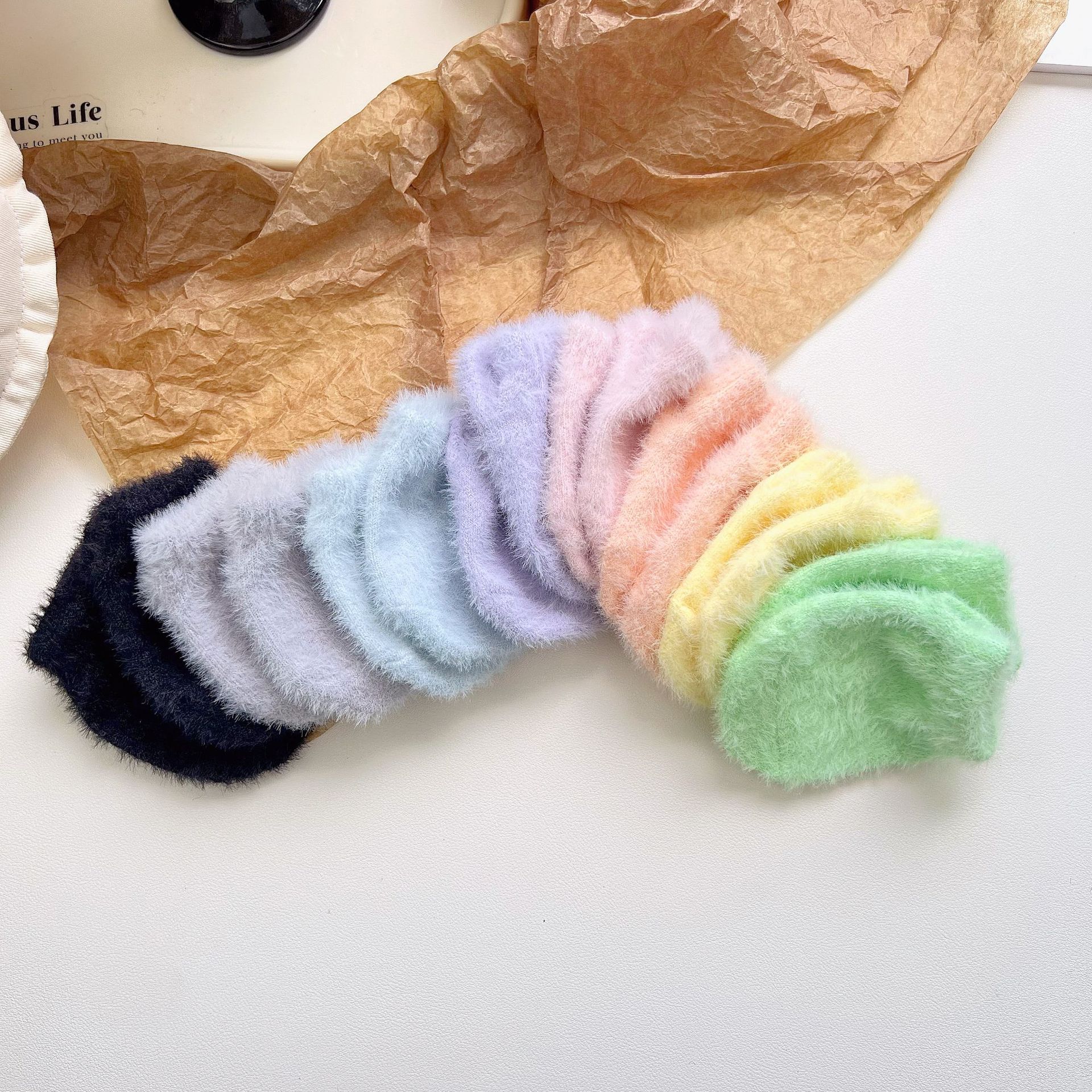 가을 겨울 신상 무지 아동 양말, 인스 스타일 아기용 기모 안감 보온 아동 바닥 양말, 면 양말, 새해 양말, 플러시 스타일스토어 가기