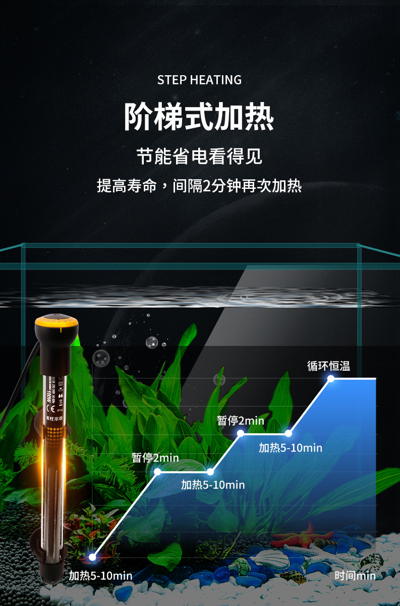 미친 수생 식물 열대어 수조 가열 막대 일정한 온도 에너지 절약 거북이 수조 가열 막대 방폭형 누수 방지 수족관 히터