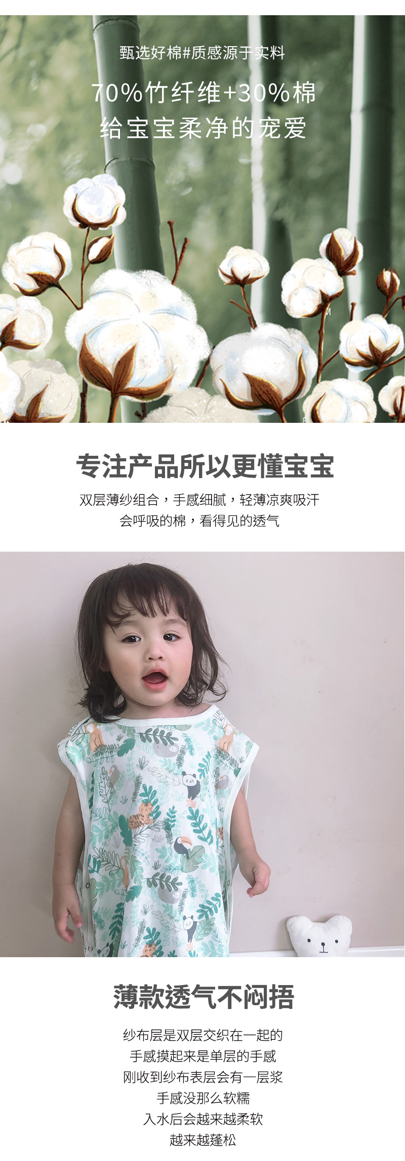 아기 침낭 2 층 거즈 대나무 면 킥 방지 이불 어린이 침낭 조끼 침낭 여름스토어 가기