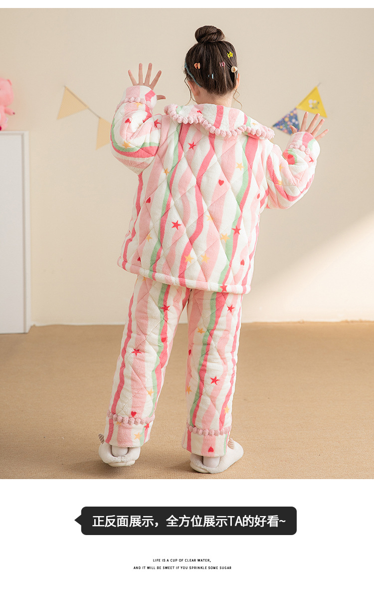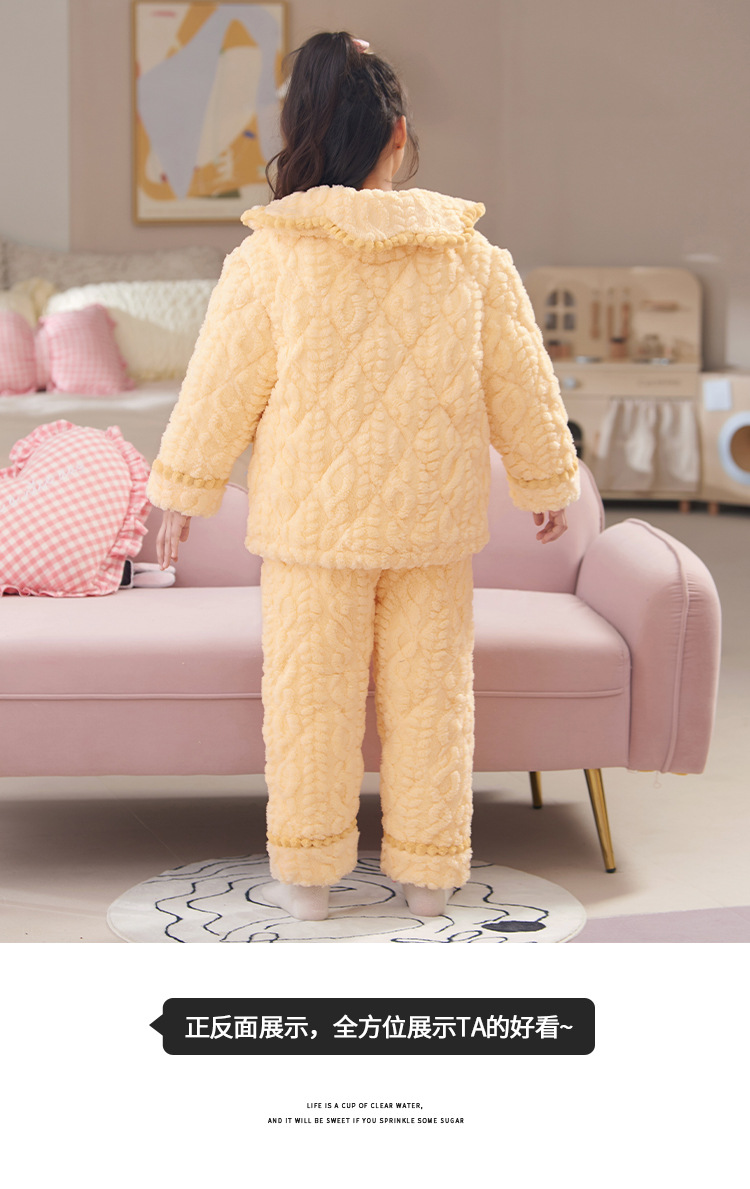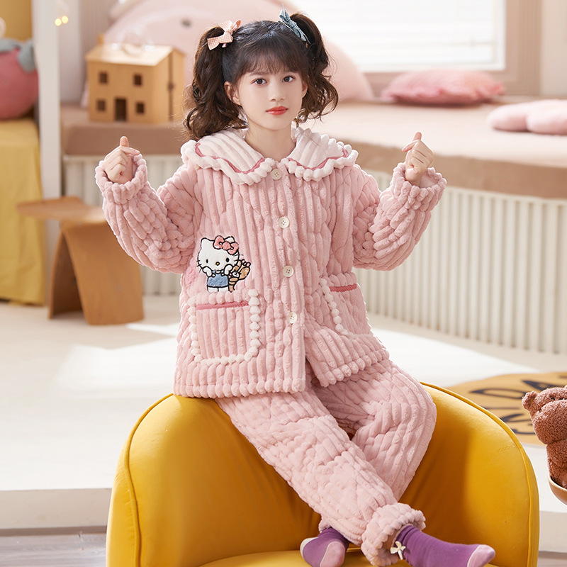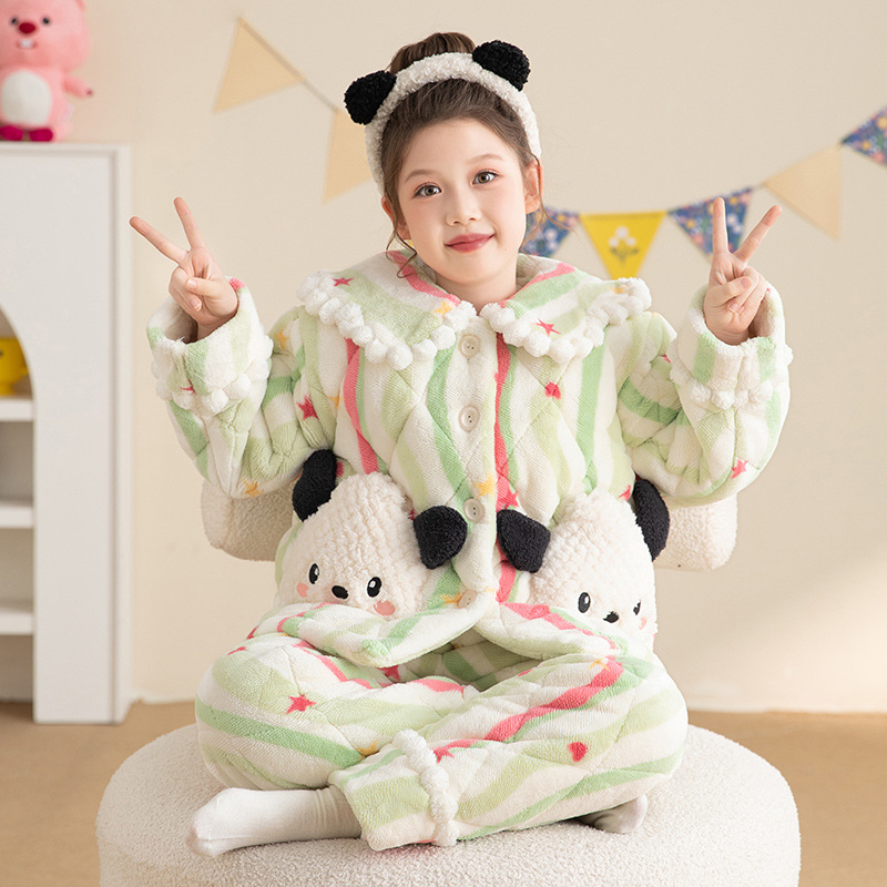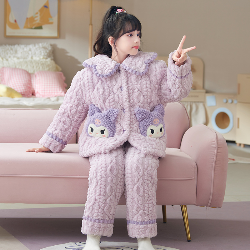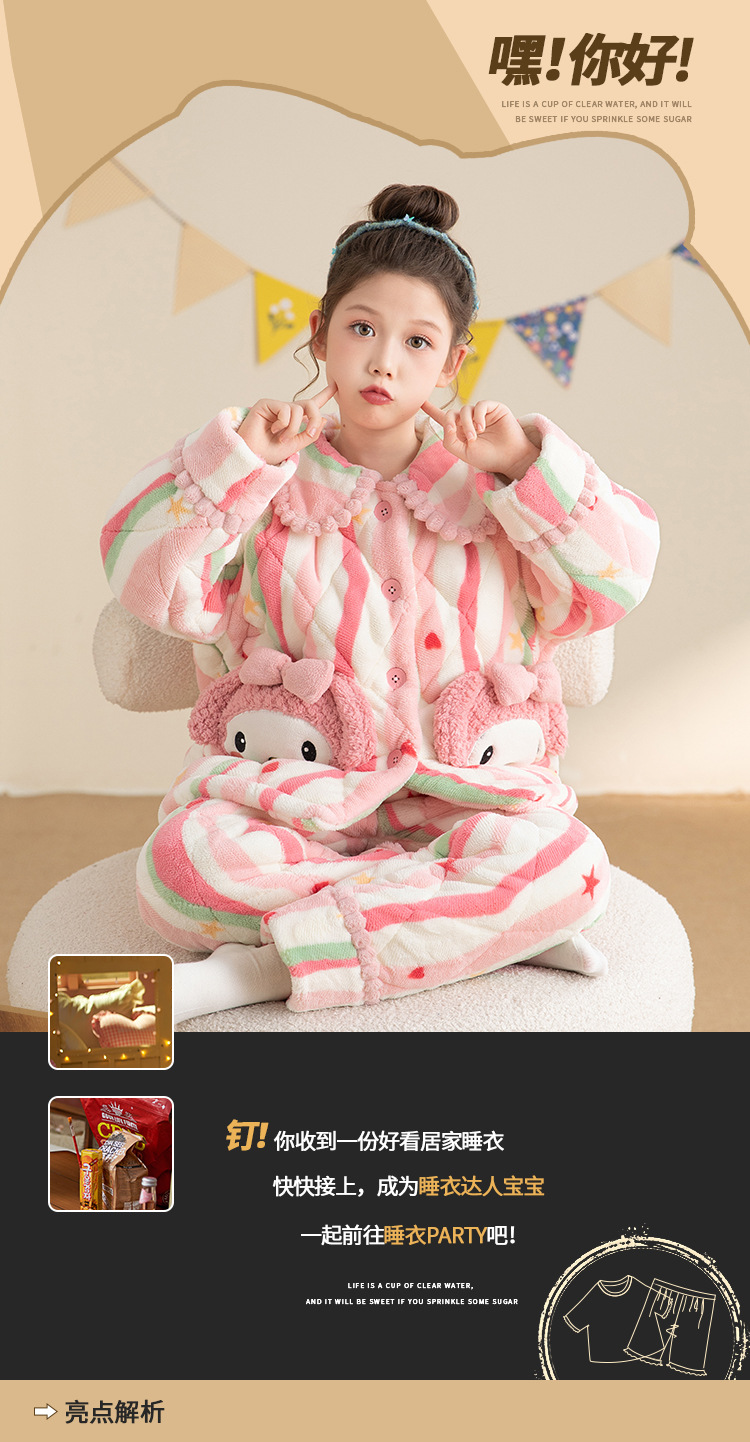 산호 양털 3 단 누비 이불 어린이 잠옷 여아 두꺼운 따뜻한 가정복 여아 대형 어린이 플란넬 겨울