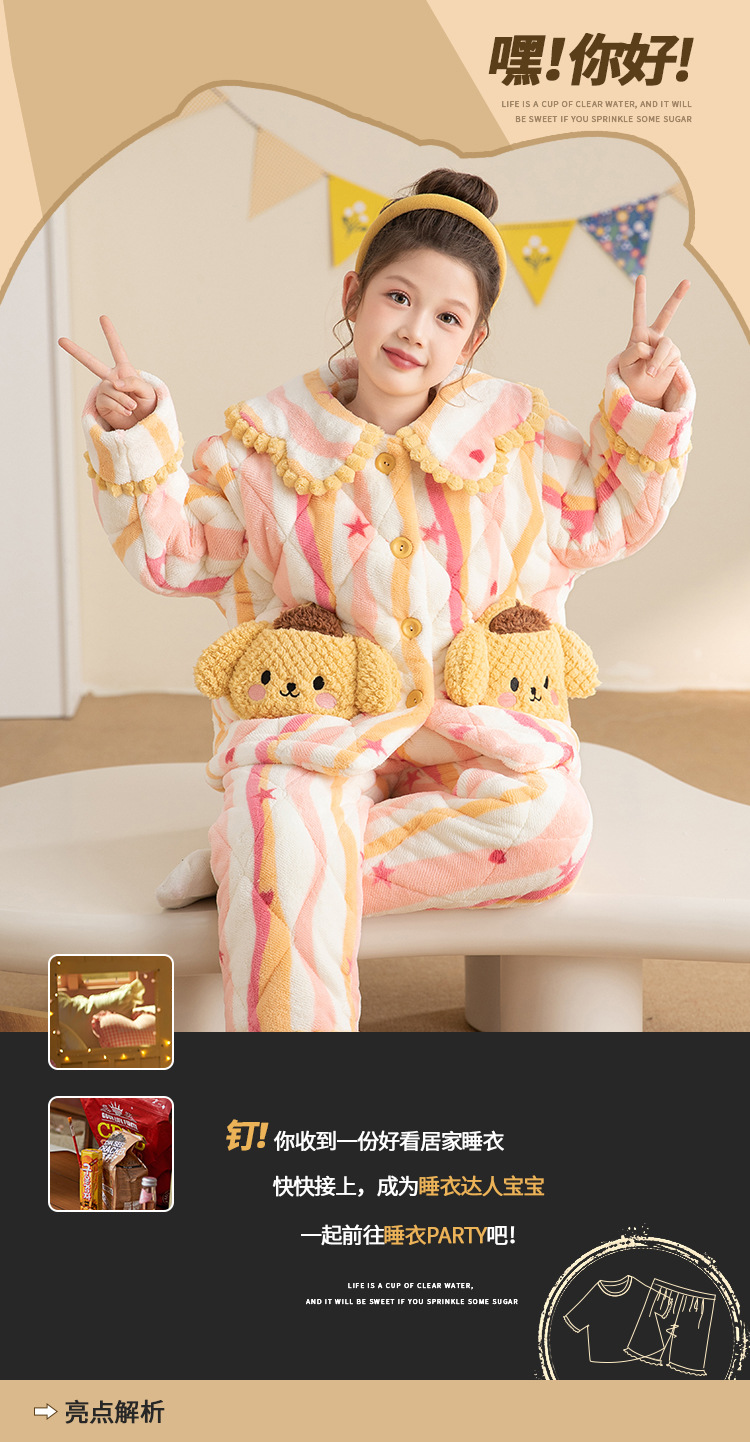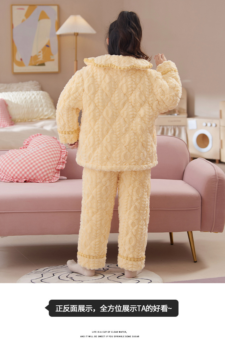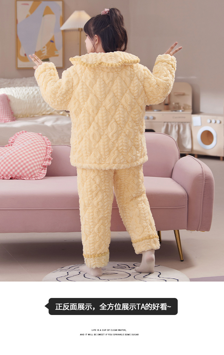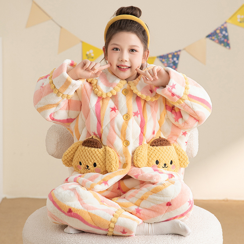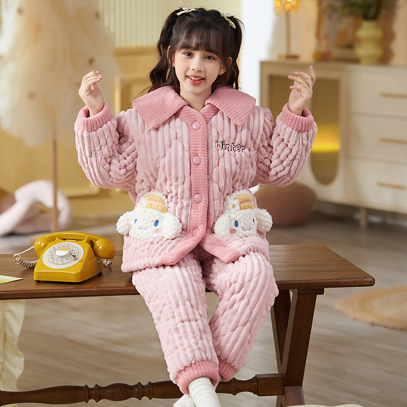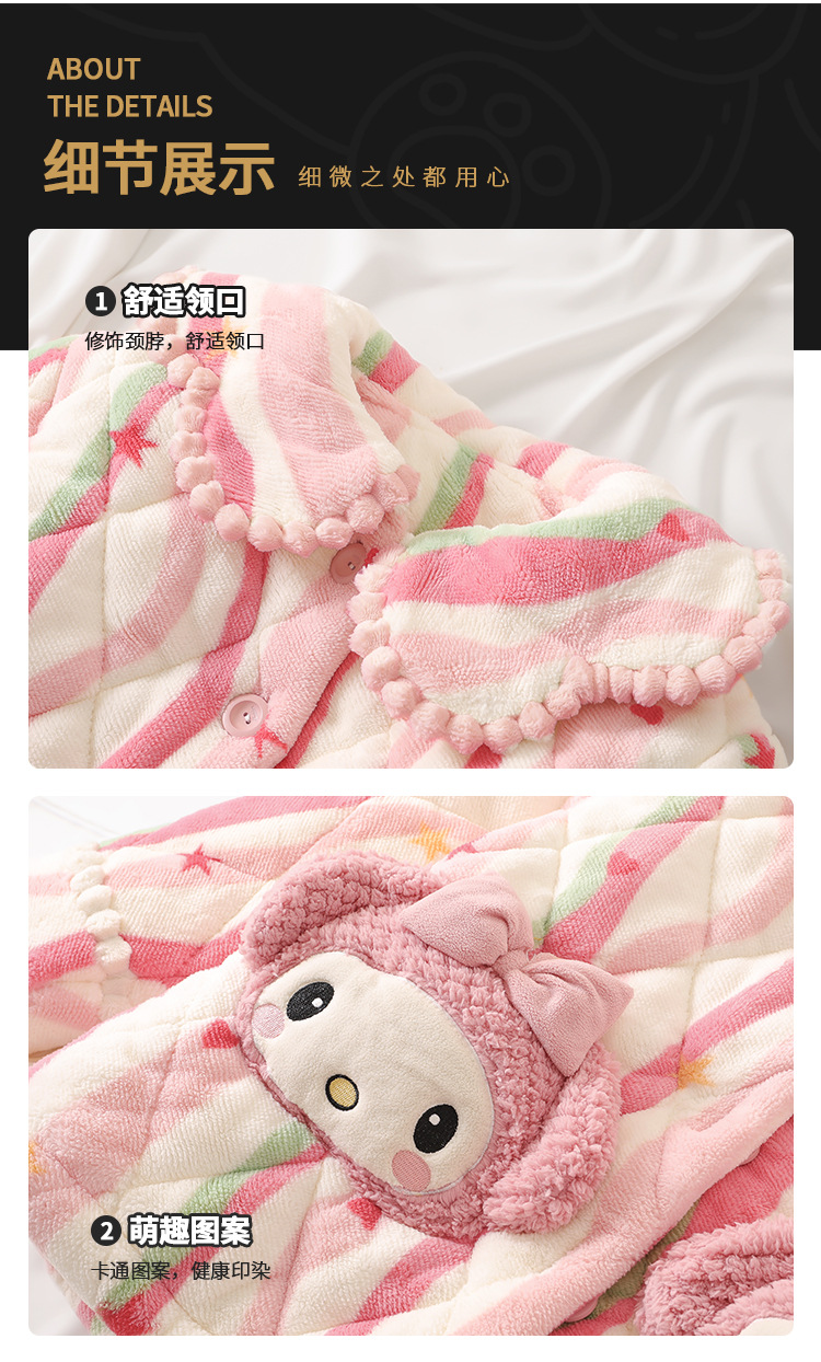 산호 양털 3 단 누비 이불 어린이 잠옷 여아 두꺼운 따뜻한 가정복 여아 대형 어린이 플란넬 겨울