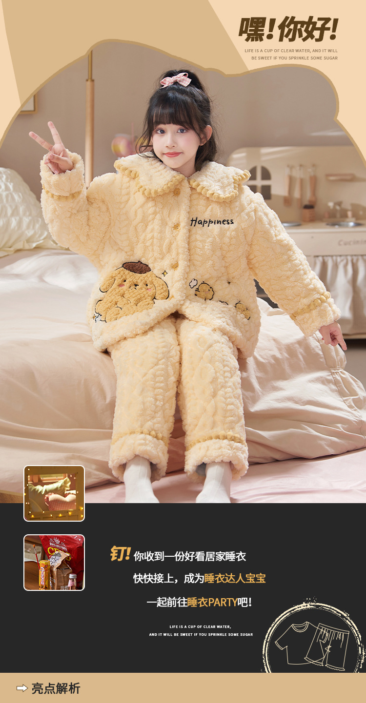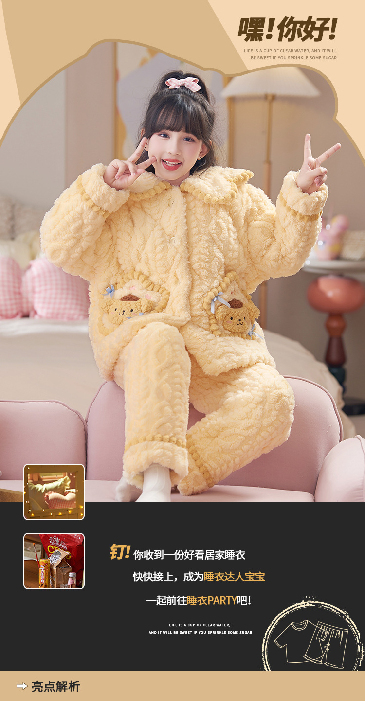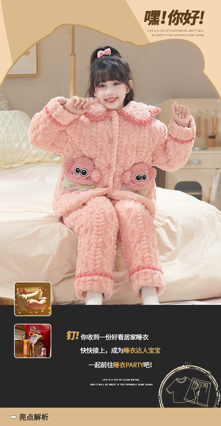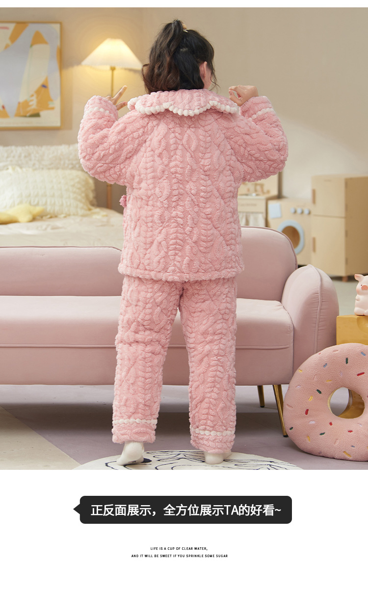 산호 양털 3 단 누비 이불 어린이 잠옷 여아 두꺼운 따뜻한 가정복 여아 대형 어린이 플란넬 겨울스토어 가기