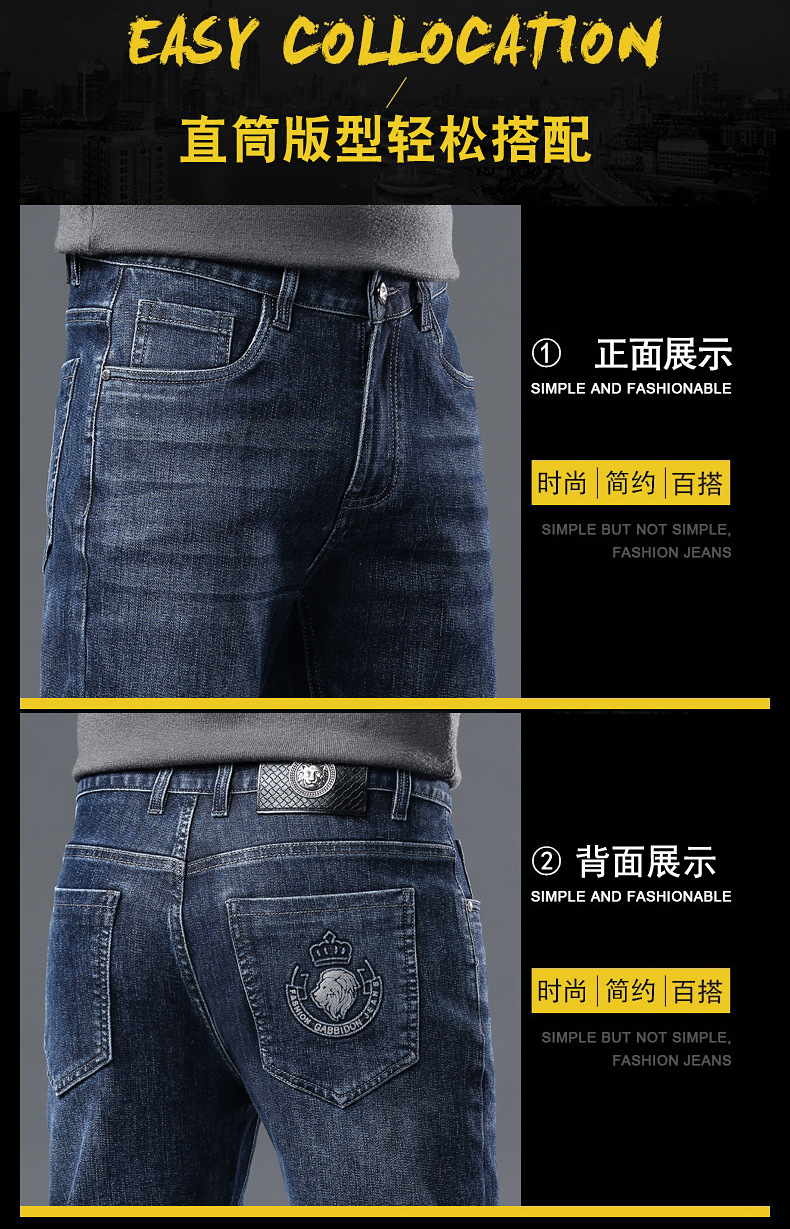 팬츠 패션 자수 청바지 남성용 봄 가을 신상 신축성 주름 방지 스트레이트 팬츠 남성용 고품질 다용도 긴바지스토어 가기