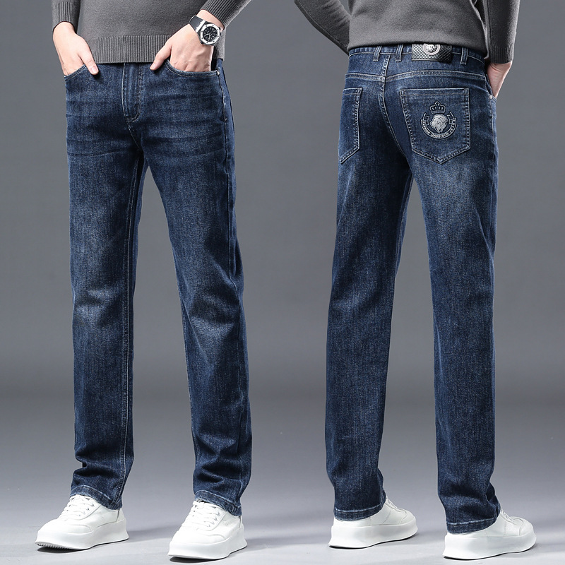 팬츠 패션 자수 청바지 남성용 봄 가을 신상 신축성 주름 방지 스트레이트 팬츠 남성용 고품질 다용도 긴바지