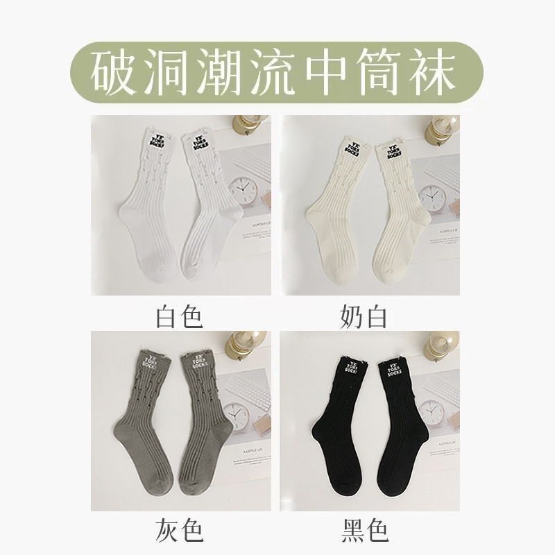 찢어진 양말 여성용 미드 튜브 양말 봄과 가을 순면 사이버 연예인 스포츠 거지 양말 한국 쌓인 세련된 양말스토어 가기