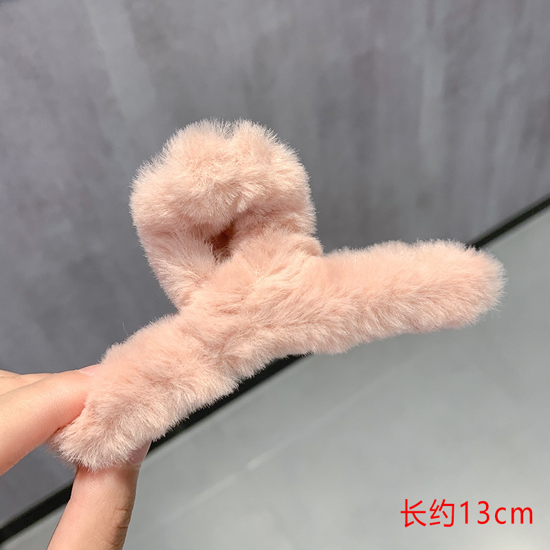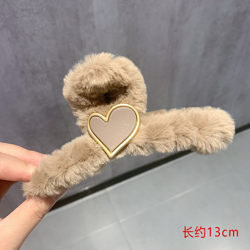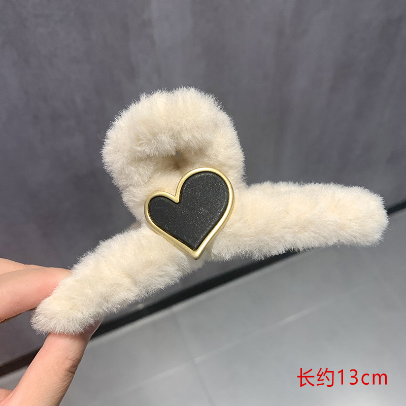 • 베이지 러브 플러시 그랩 클립 "약 13cm]