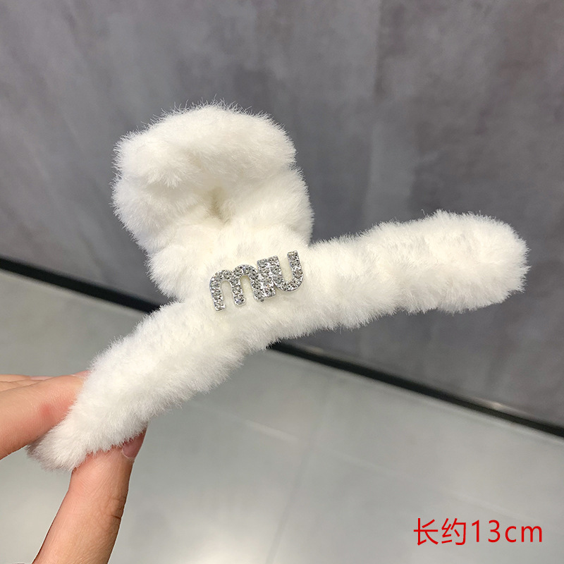 • 라인 석 문자 흰색 플러시 잡아 클립 "약 13cm]