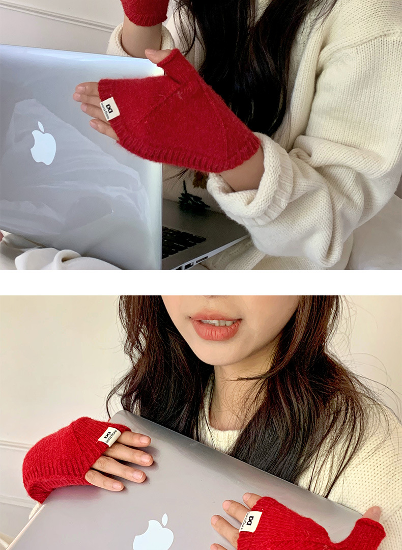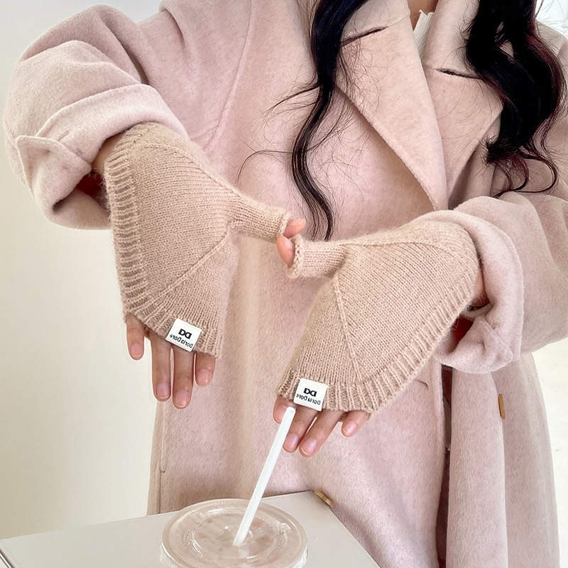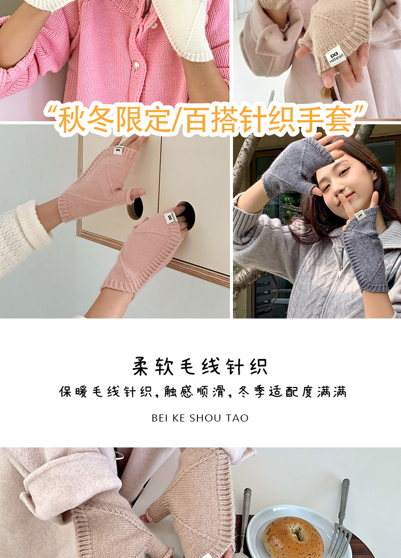 겨울 쉘 반 니트 장갑 여성의 귀여운 겨울 오픈 손가락 반 손가락 장갑 학생 울 따뜻한 장갑 도매스토어 가기