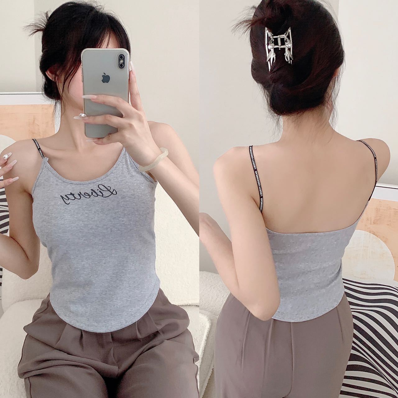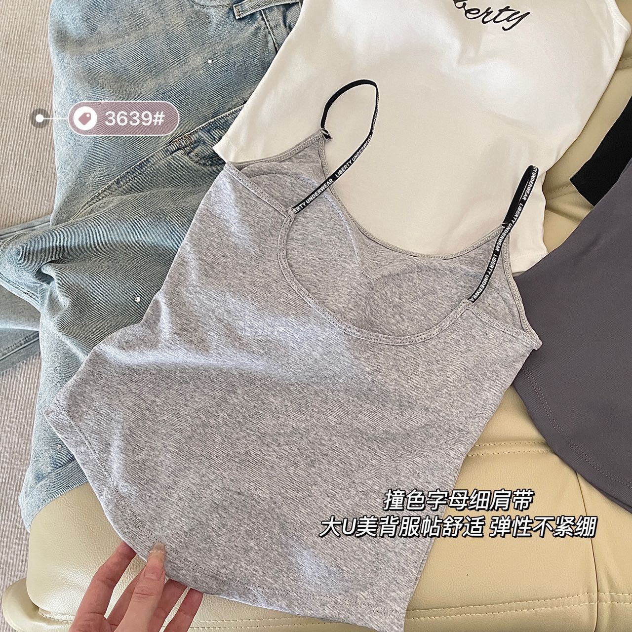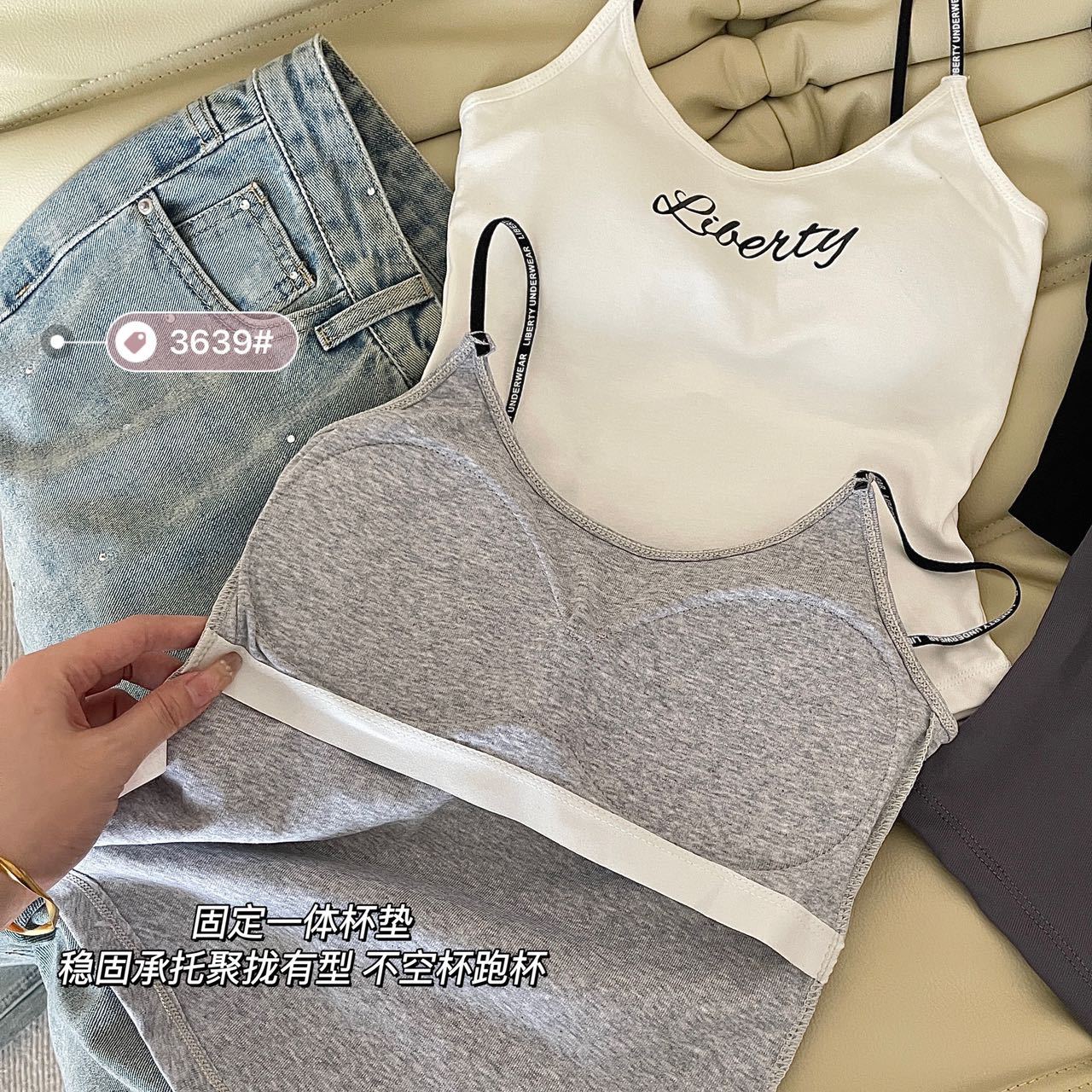 솔리드 컬러 캐미솔 여성용 여름 아우터 탑 고정 가슴 패드 없음 스틸 링 얇은베이스 길고 얇은 튜브 탑스토어 가기