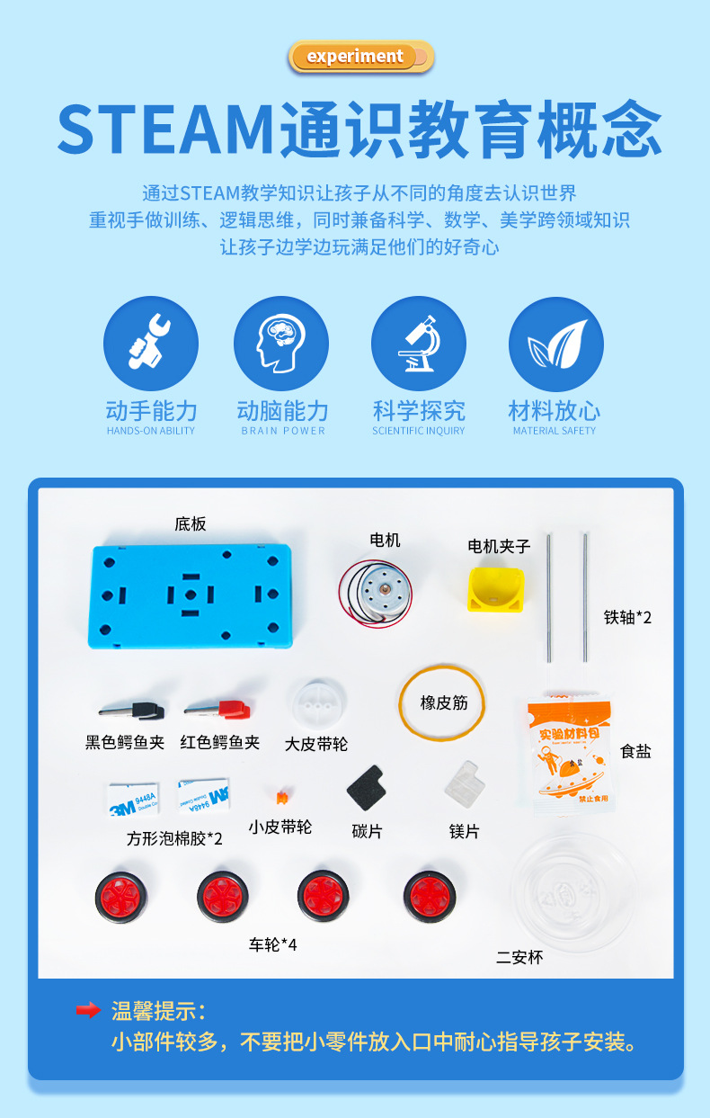 소금물 발전 자동차 물리학 실험 DIY 재료 가방 창조적 인 수제 작은 발명 과학 실험 세트
