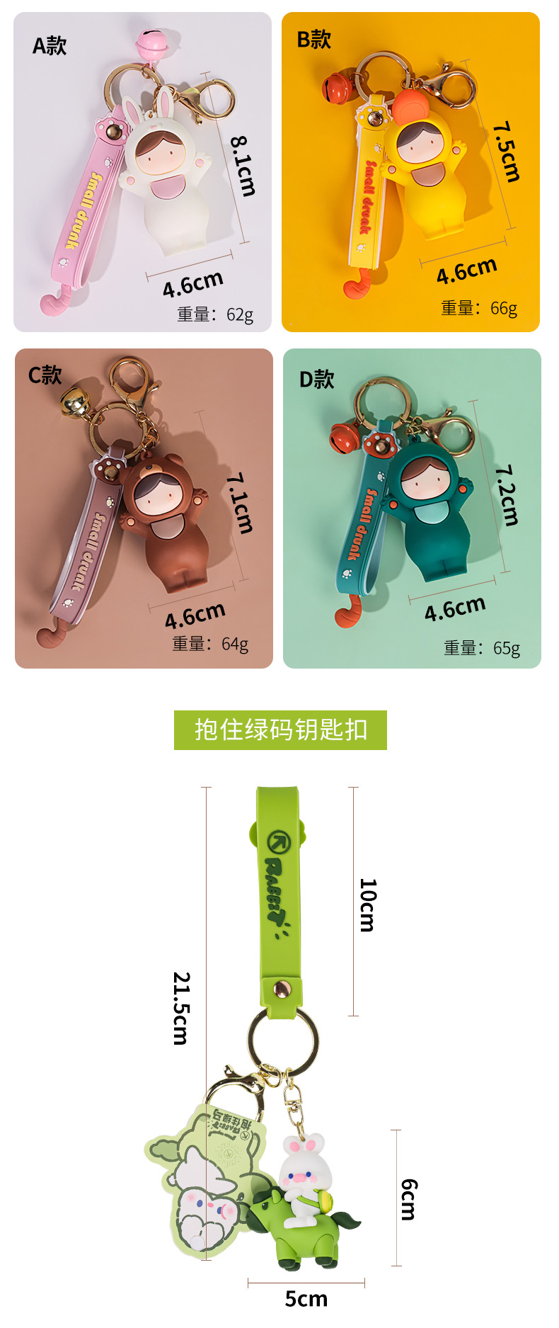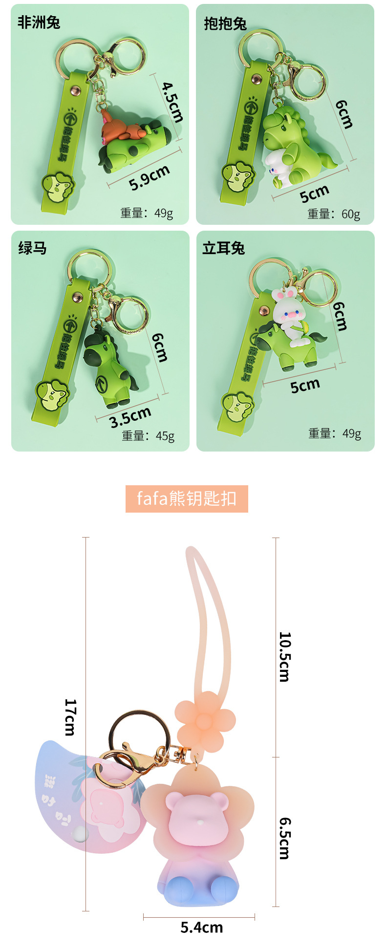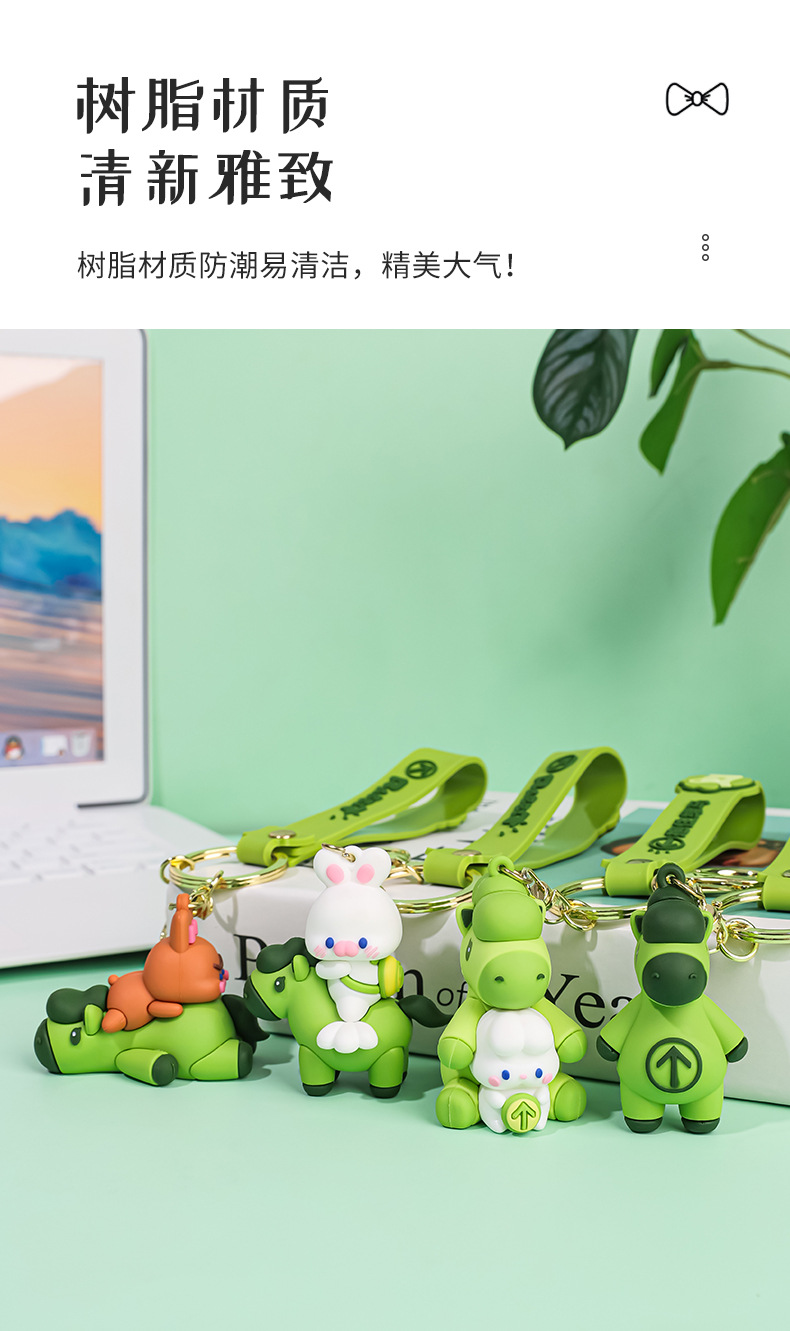 귀여운 인형 곰 녹색 말 PVC 열쇠 고리 패션 절묘한 드롭 접착제 인형 휴대 전화 체인 가방 소녀 선물스토어 가기