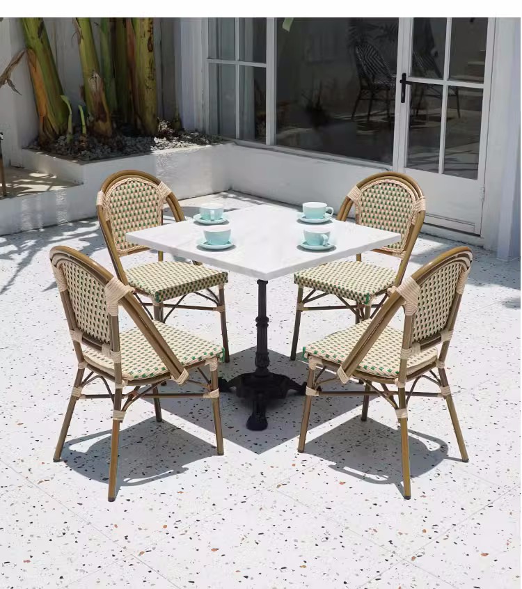 야외 테이블과 의자 조합 등나무 인터넷 인기 레트로 프랑스 식당 의자 호텔 야외 홈스테이 발코니 안뜰 싱글 의자스토어 가기