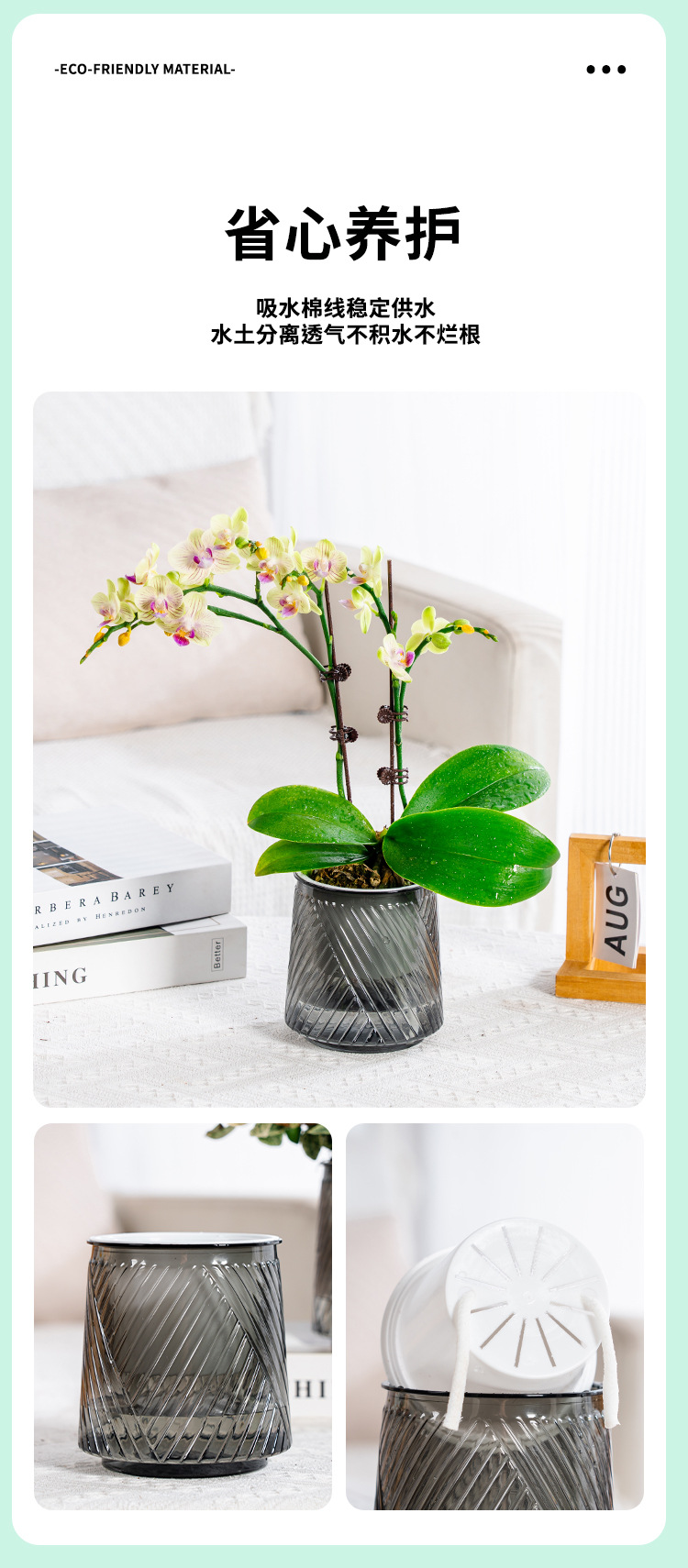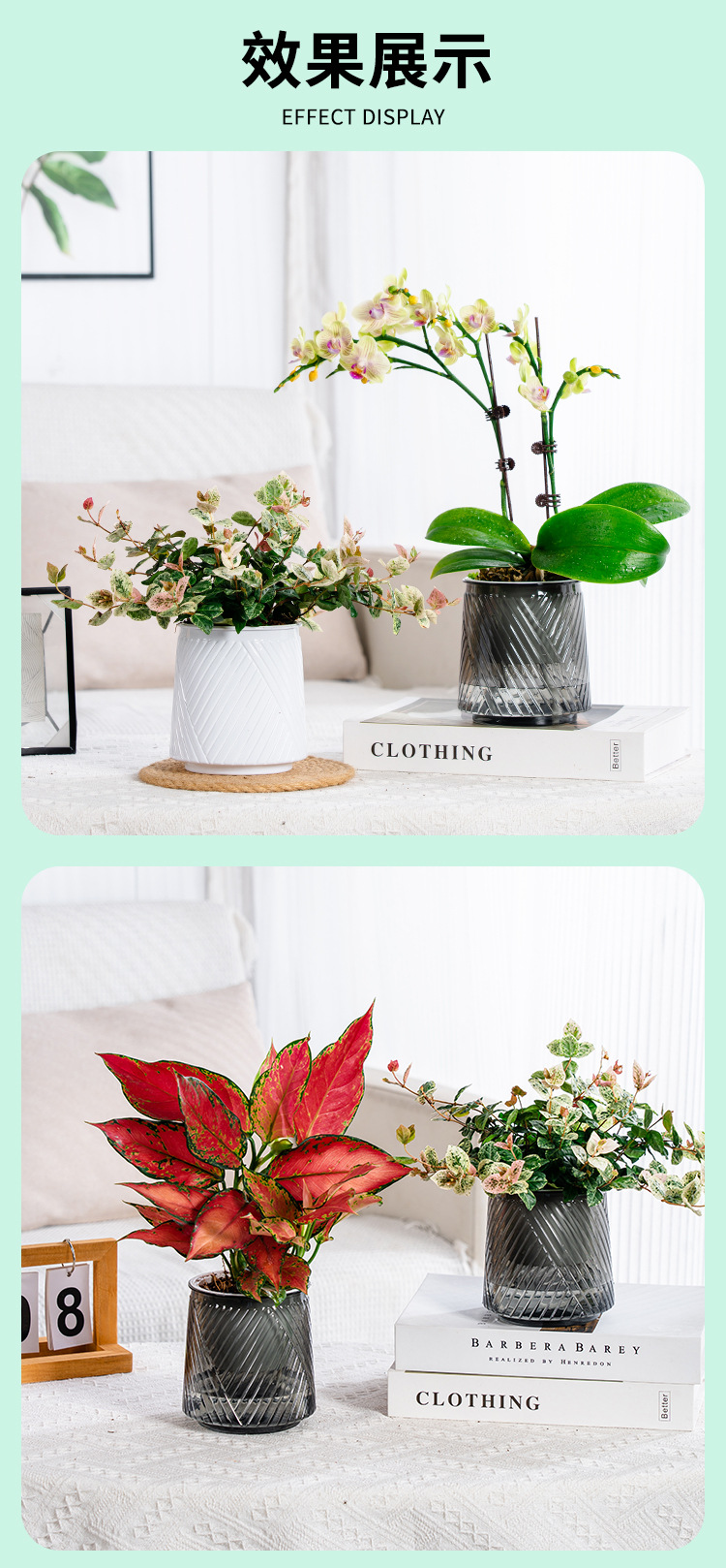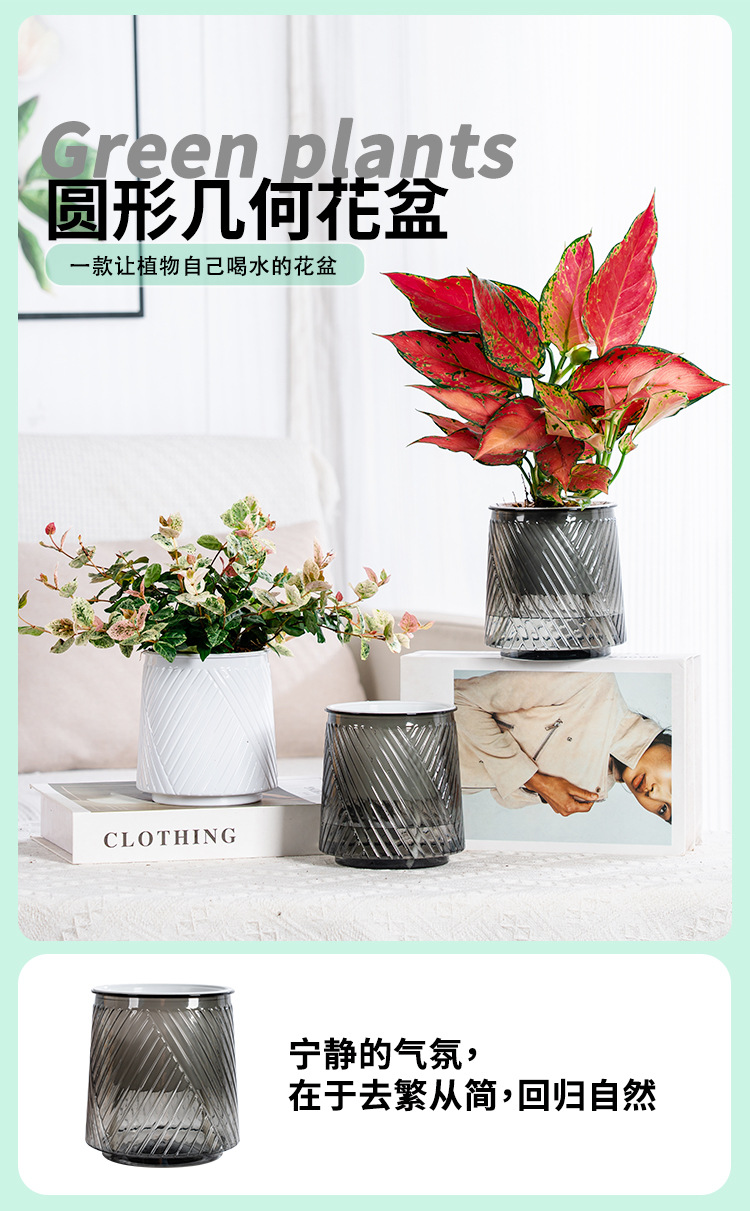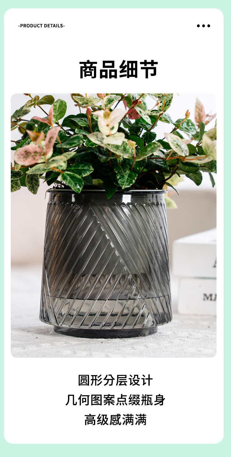 Meixuan 게으른 자기 흡수 투명 화분 플라스틱 수지 수경 기하학 데스크탑 실내 포춘 트리 호접란 분지스토어 가기