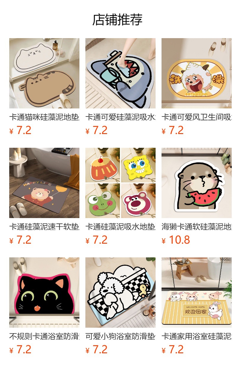 만화 가정용 규조 진흙 매트 귀여운 동물 화장실 흡수성 도어 매트 욕실 미끄럼 방지 매트 공장 직접 공급스토어 가기