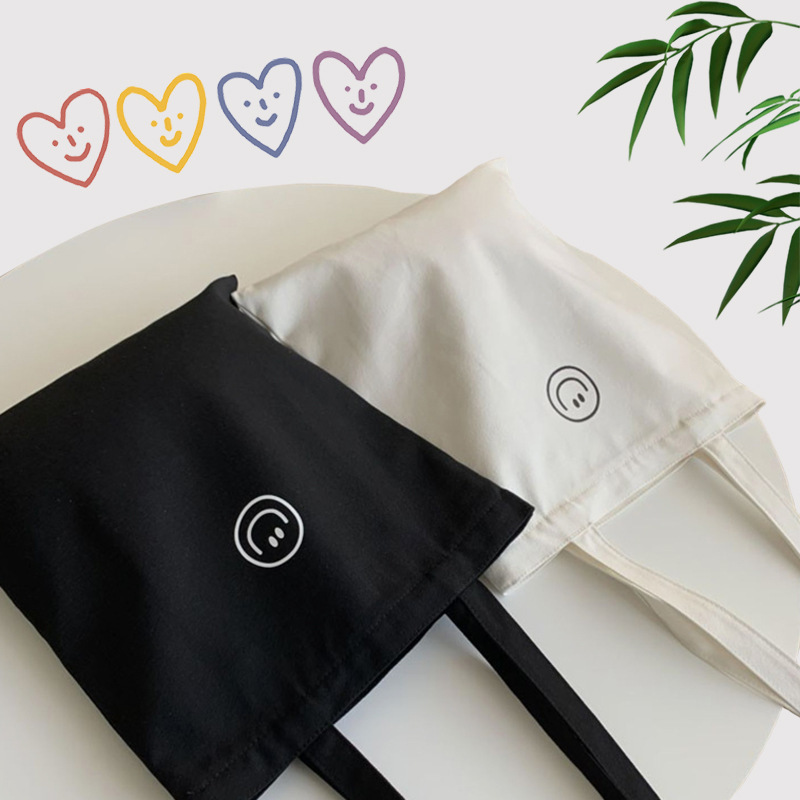 2025 대용량 캔버스 가방 스마일 숄더백 학생용 실용 핸드백 학습용 친환경 가방 여름 여성 수납용