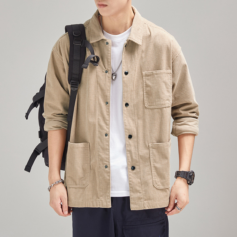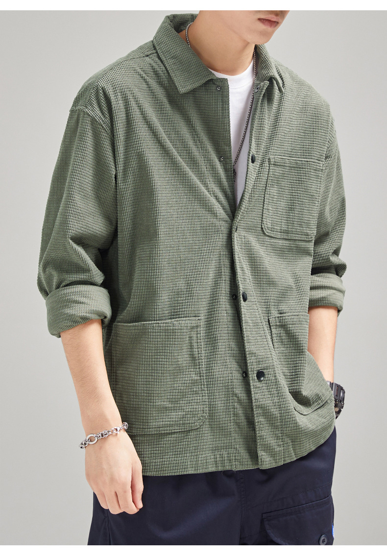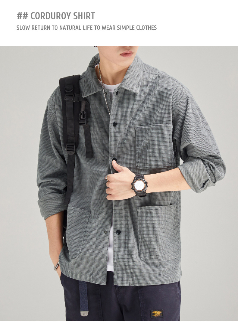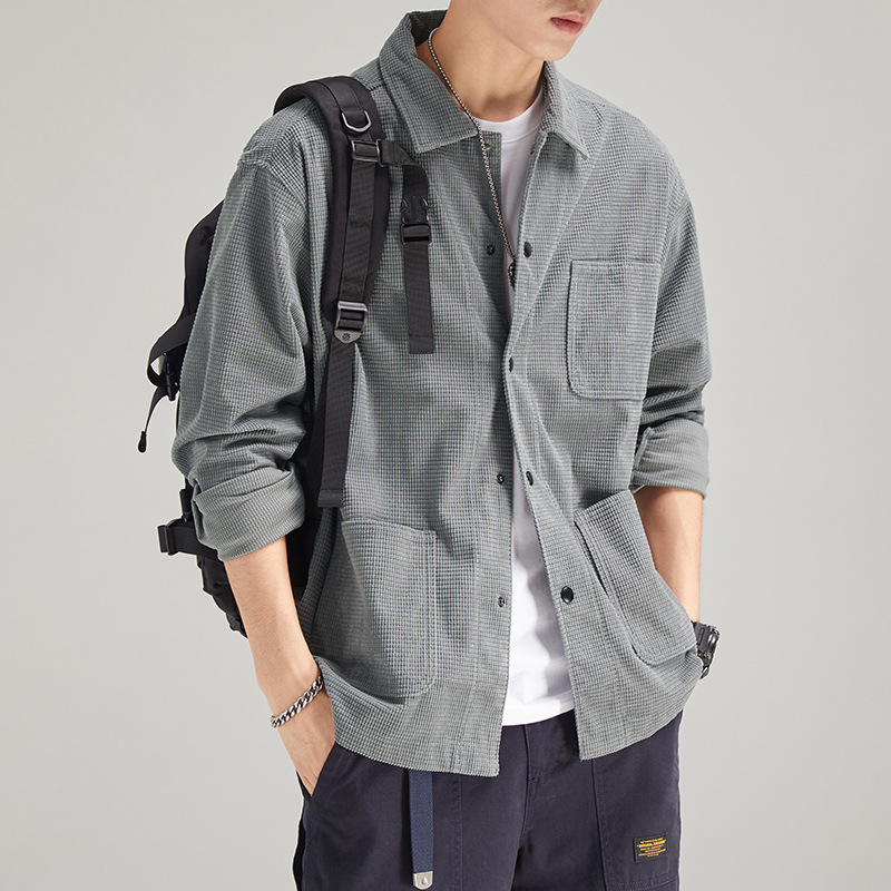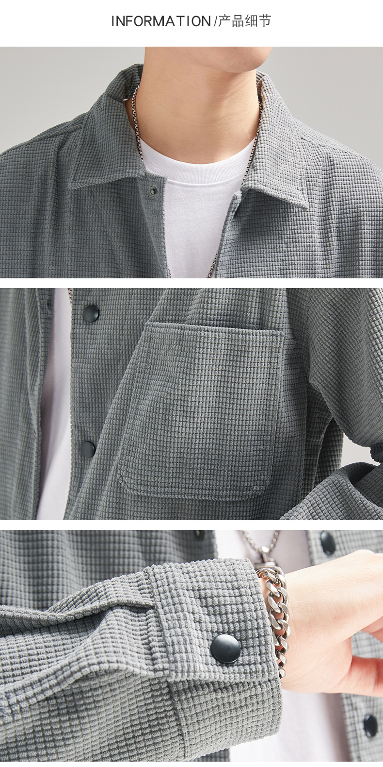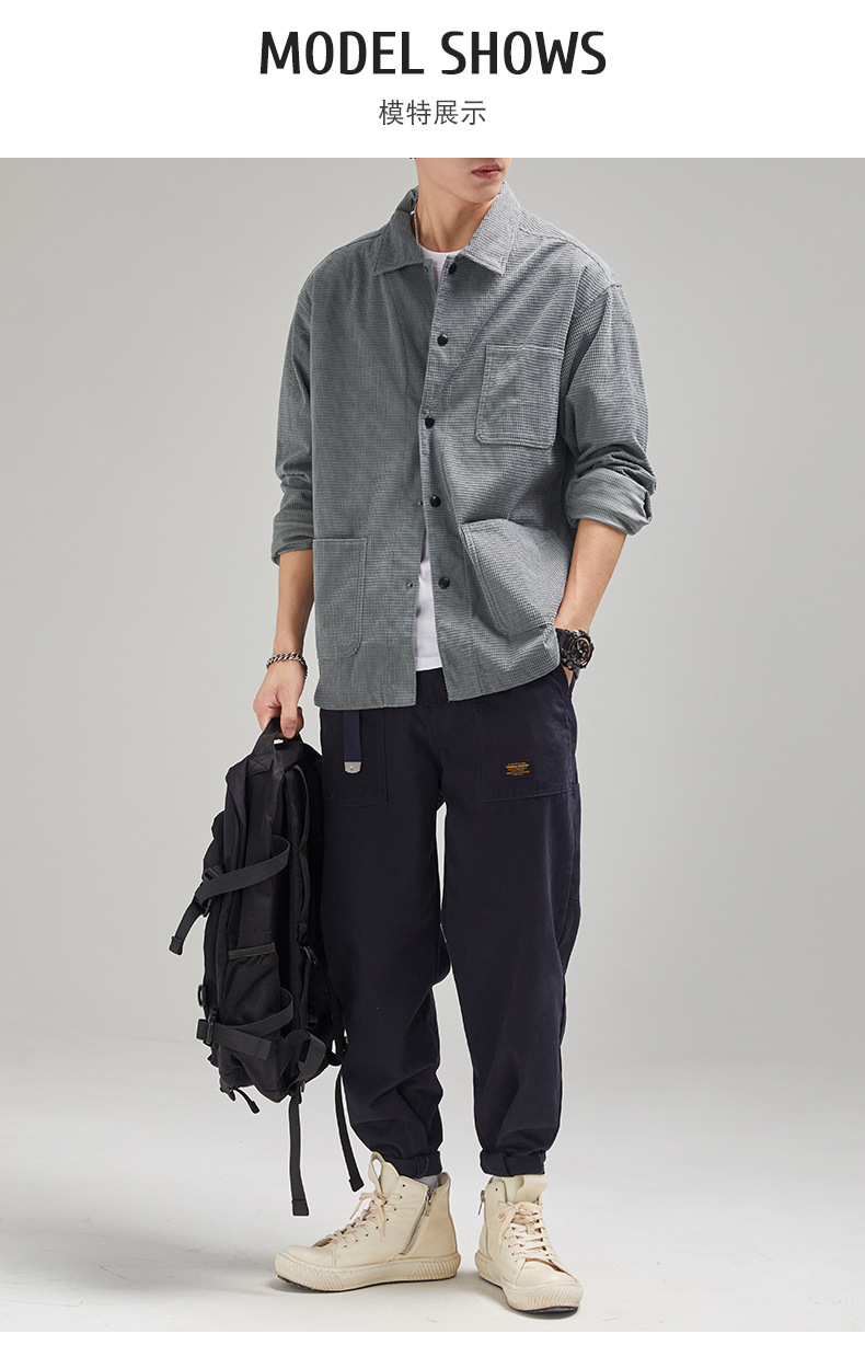 남자 셔츠 가을 빈티지 세탁 공예 Houndstooth 고급 질감 Anmuyan 코트 셔츠 Z164스토어 가기
