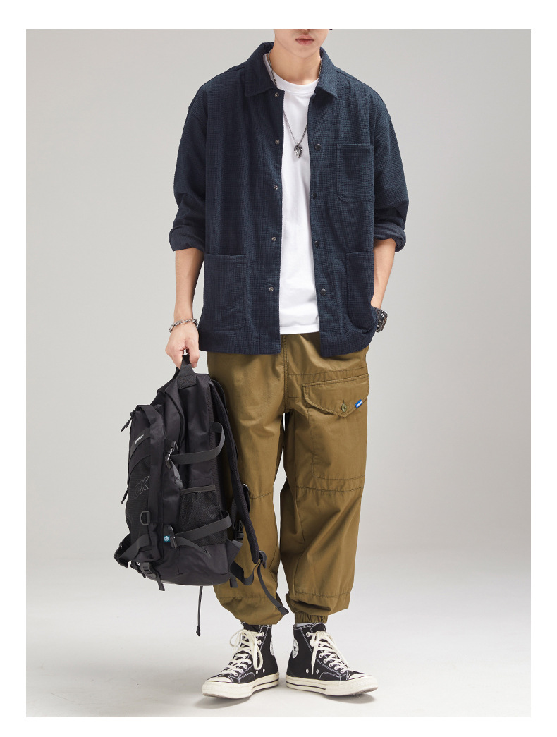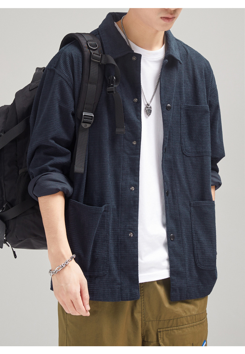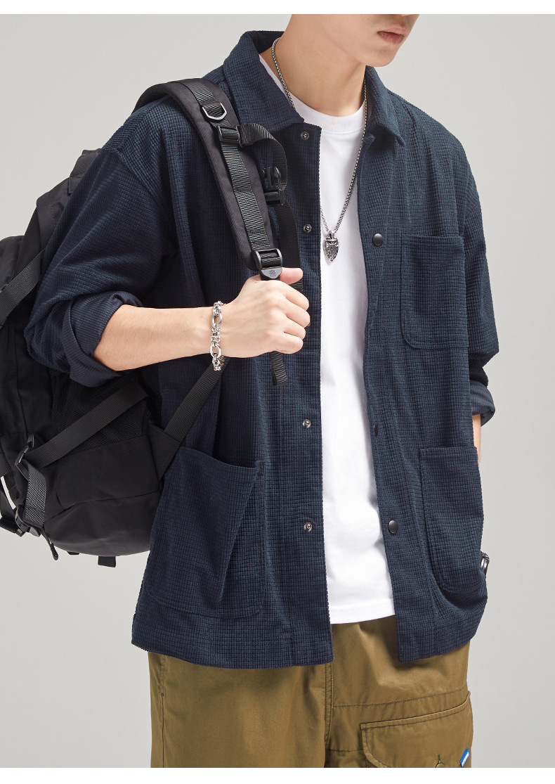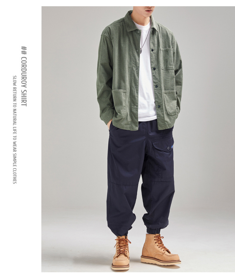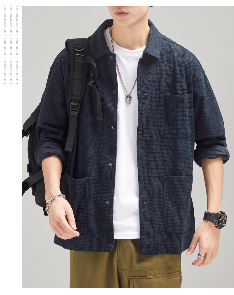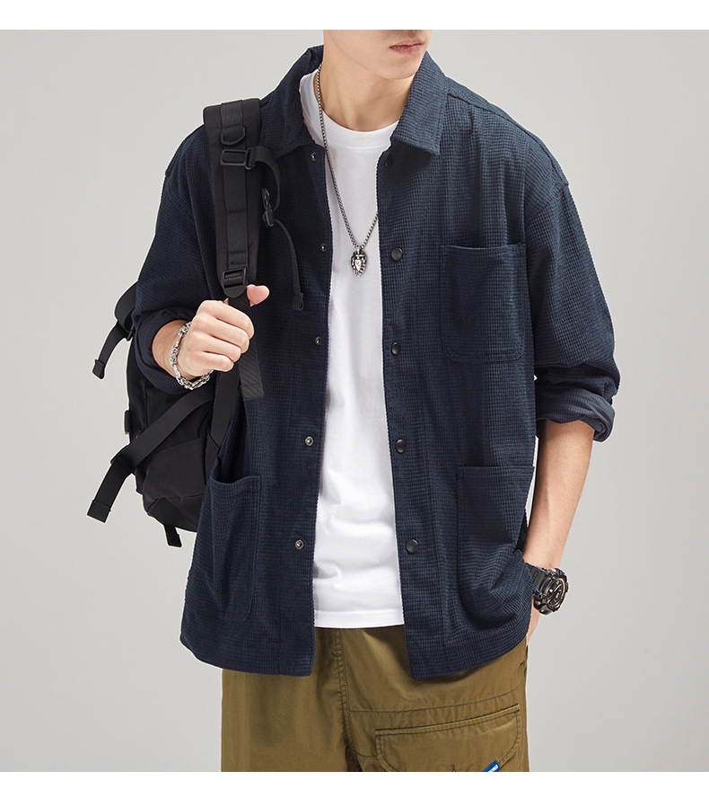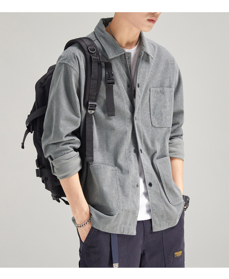 남자 셔츠 가을 빈티지 세탁 공예 Houndstooth 고급 질감 Anmuyan 코트 셔츠 Z164스토어 가기