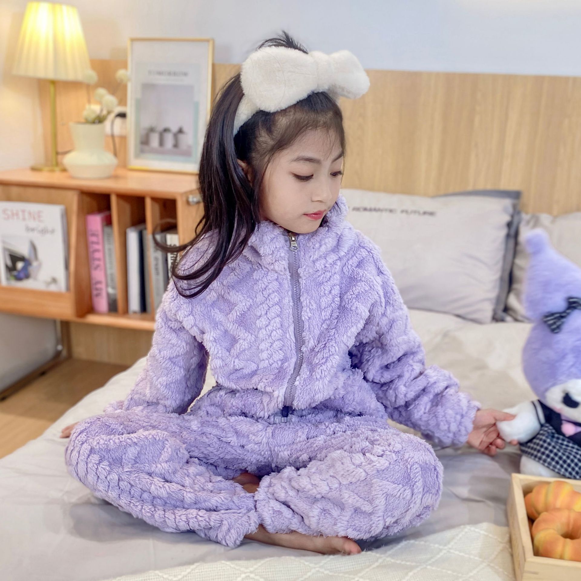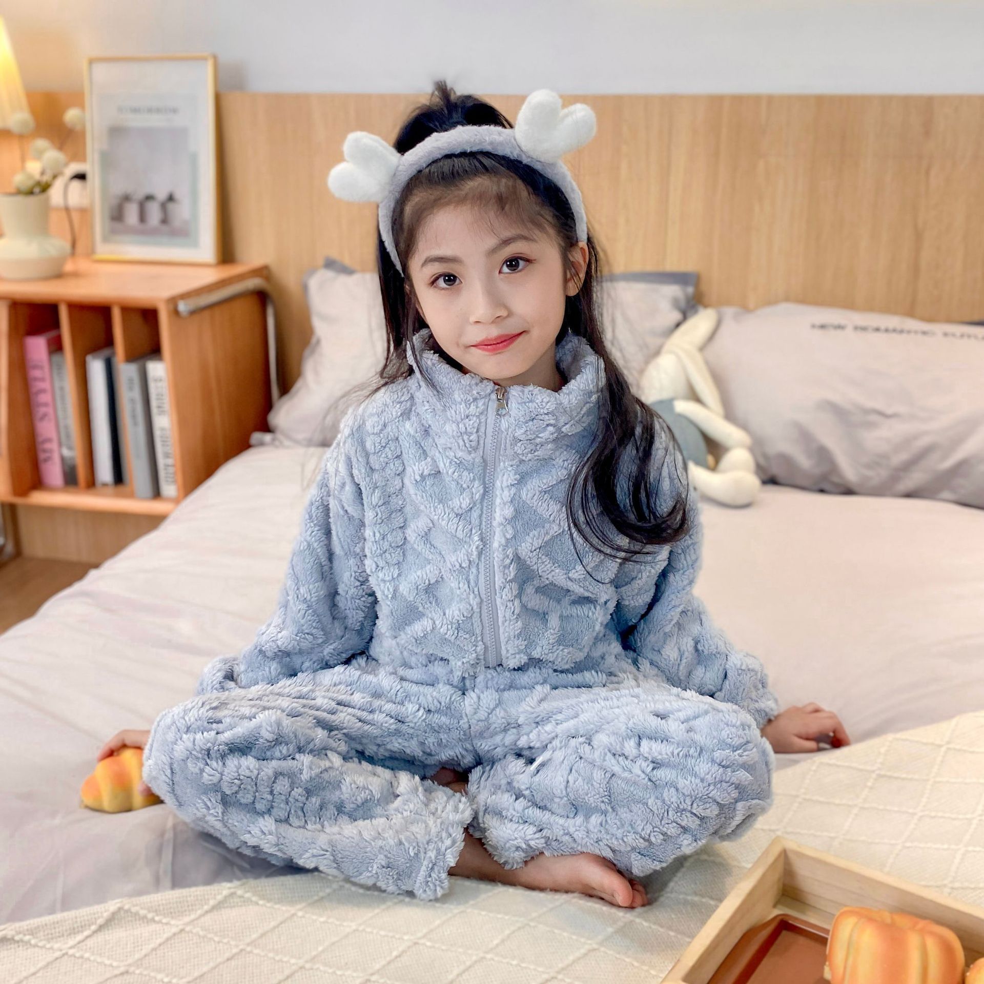 가을과 겨울 어린이 두꺼운 팔레이롱 잠옷 여아 아기 한국식 가정복 여아 산호 양털