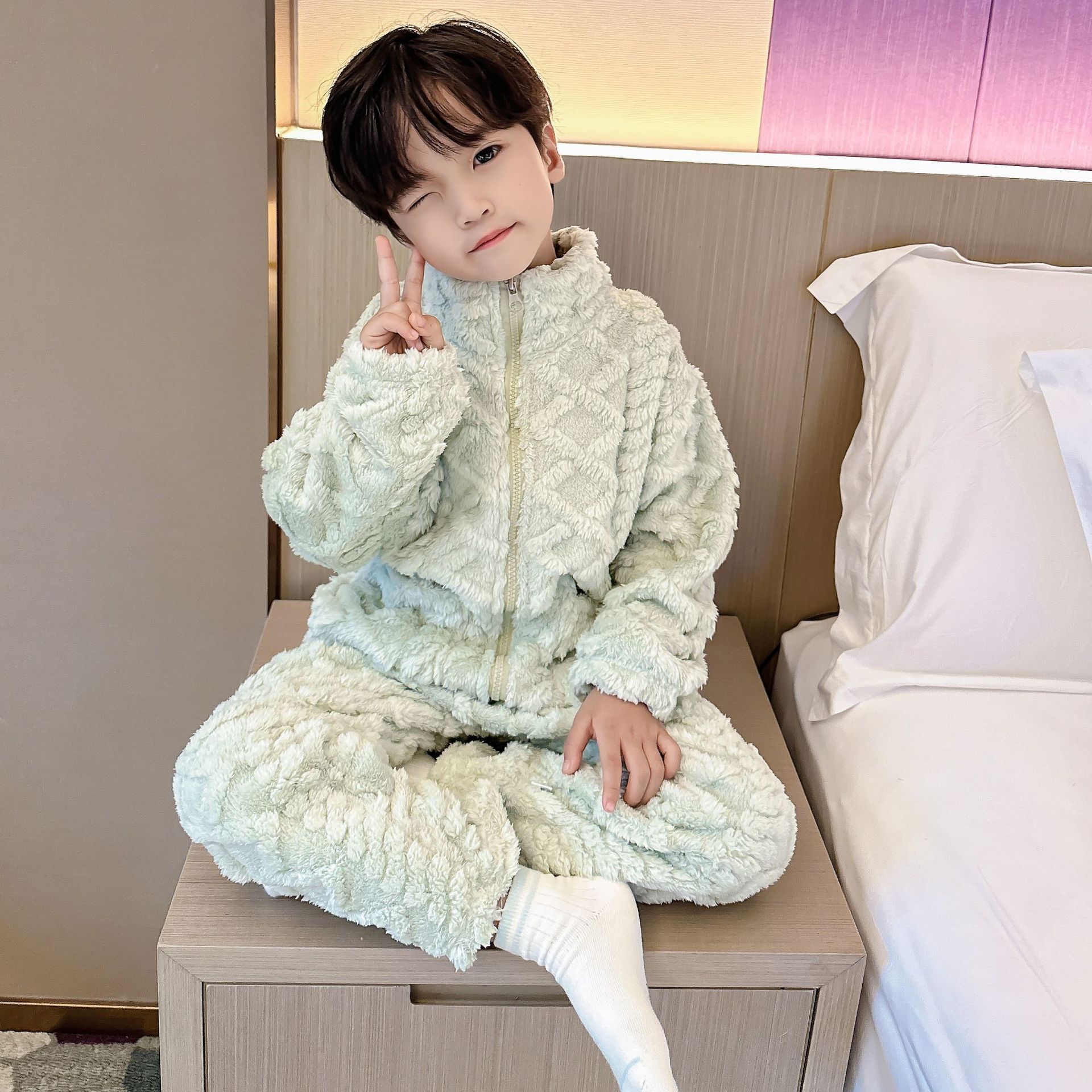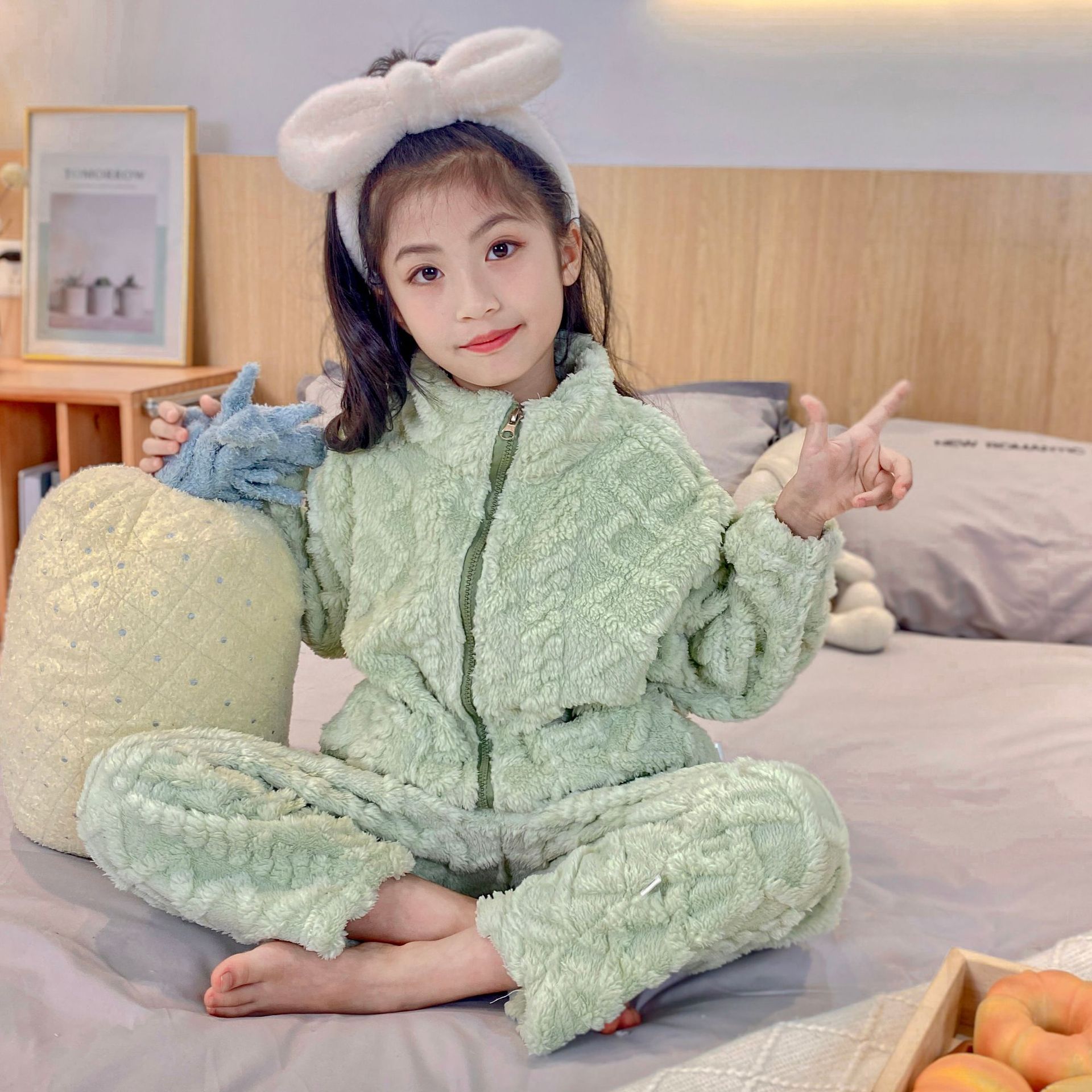 가을과 겨울 어린이 두꺼운 팔레이롱 잠옷 여아 아기 한국식 가정복 여아 산호 양털스토어 가기