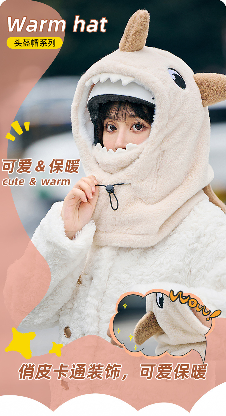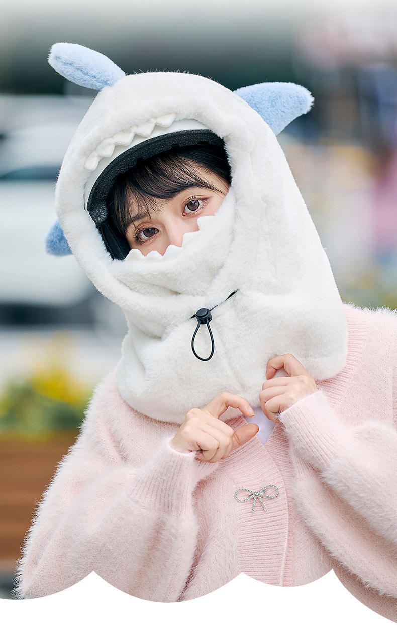 야외 스노우 보드 장비 타기 배터리 자동차 방한 귀여운 헬멧 모자 만화 마스크 방풍 목 보호 헤드 기어 여성