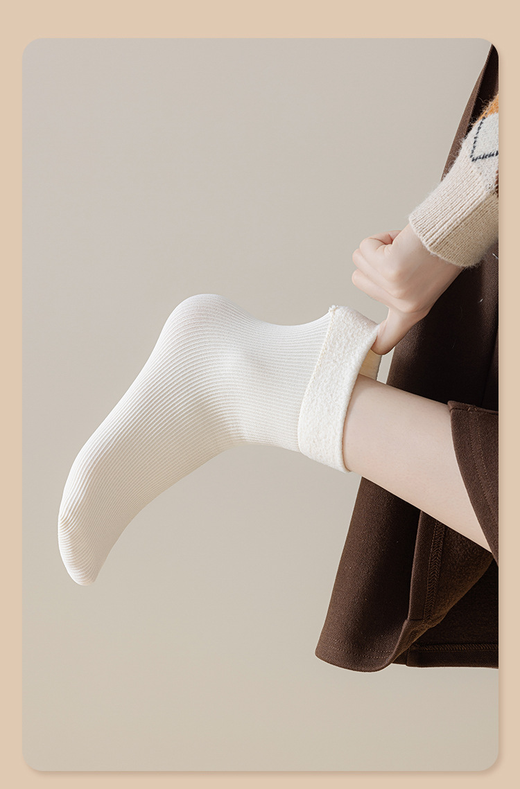 봄과 가을면 Zhuji 양말 여성 일본 흑백 수평 갈비뼈 뼈없는 미드 튜브 양말 면 여성용 양말 Zhuji 양말 도매