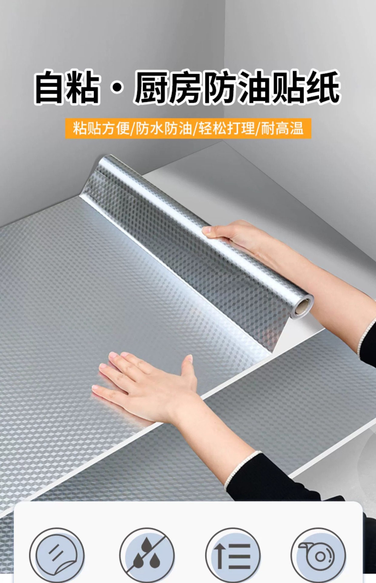 주방 방수 스티커 내화성 및 고온 방지 캐비닛 방수 및 방습 자체 접착 벽지 은박지 알루미늄 호일 종이 추악한 유물스토어 가기