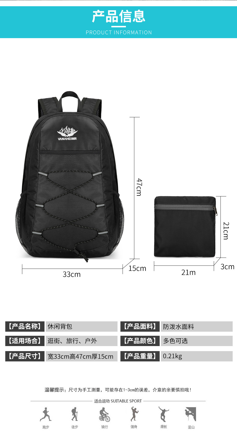 휴대용 크로스 보더 백팩 야외 다기능 자전거 배낭 캐주얼 대용량 하이킹 접이식 가방스토어 가기