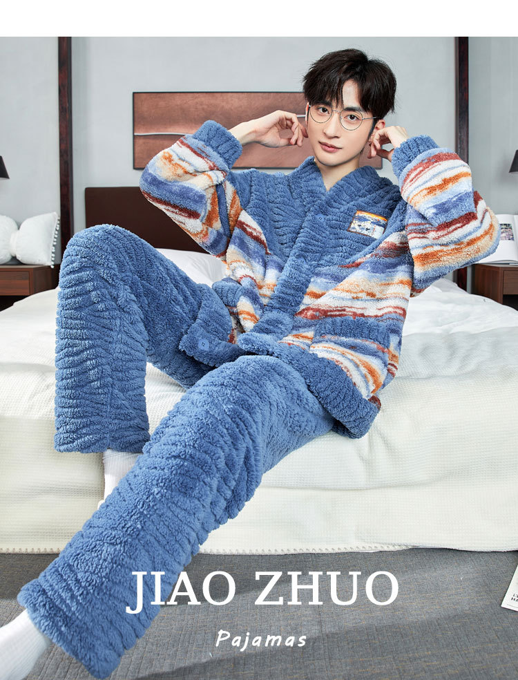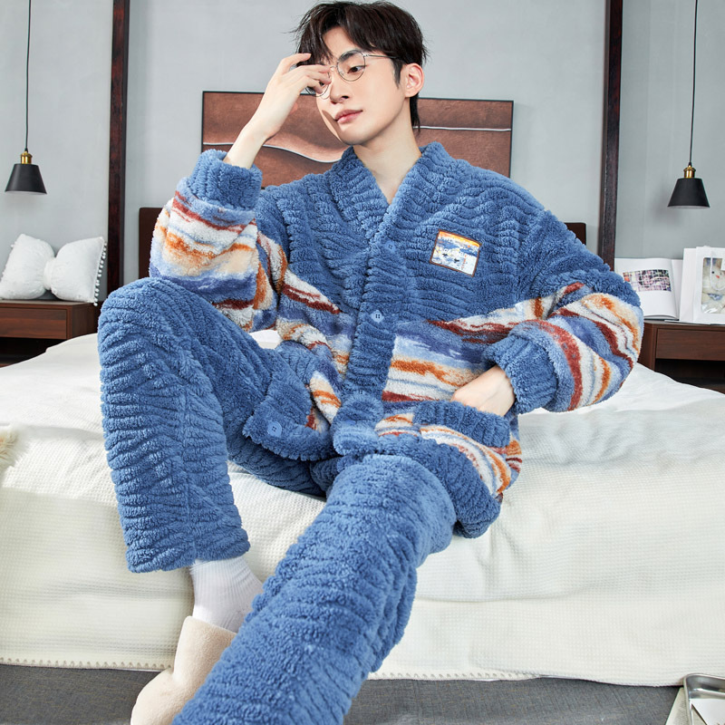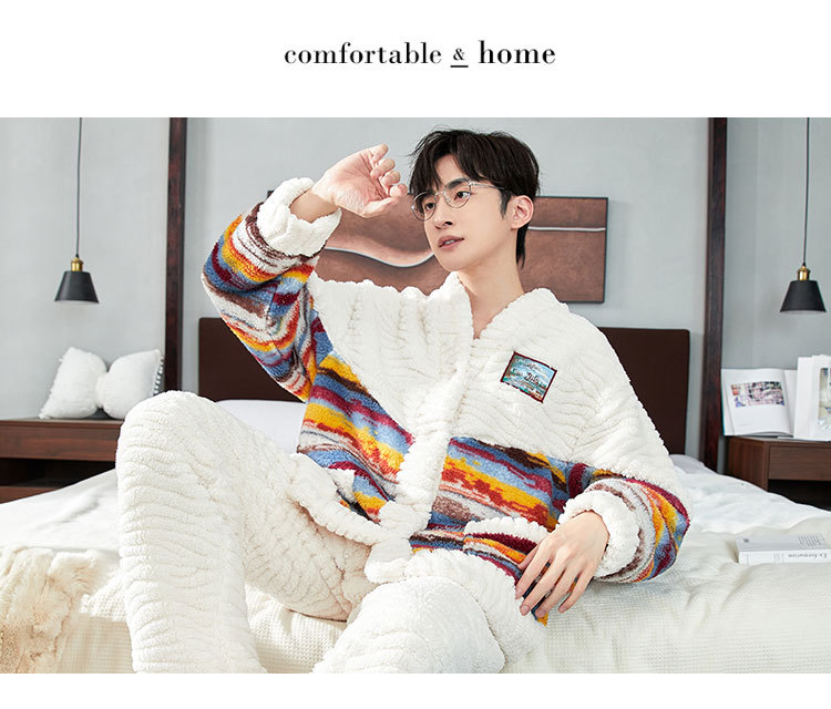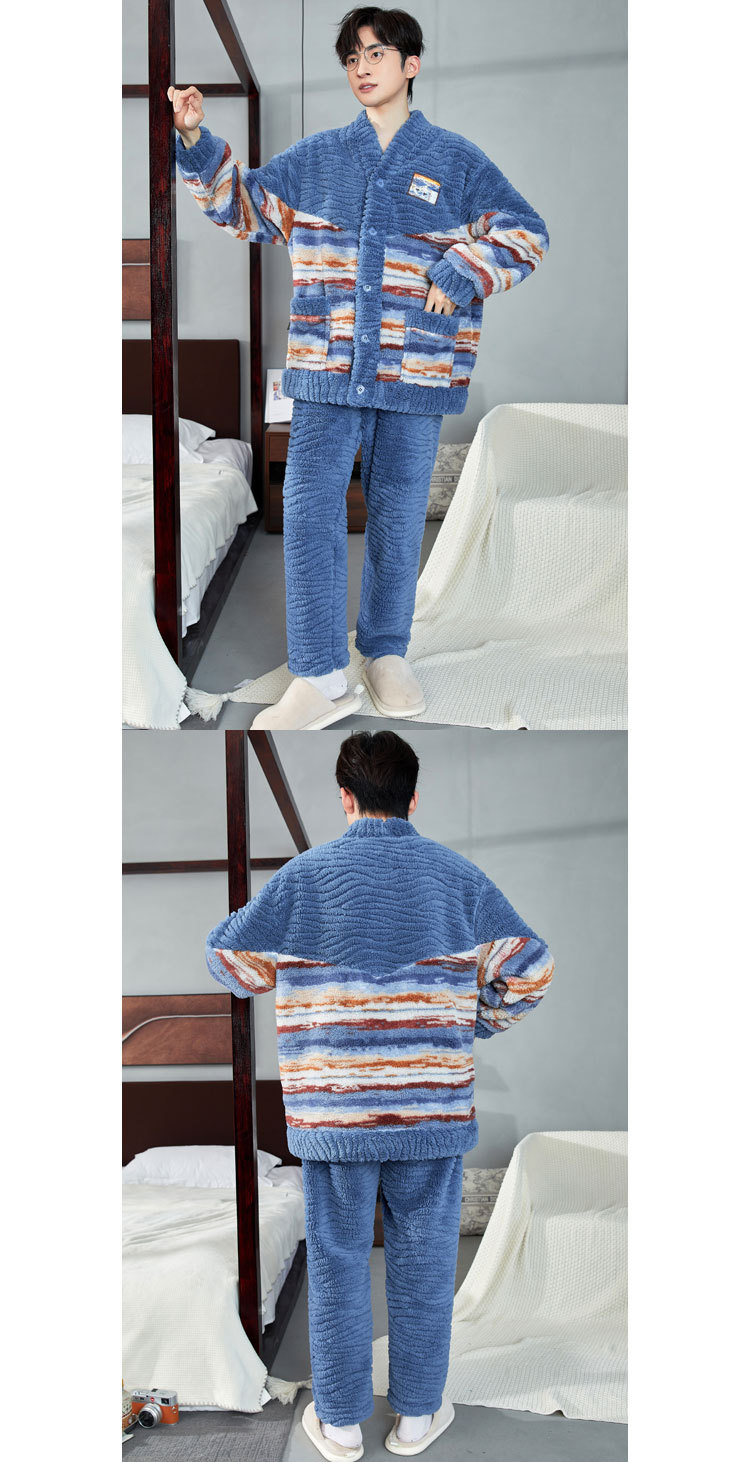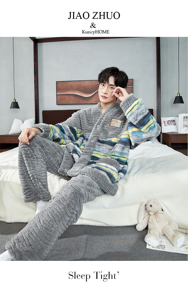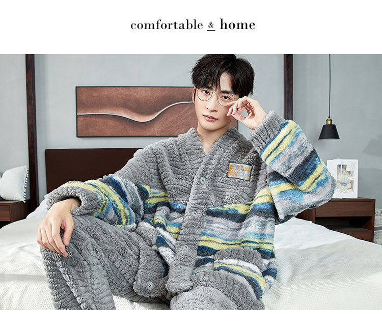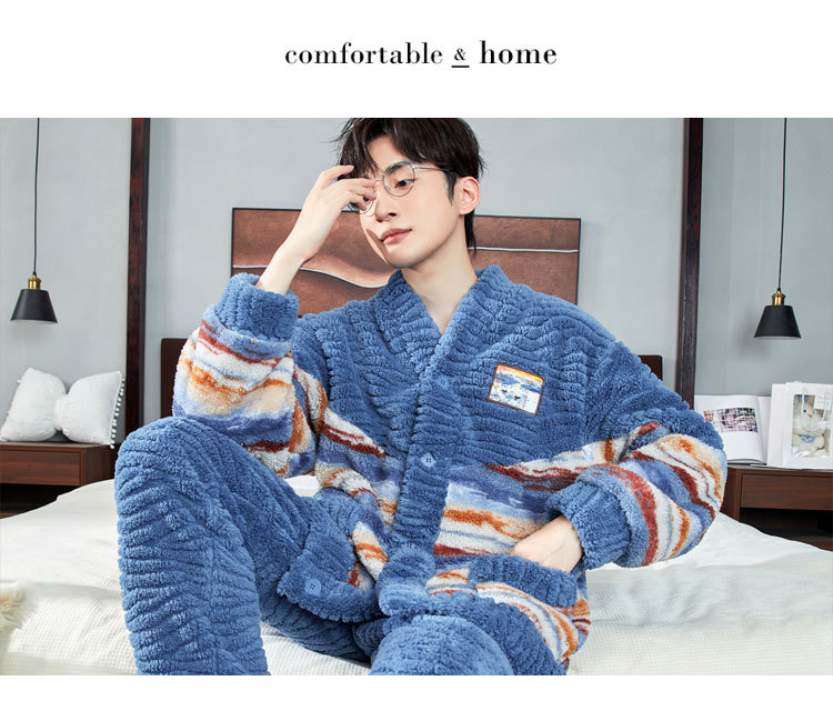 새로운 산호 양털 남자의 잠옷 가을과 겨울 두꺼운 플러스 사이즈 느슨한 패션 플란넬 겨울 가정 옷 세트스토어 가기