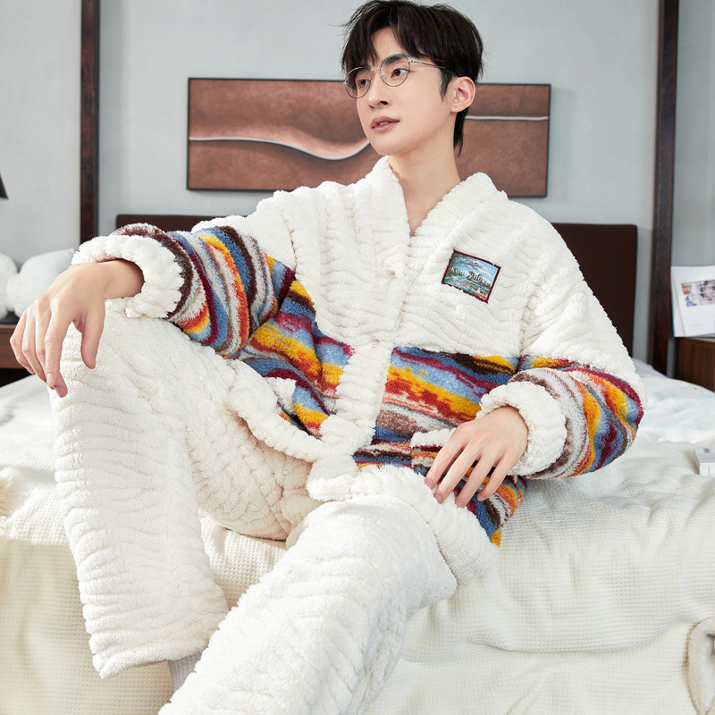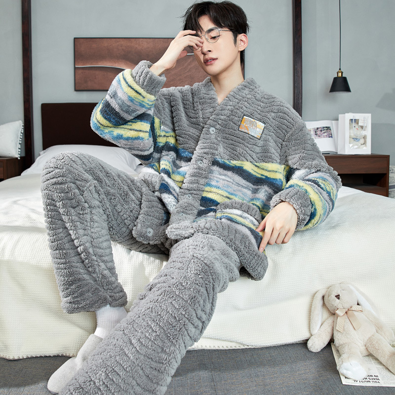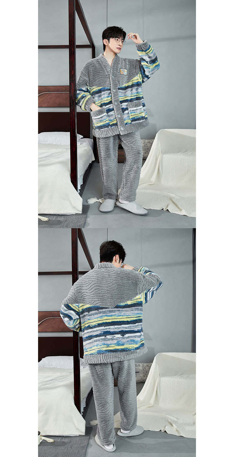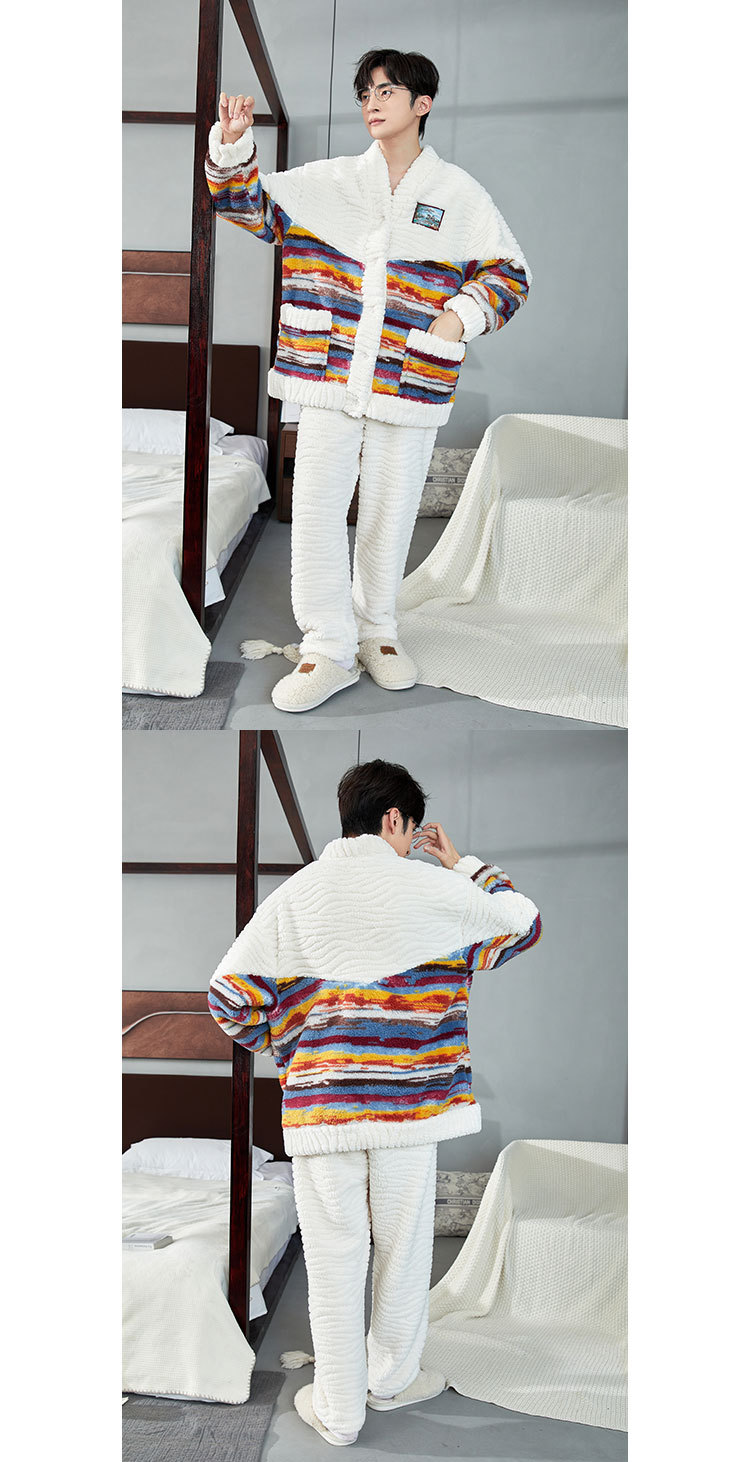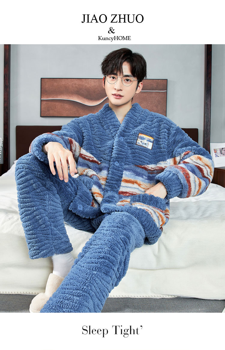 새로운 산호 양털 남자의 잠옷 가을과 겨울 두꺼운 플러스 사이즈 느슨한 패션 플란넬 겨울 가정 옷 세트스토어 가기