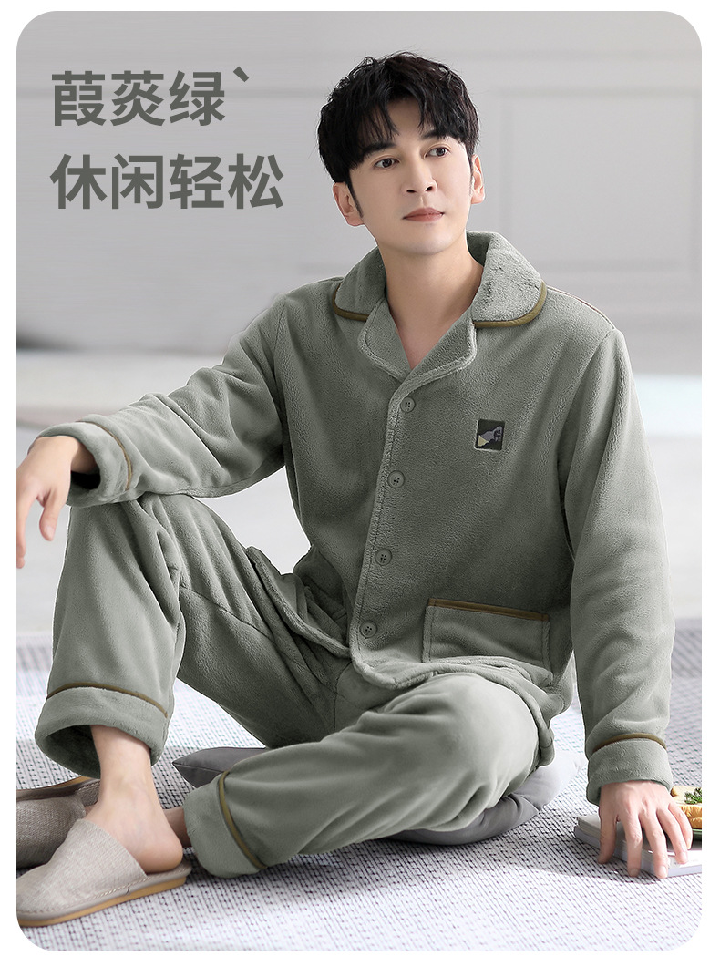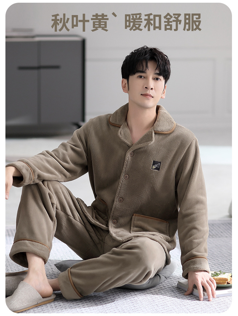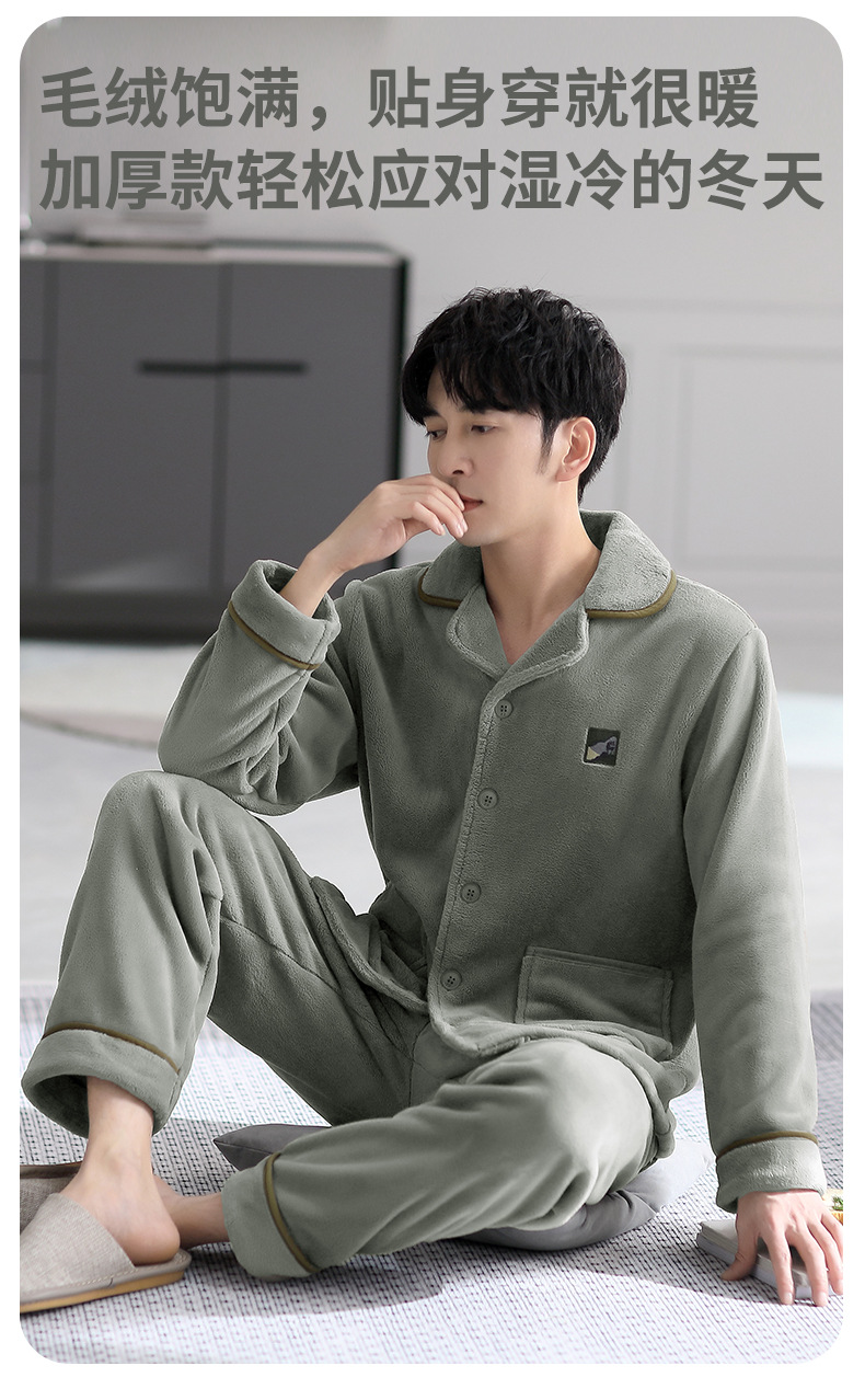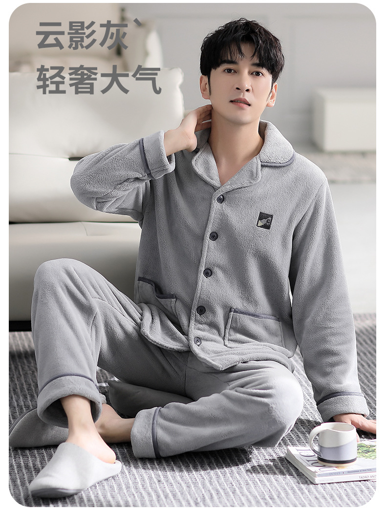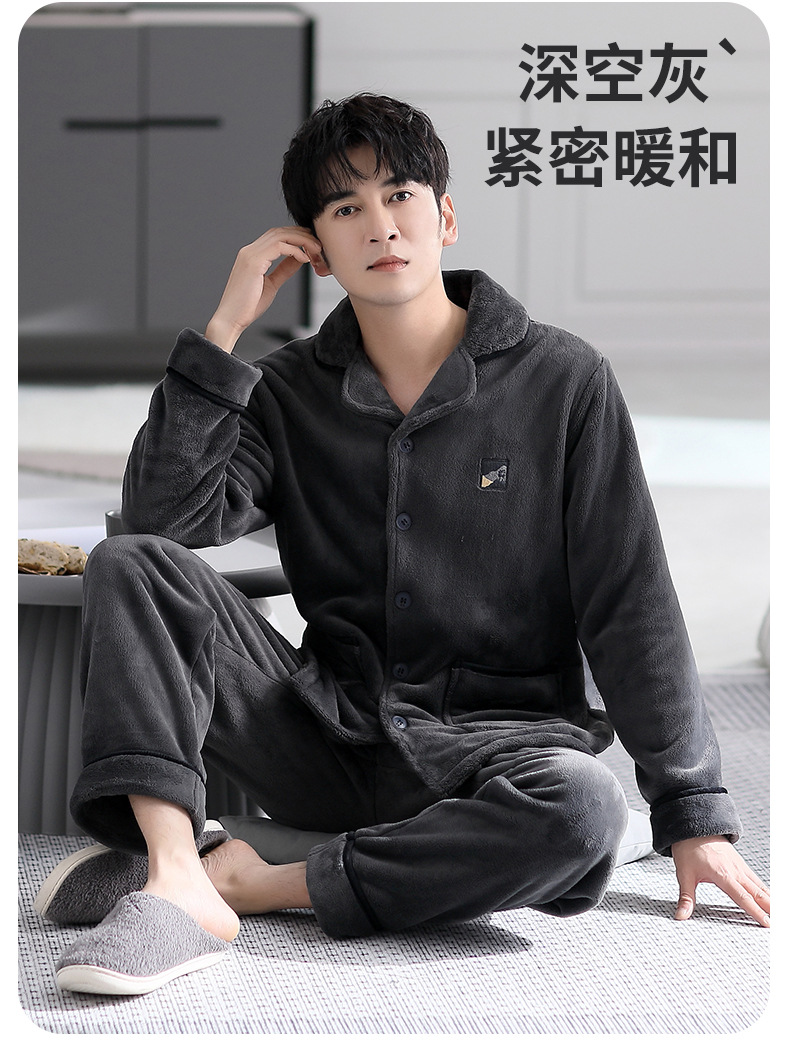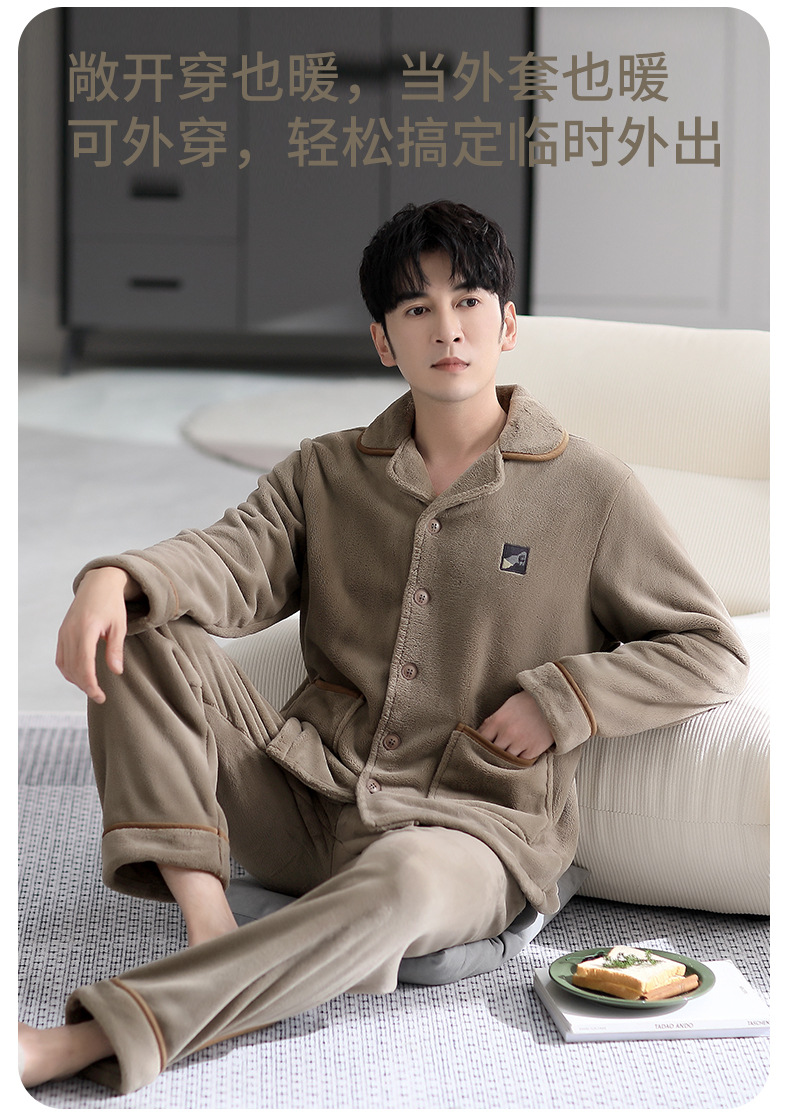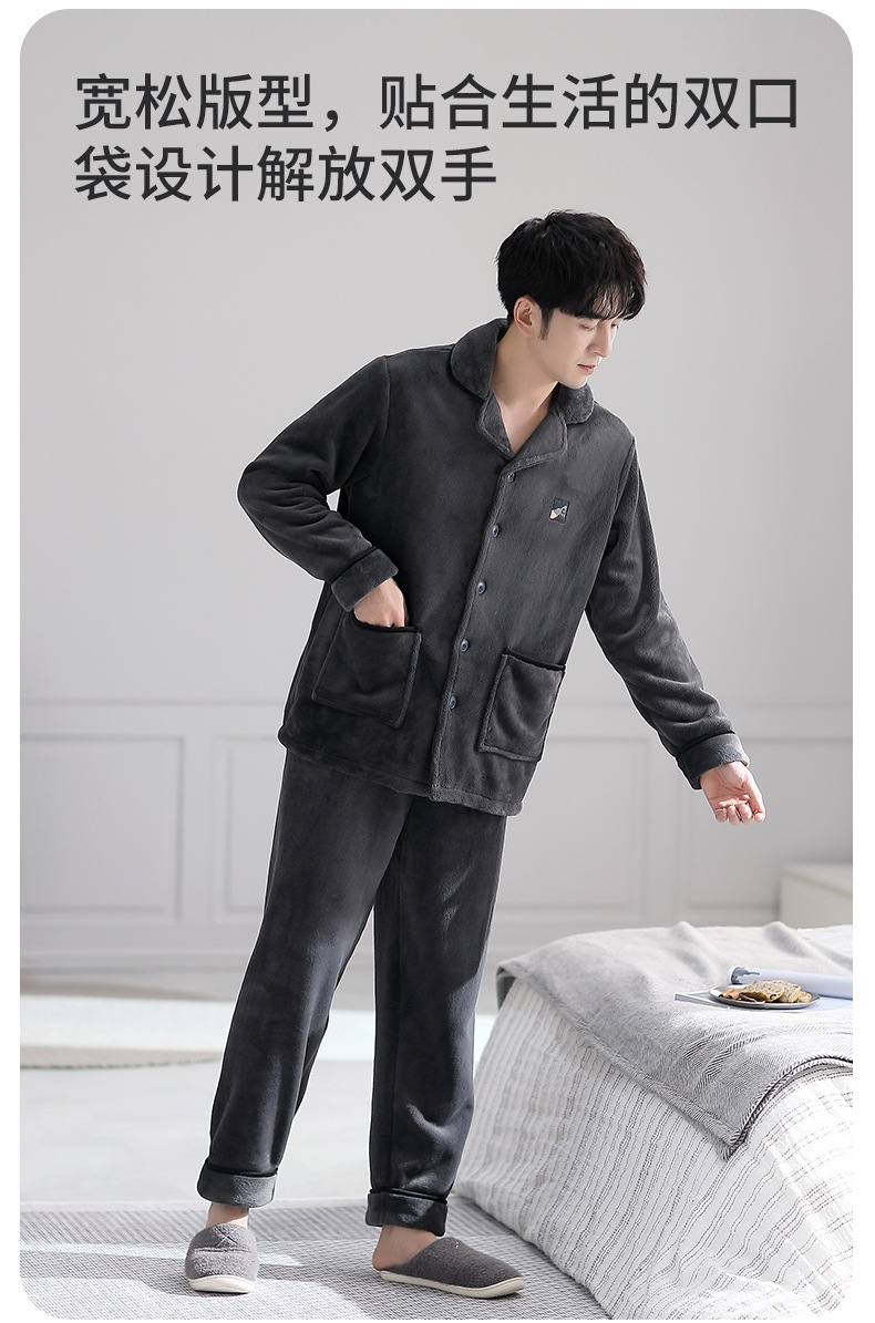 남자의 잠옷 가을과 겨울 두꺼운 산호 양털 십대 긴 소매 따뜻한 옷깃 카디건 스포츠 가정 옷 세트