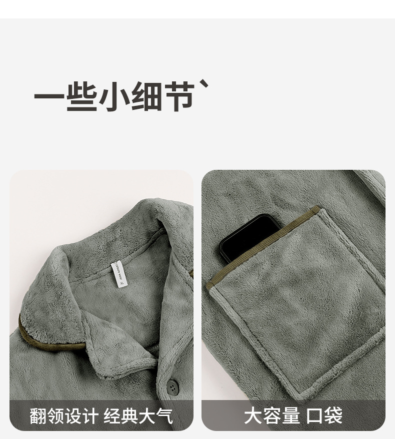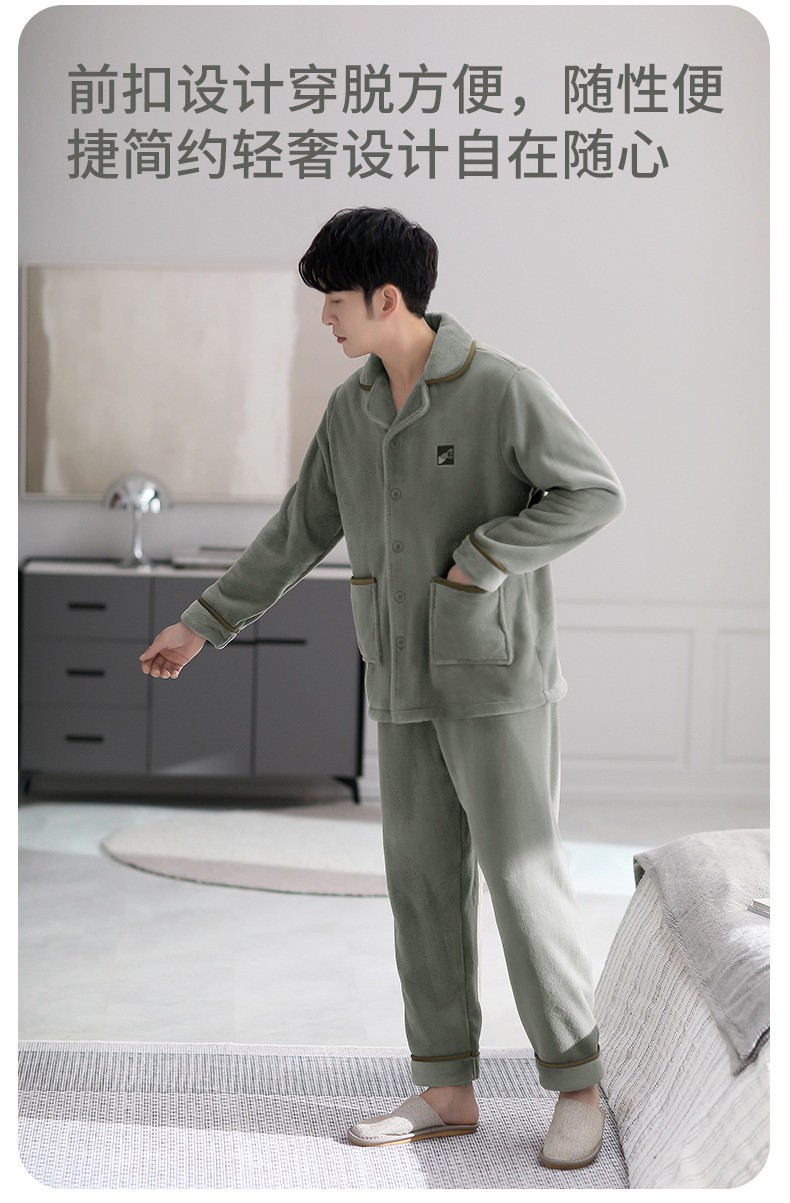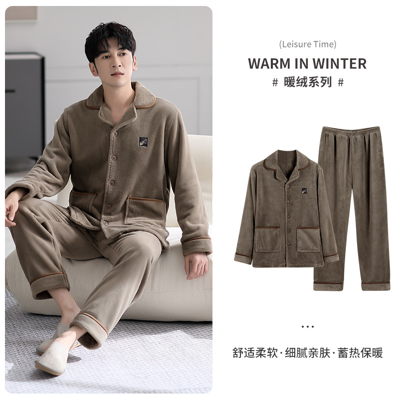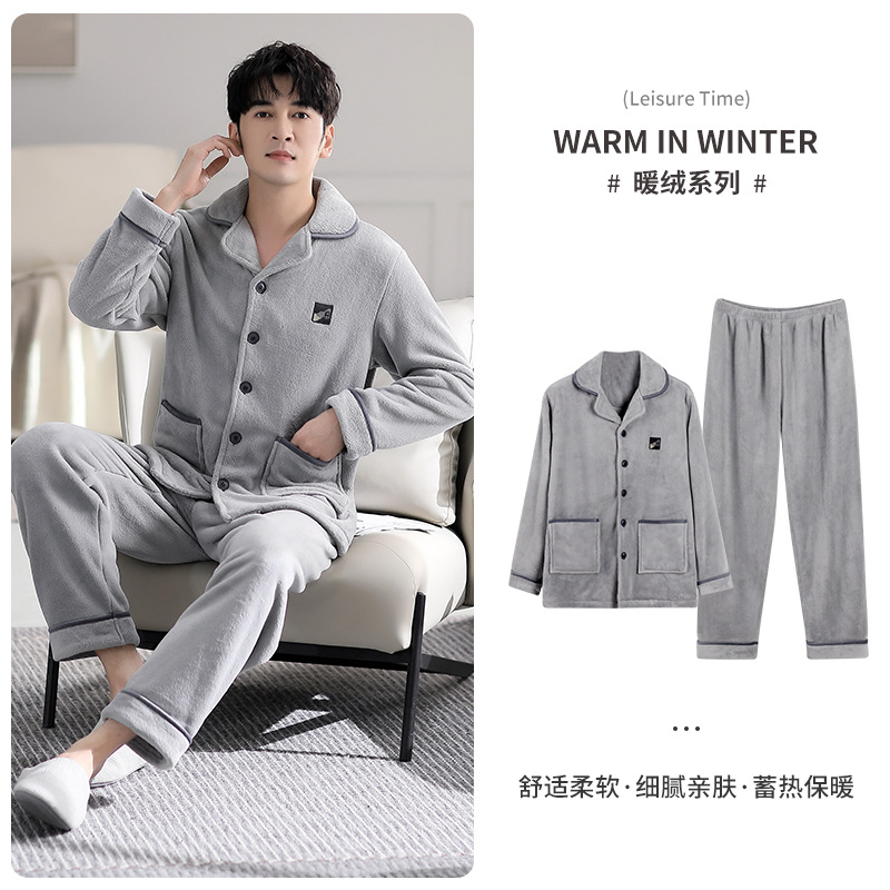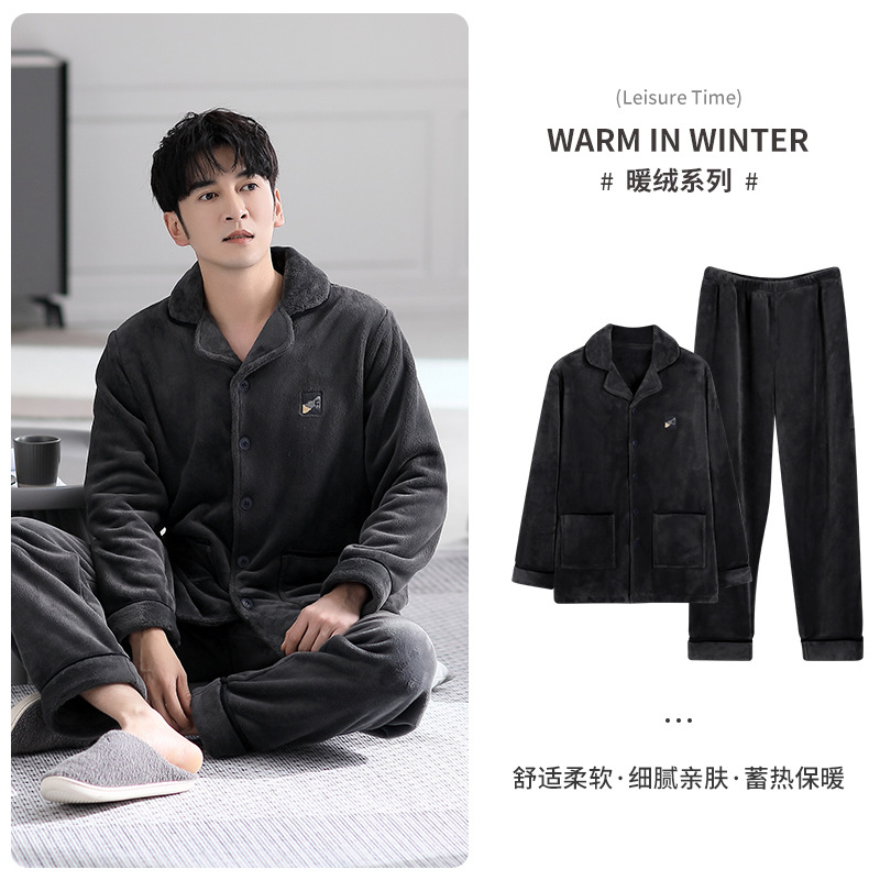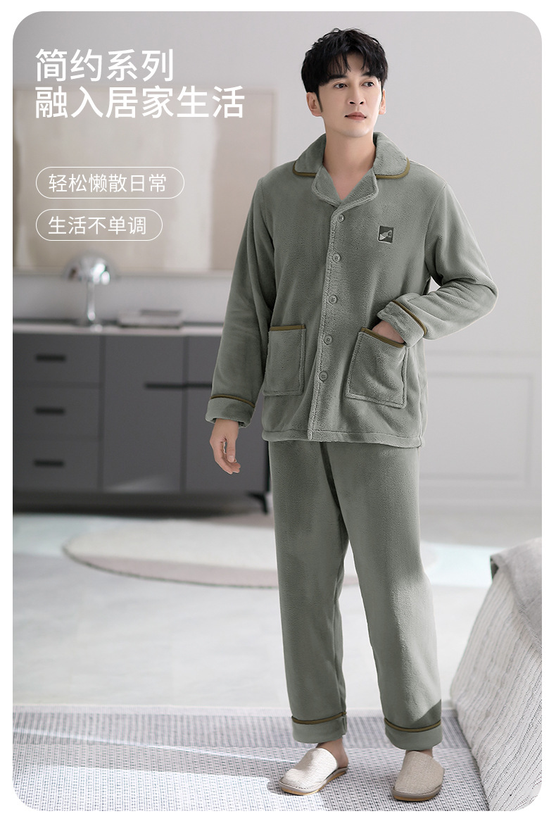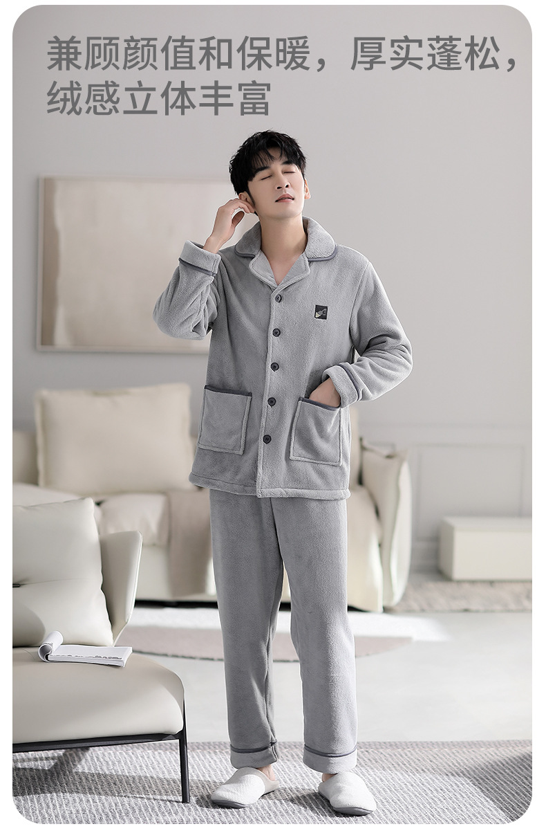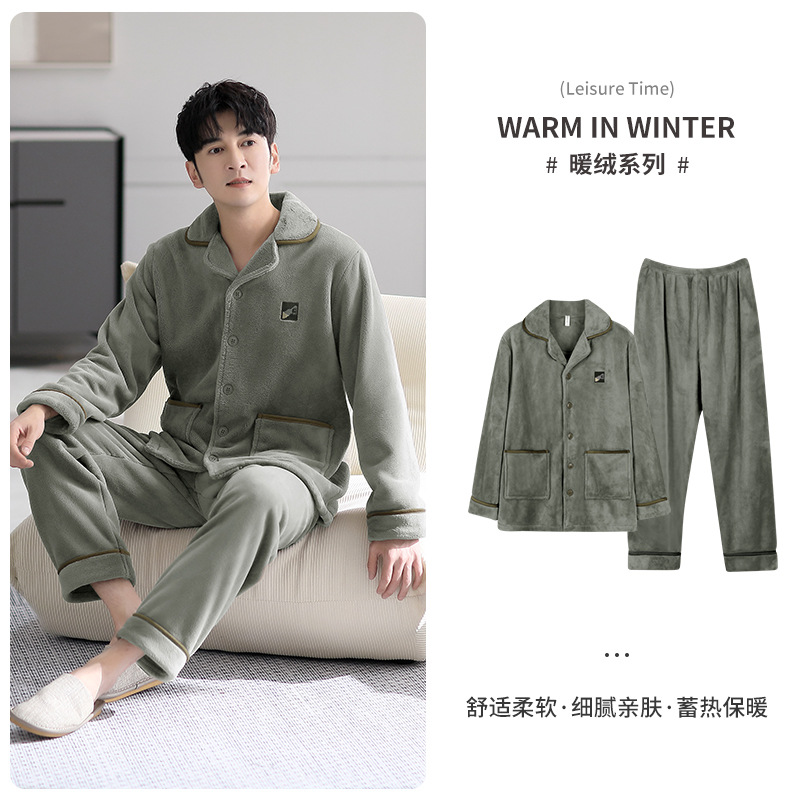 남자의 잠옷 가을과 겨울 두꺼운 산호 양털 십대 긴 소매 따뜻한 옷깃 카디건 스포츠 가정 옷 세트