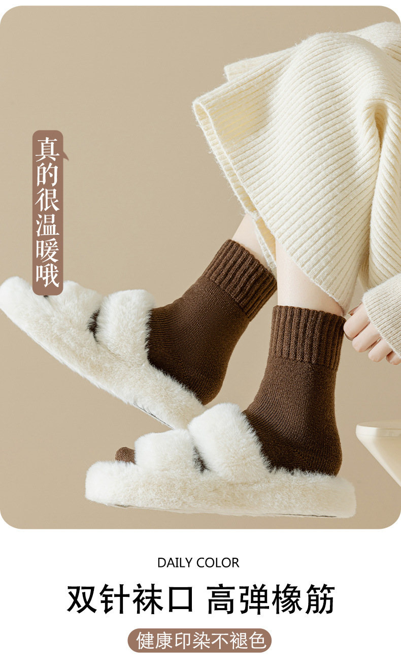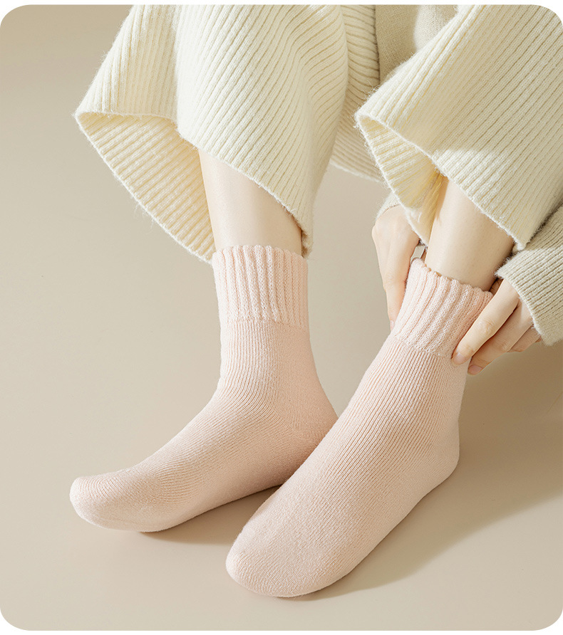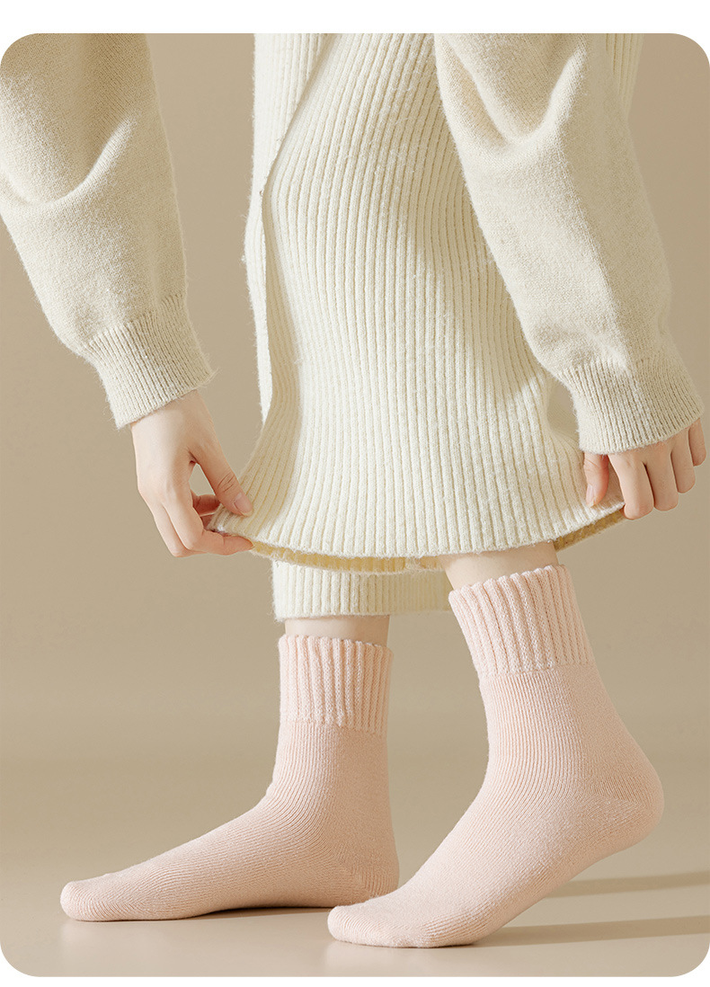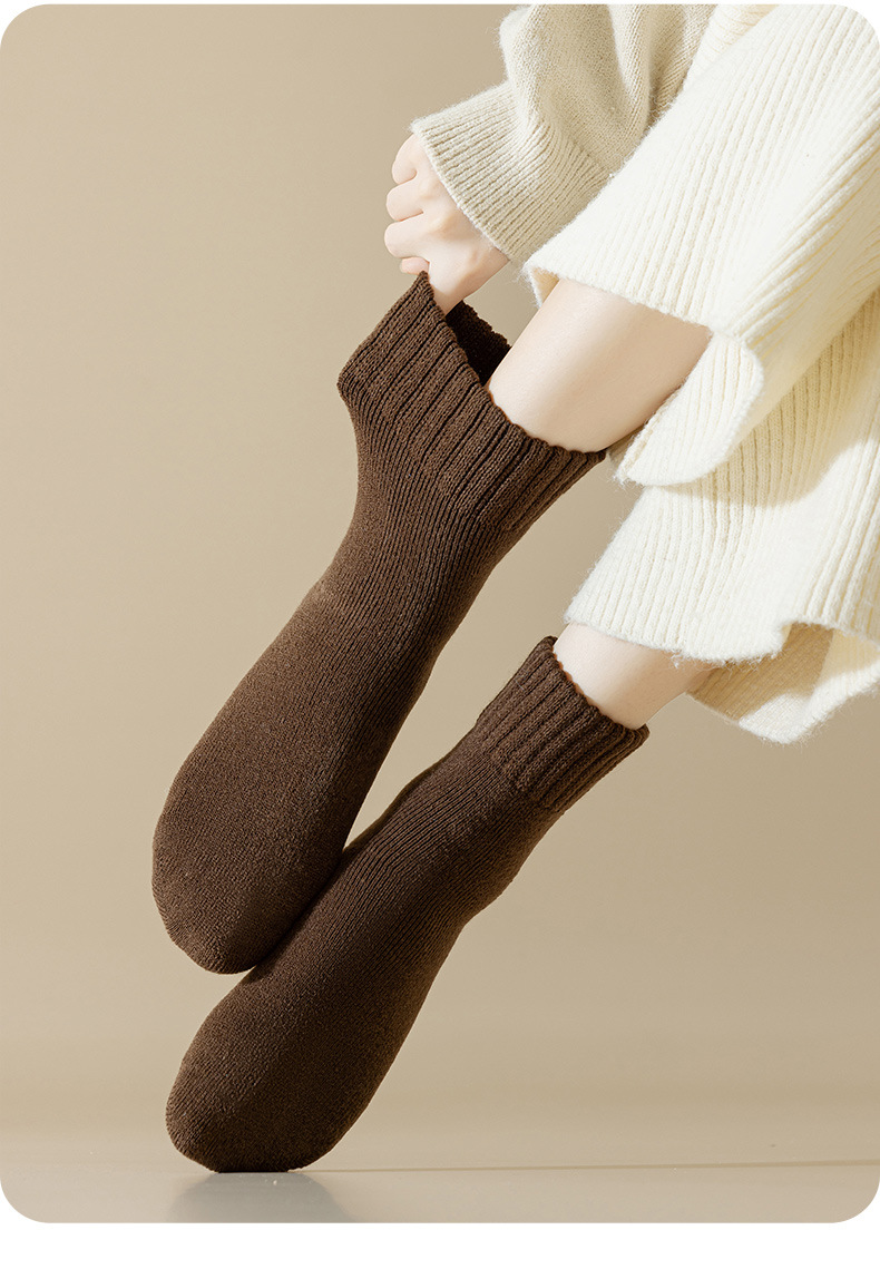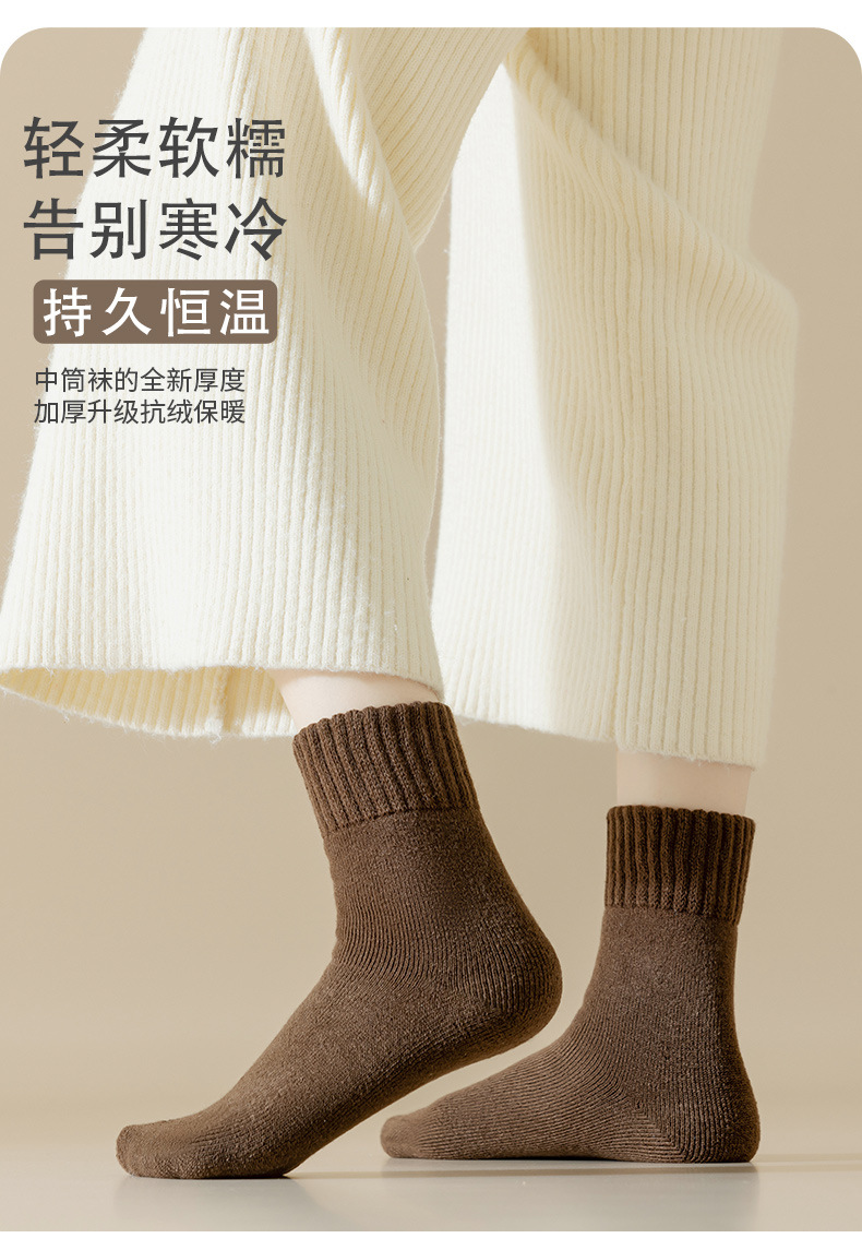 겨울 기모 두꺼운 양말 여자의 따뜻한 중간 길이 양말 솔질 눈 양말 단색 문 양말 바닥 양말 여분의 두꺼운