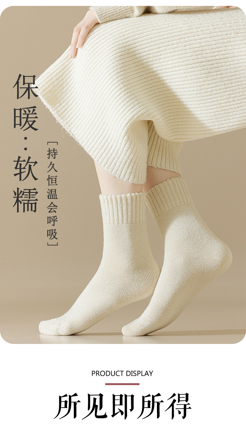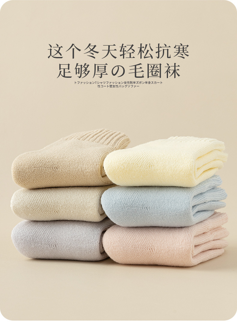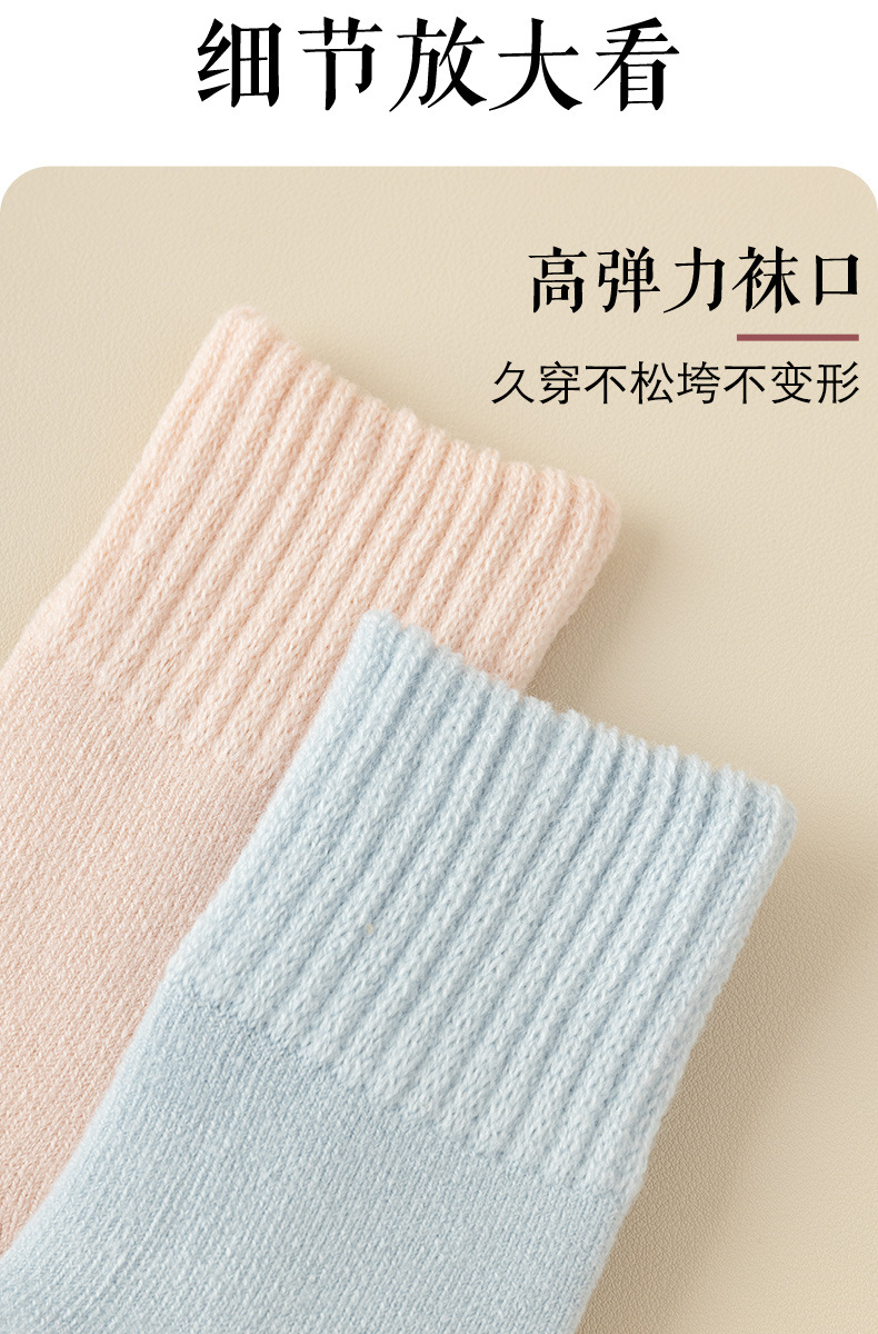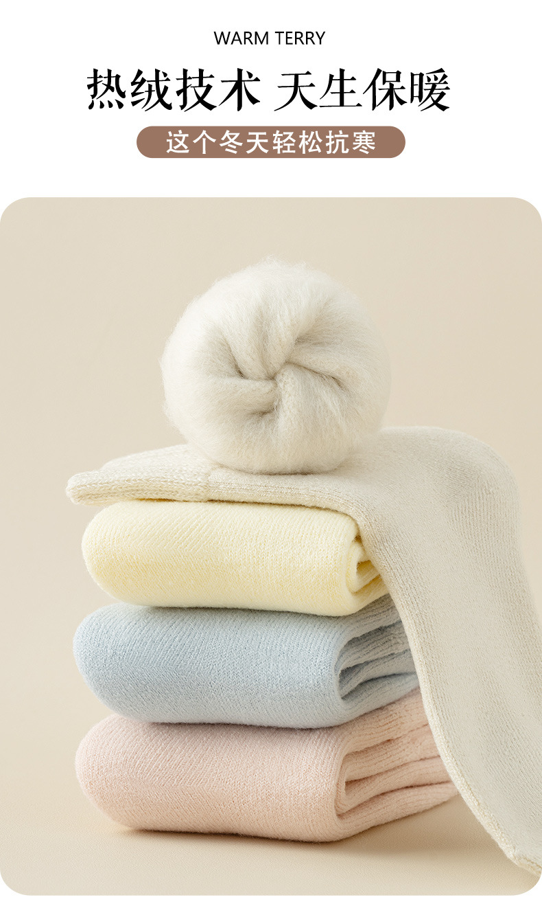 겨울 기모 두꺼운 양말 여자의 따뜻한 중간 길이 양말 솔질 눈 양말 단색 문 양말 바닥 양말 여분의 두꺼운