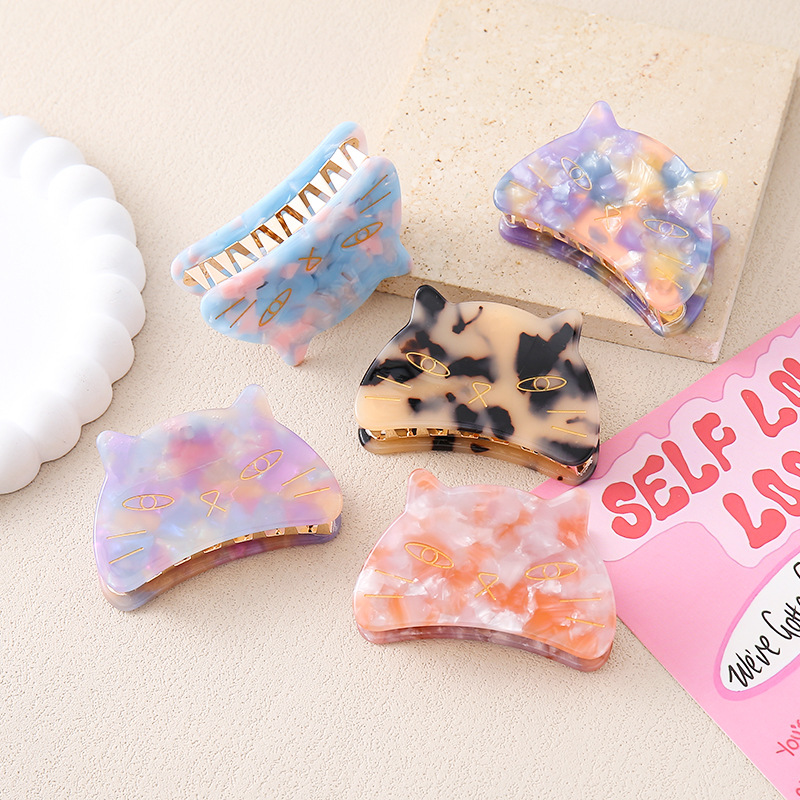 탕리 한국식 아세트산 고양이 잡아 클립 금속 치아 헤어 클립 여성용 장식 디스크 헤어 그랩 클립 소녀의 달콤한 헤어 클립