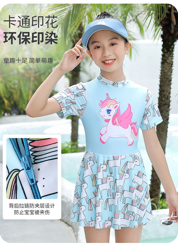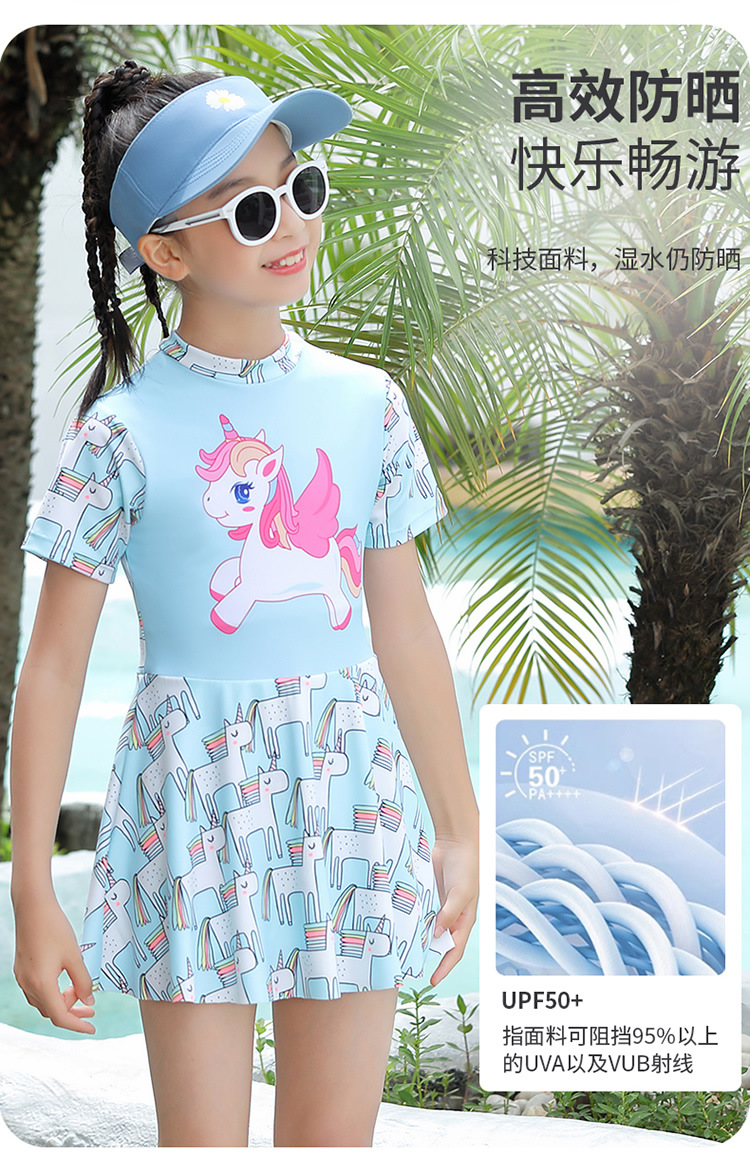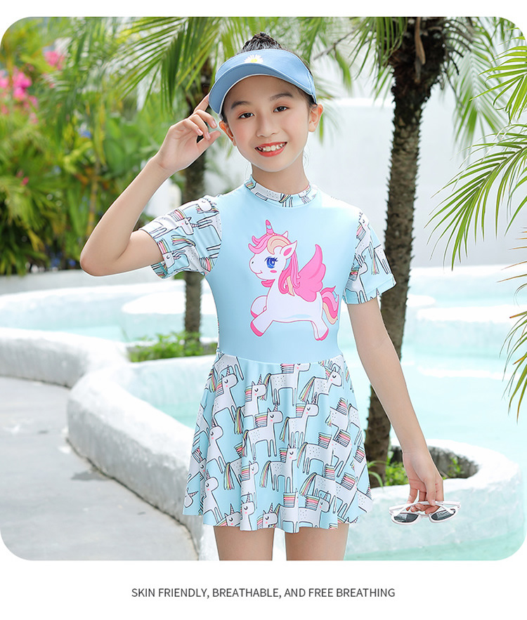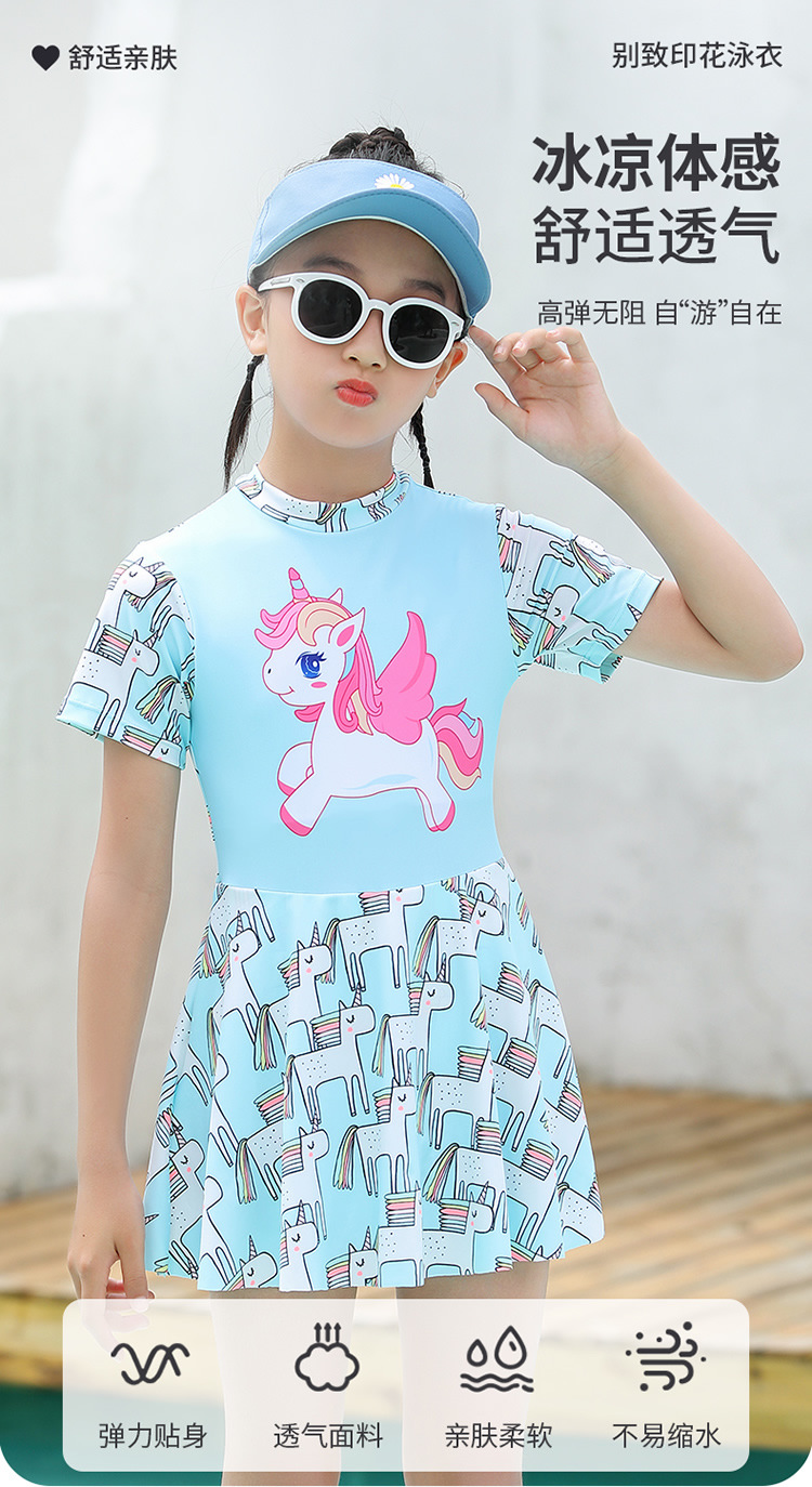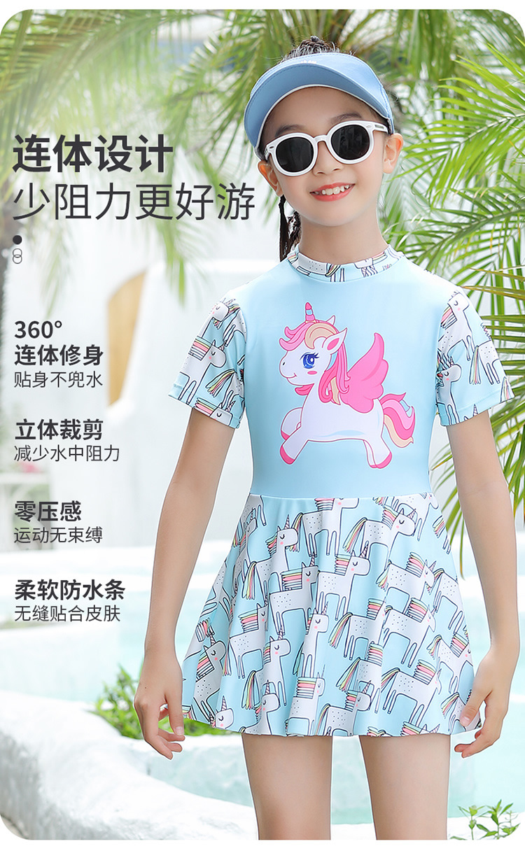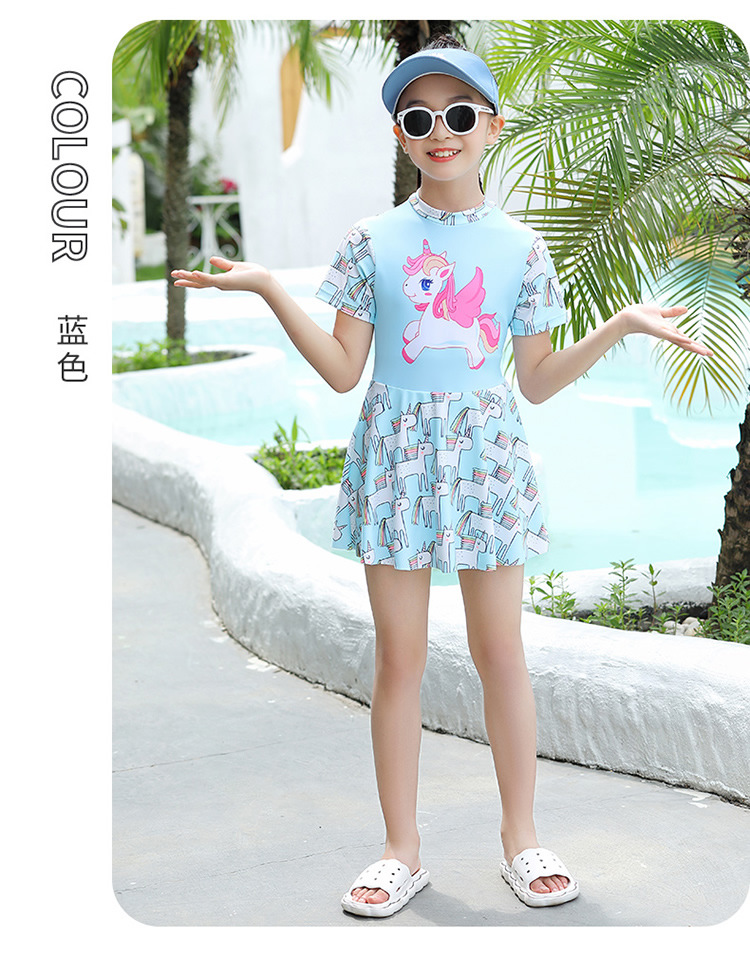 어린이 수영복 소녀 원피스 여자 수영복 전문 미디어와 큰 어린이 보수적 인 치마 귀여운 수영복 도매