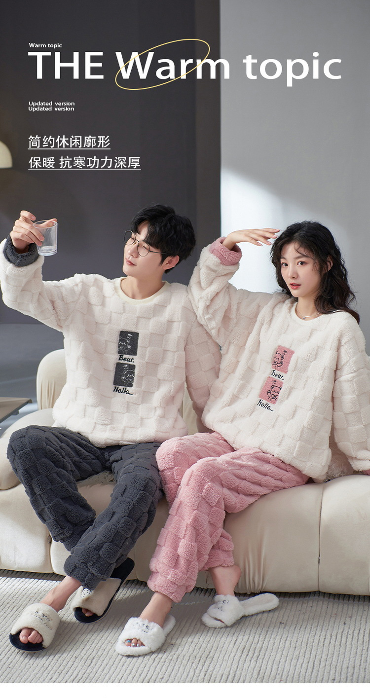 커플 잠옷 산호 양털 가을과 겨울 새로운 남성과 여성의 플란넬 두꺼운 따뜻한 겉옷 가정 옷 세트