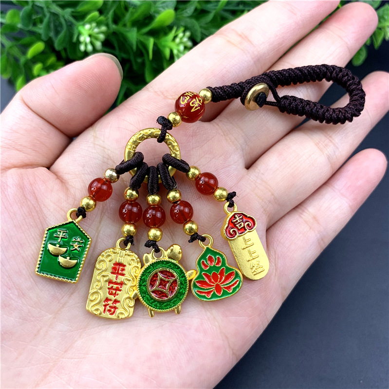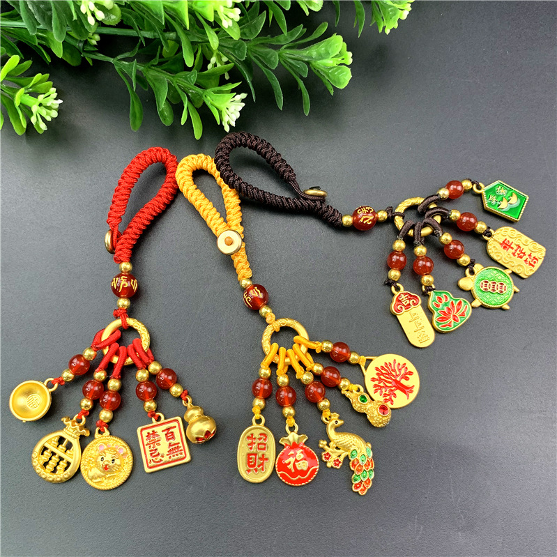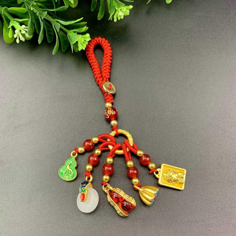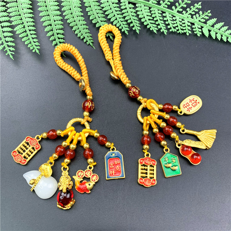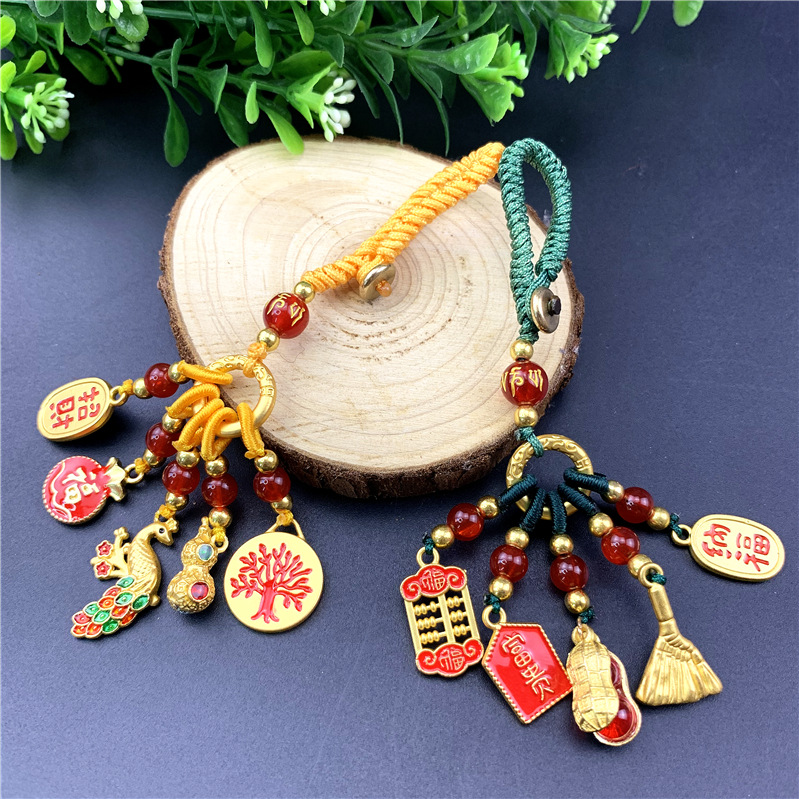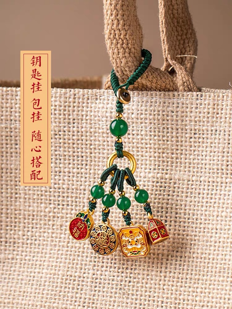 고대 프랑스 금동 커플의 열쇠 고리 펜던트 전국 조수 에나멜 오일 드롭 백 펜던트 수제 땅콩 조롱박 펜던트