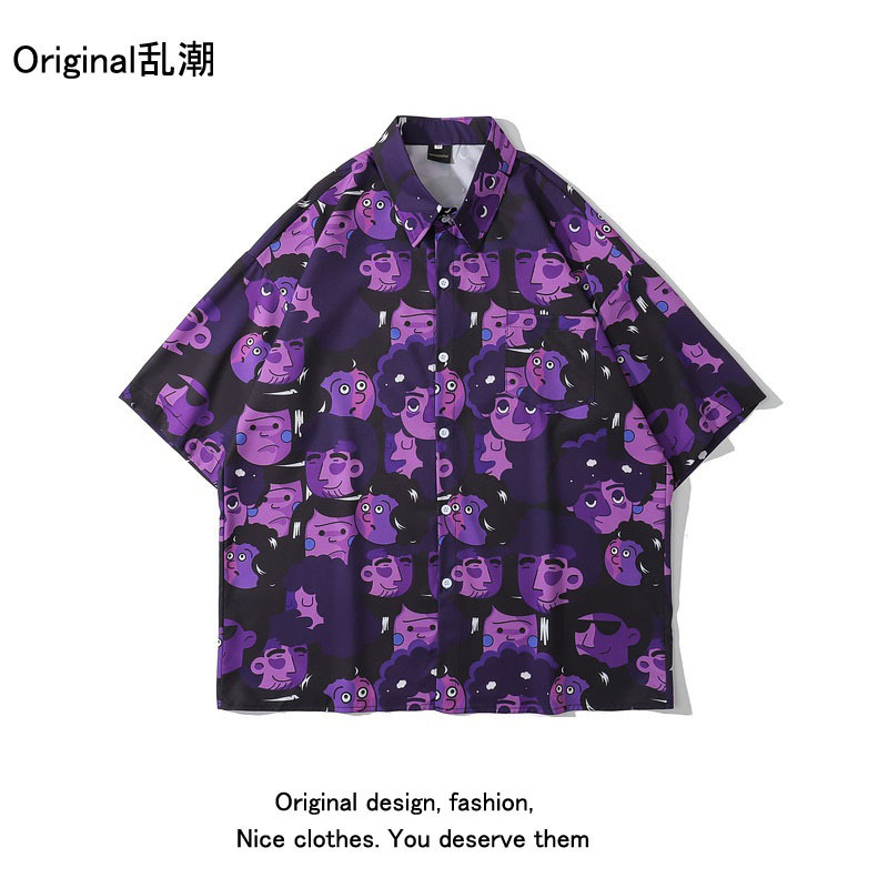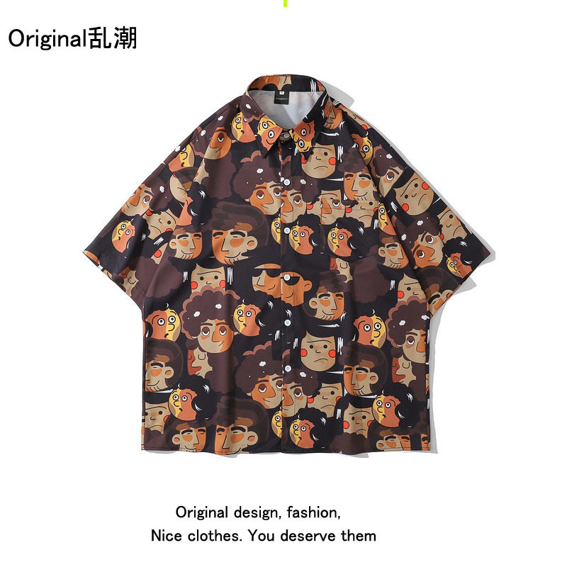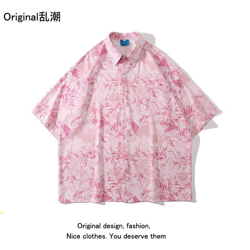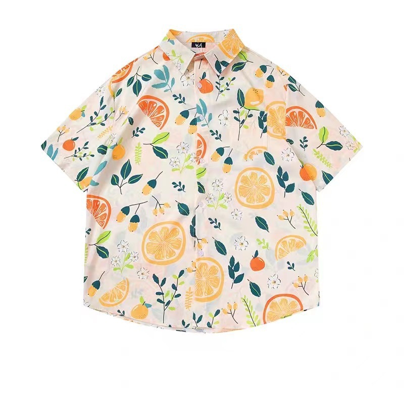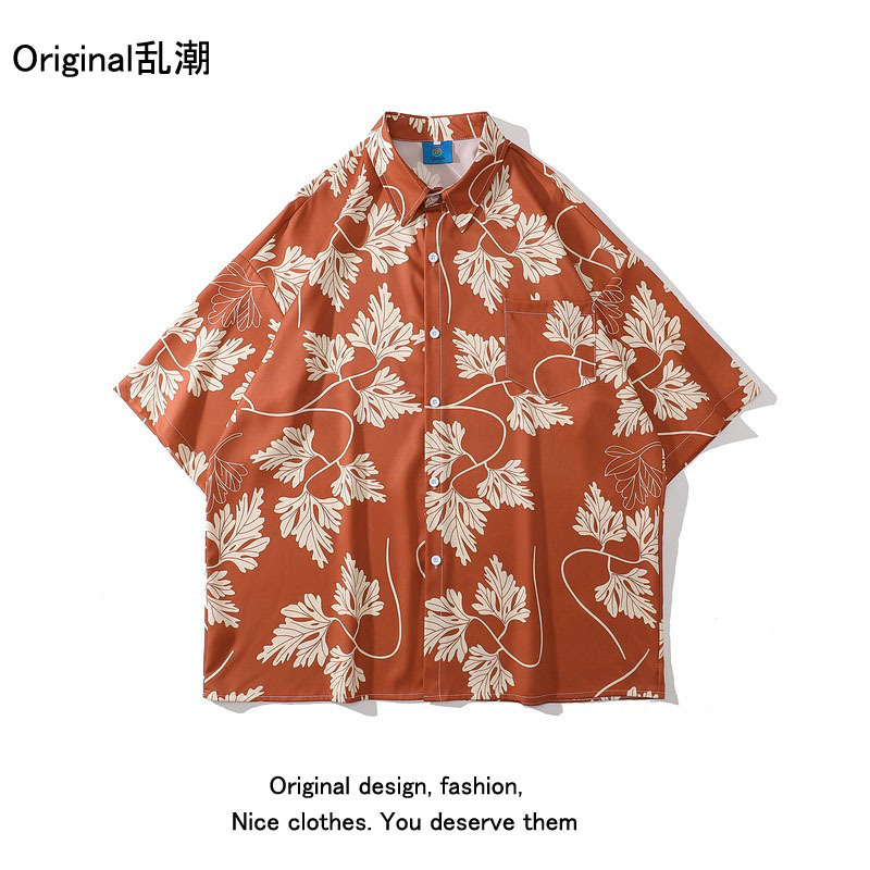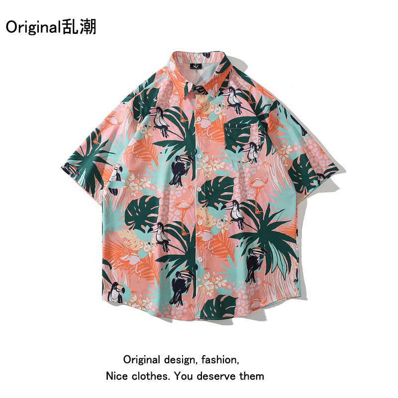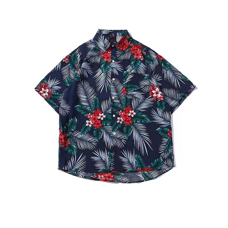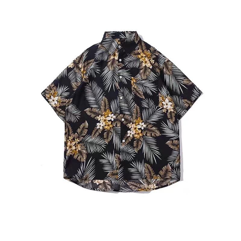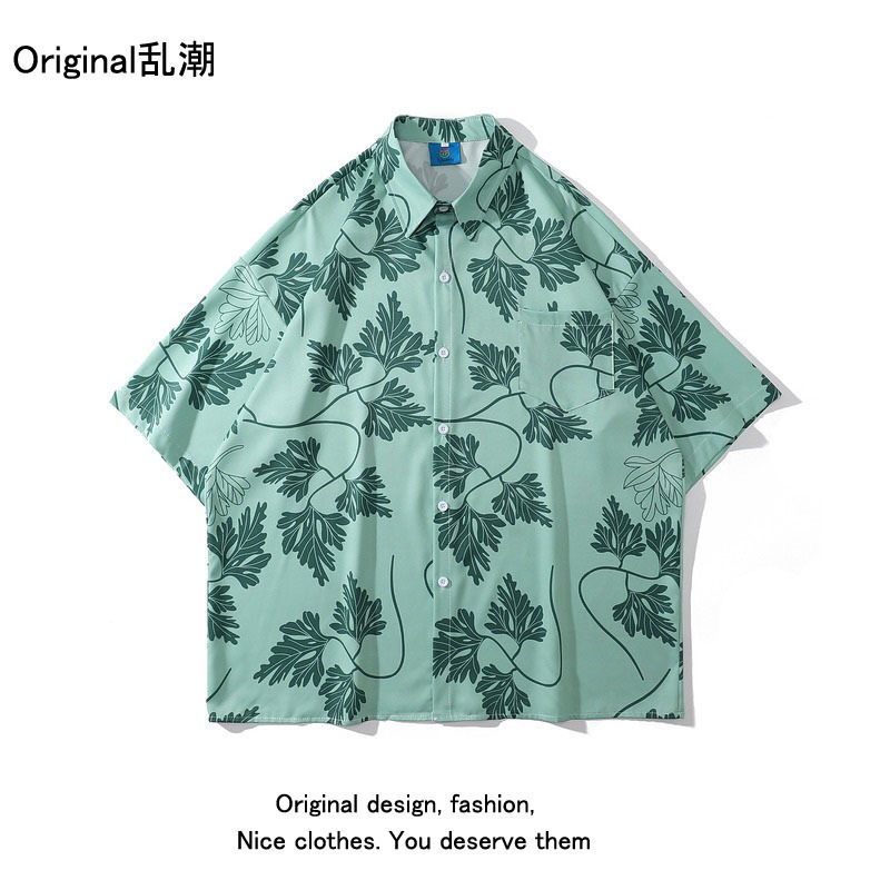 녹색 반팔 셔츠 남자의 여름 얇은 홍콩 스타일 복고풍 레저 하와이 여행 꽃 해변 꽃 셔츠 유행스토어 가기